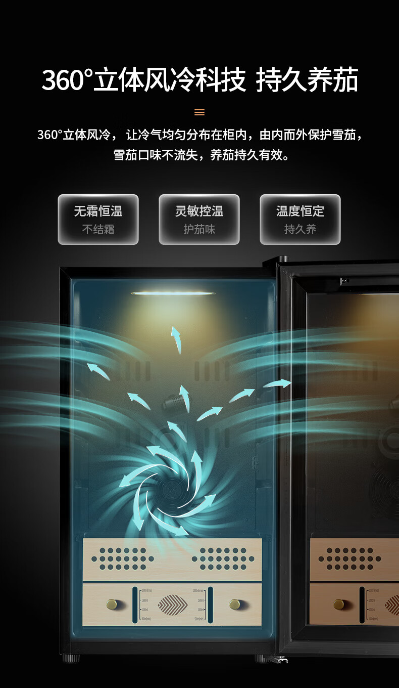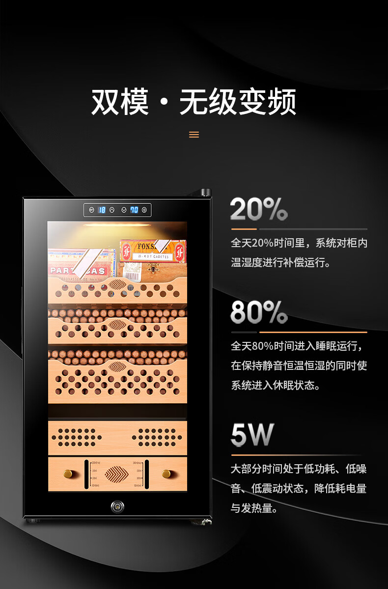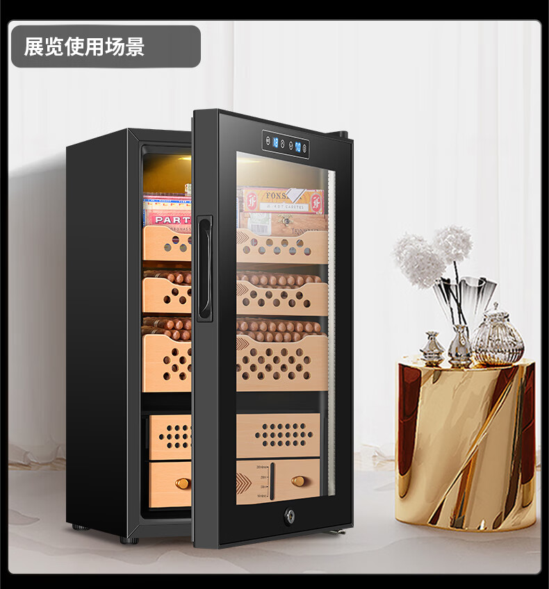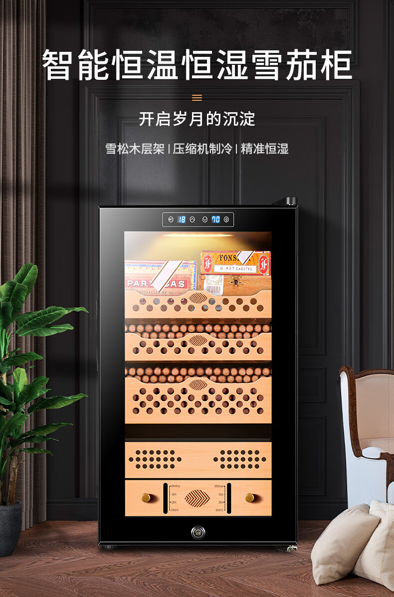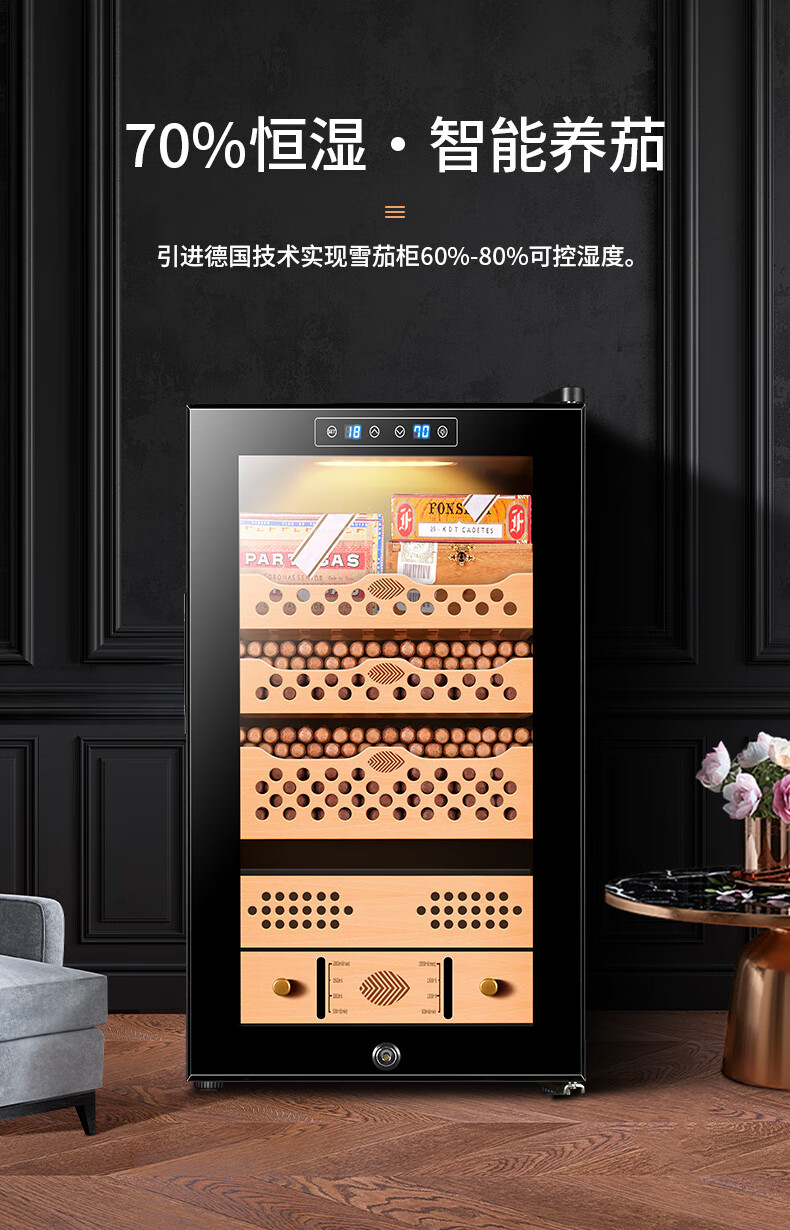 茄龙雪茄柜恒温恒湿智能风冷无霜压缩机柜节能静音西班牙雪松木雪茄柜恒温控湿养茄家用雪茄柜 70C黑色 70L