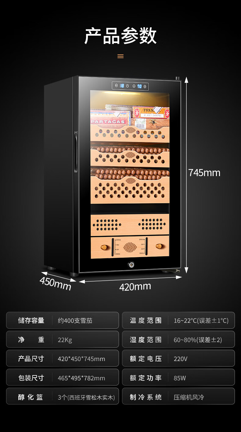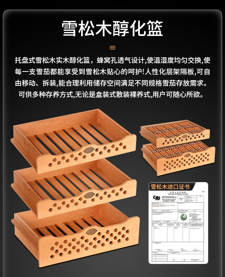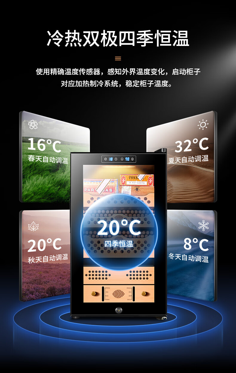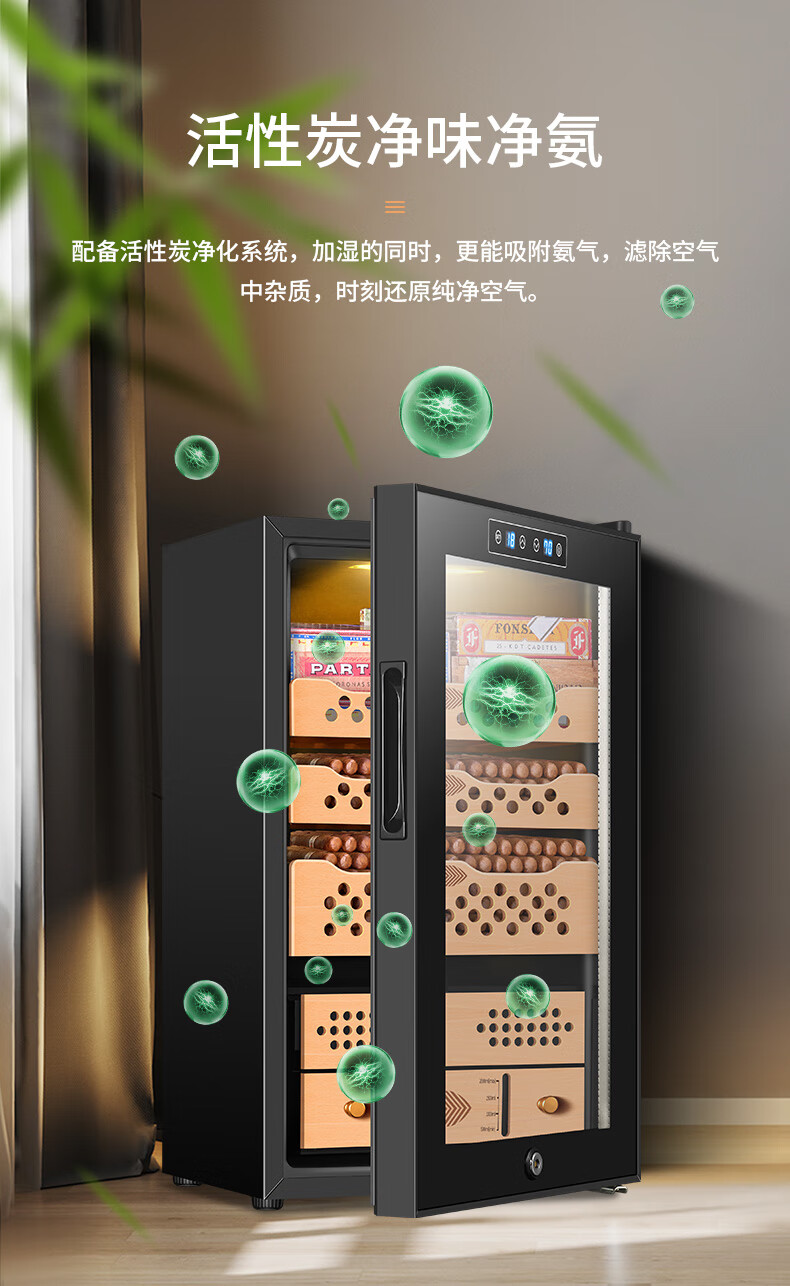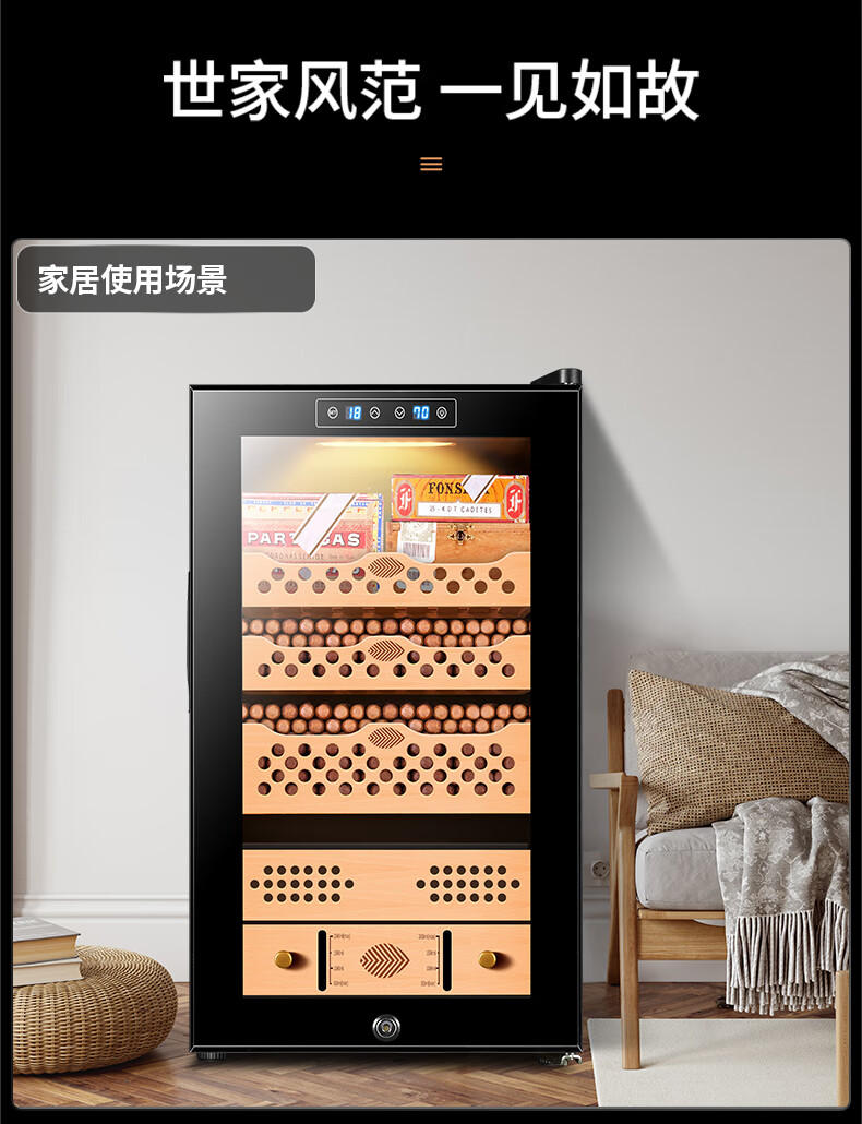 茄龙雪茄柜恒温恒湿智能风冷无霜压缩机柜节能静音西班牙雪松木雪茄柜恒温控湿养茄家用雪茄柜 70C黑色 70L