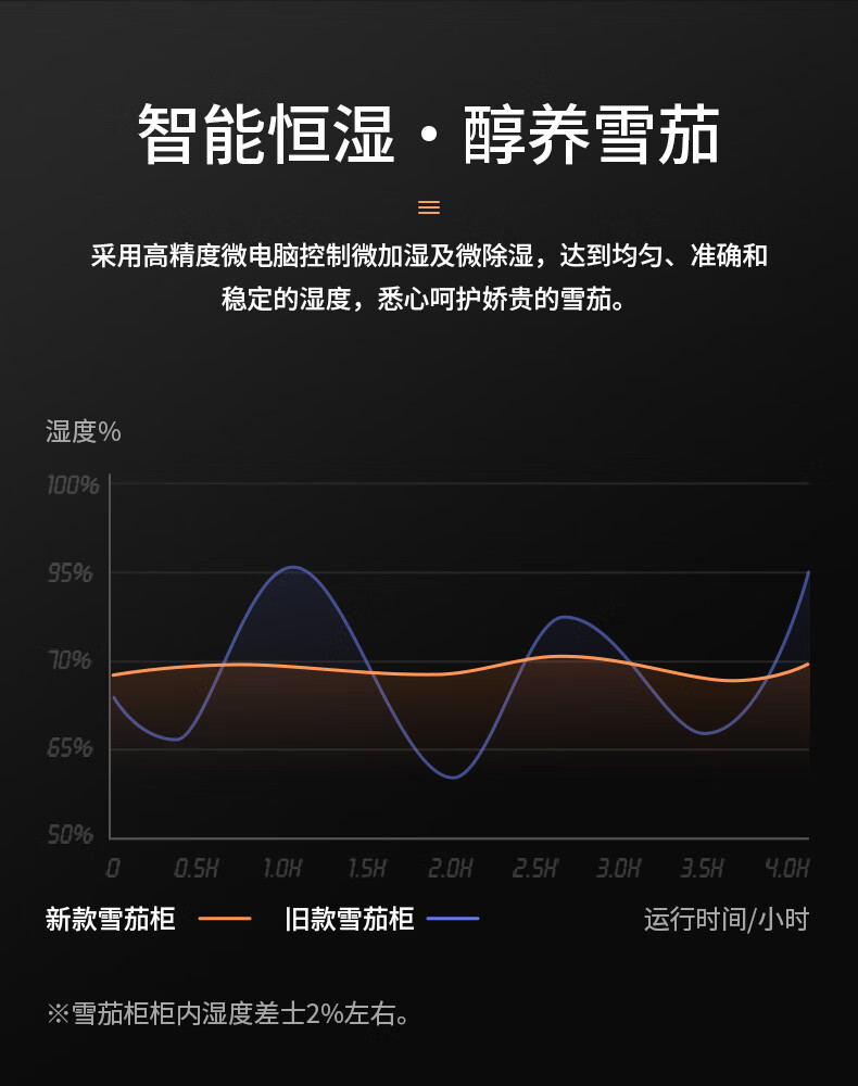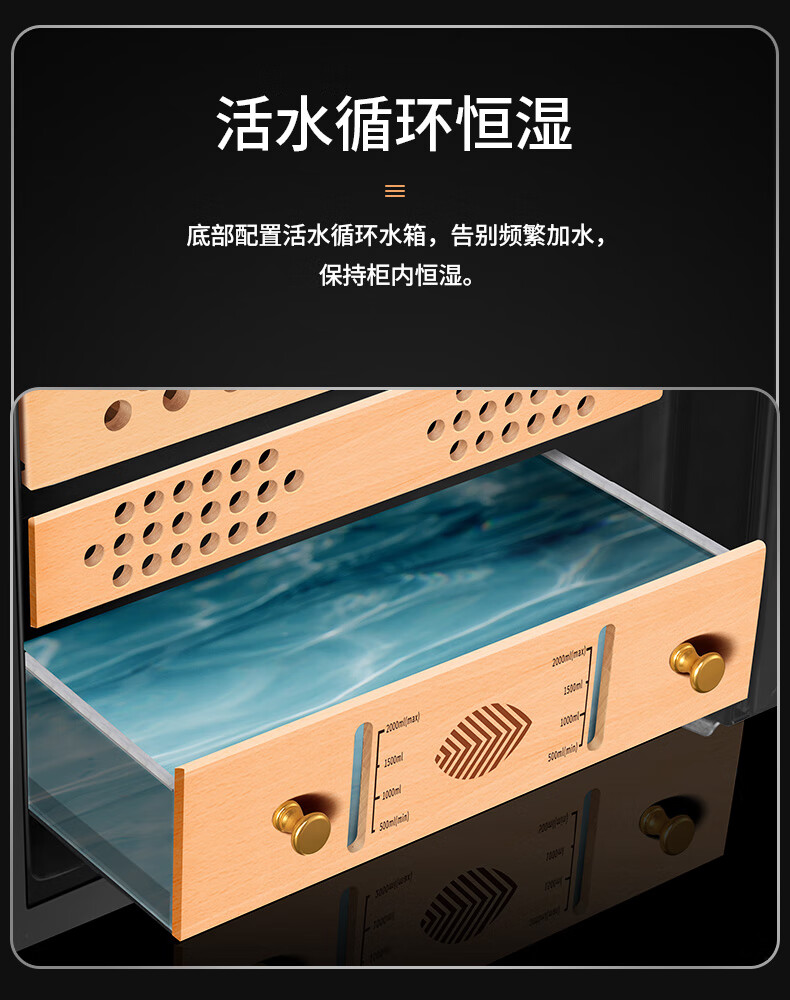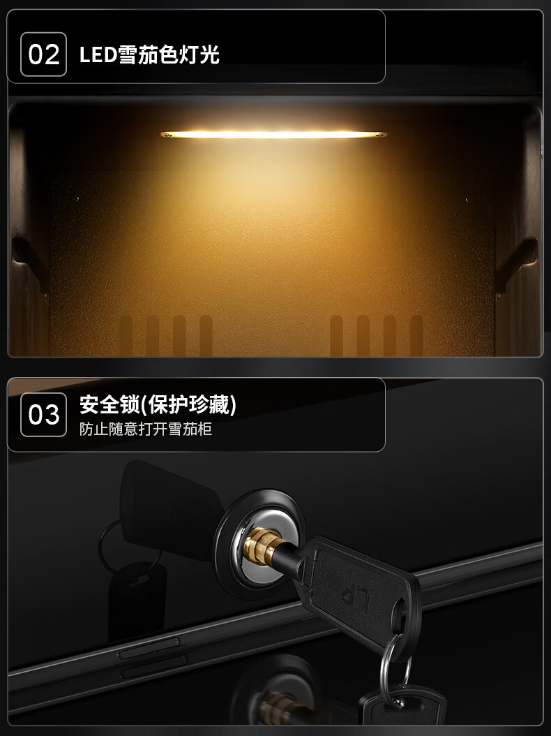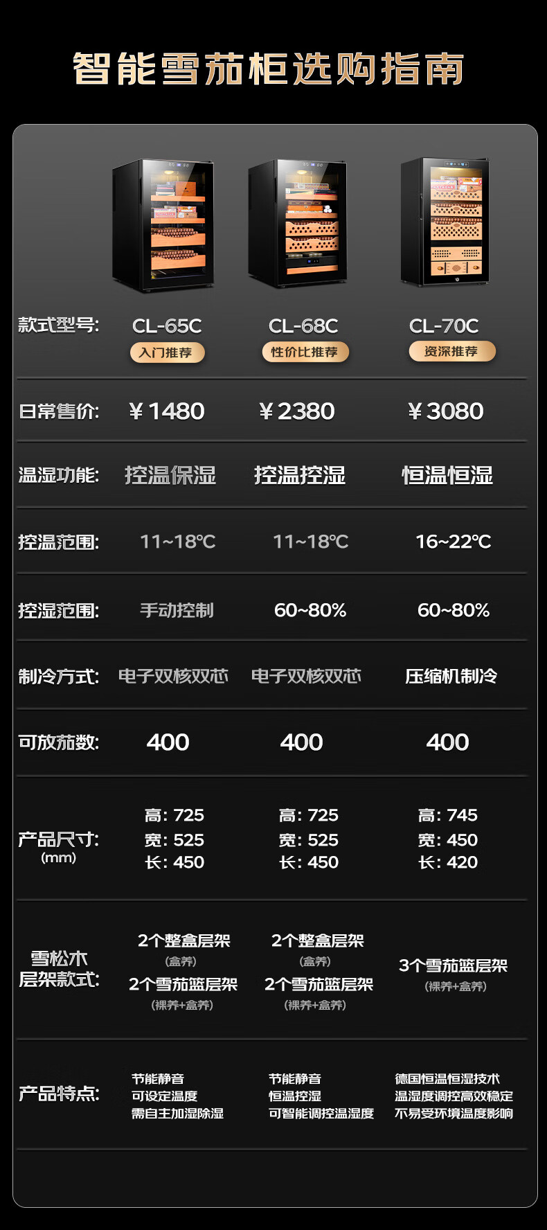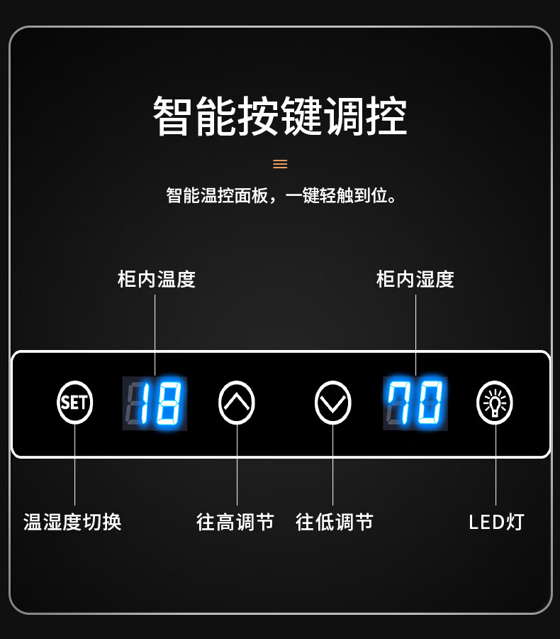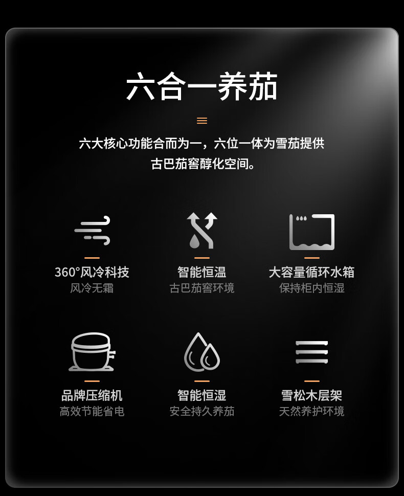 茄龙雪茄柜恒温恒湿智能风冷无霜压缩机柜节能静音西班牙雪松木雪茄柜恒温控湿养茄家用雪茄柜 70C黑色 70L