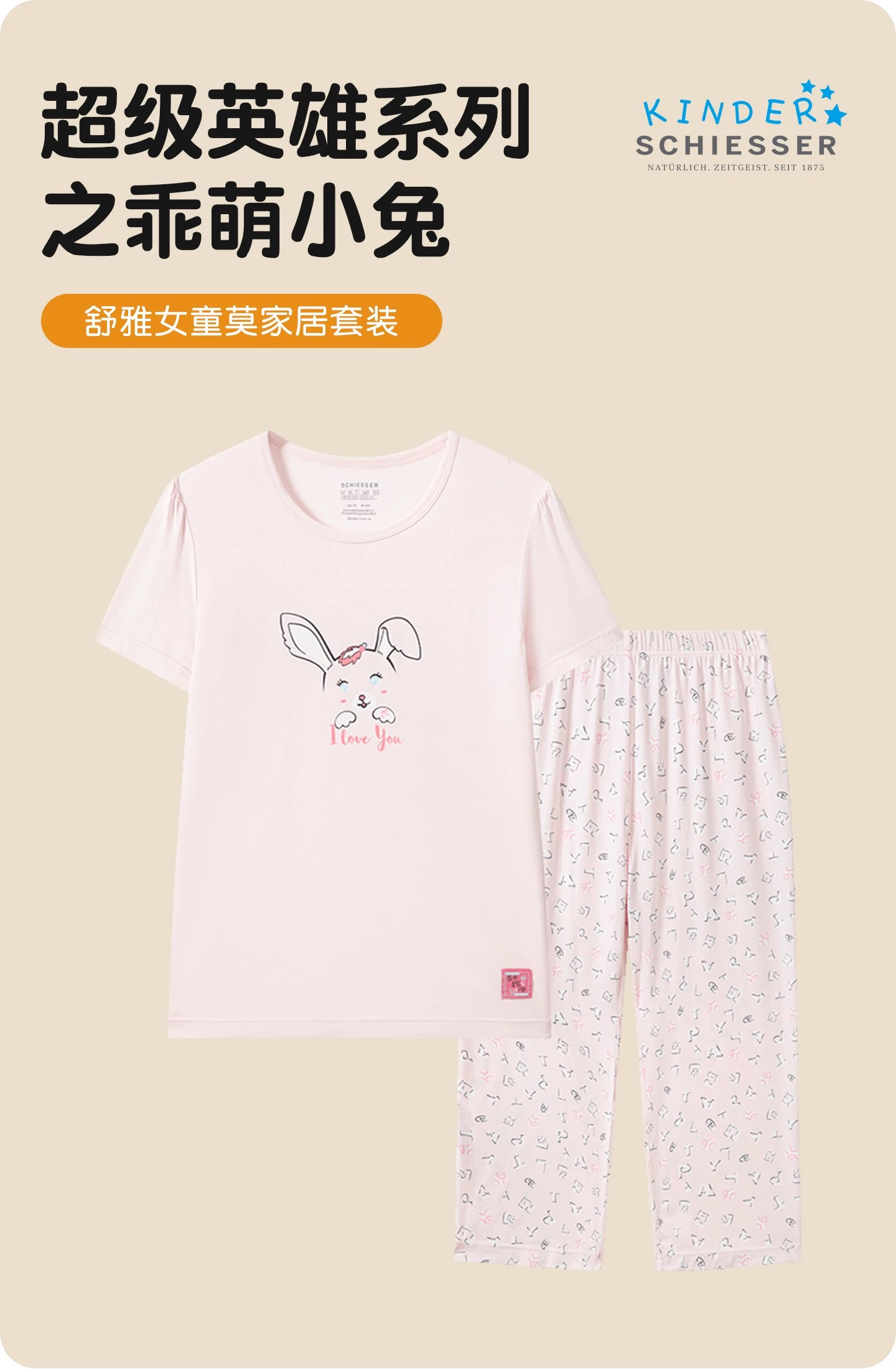 【超级英雄】SCHIESSER德国舒雅女童莫代尔轻柔舒适可爱小兔家居休闲套装110码-160码)3F/27272H