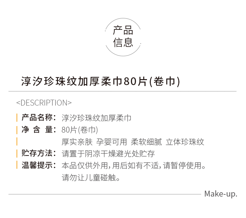 淳汐珍珠纹加厚柔巾80片(卷巾)洗脸巾(241169)