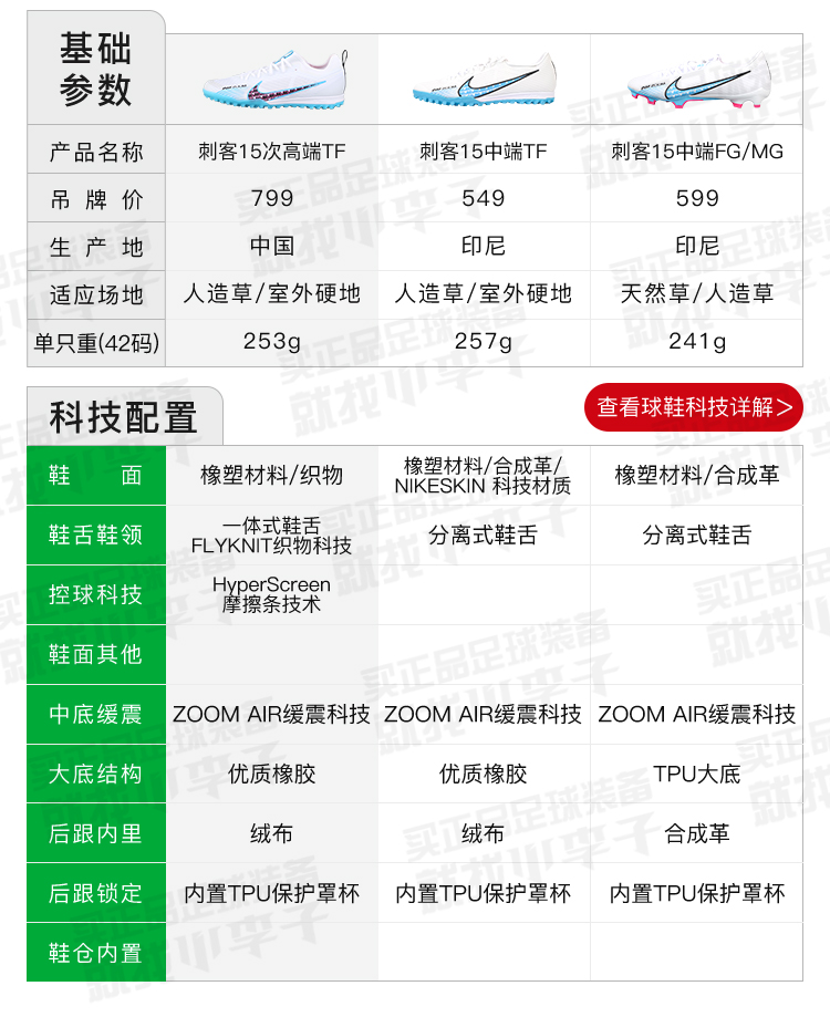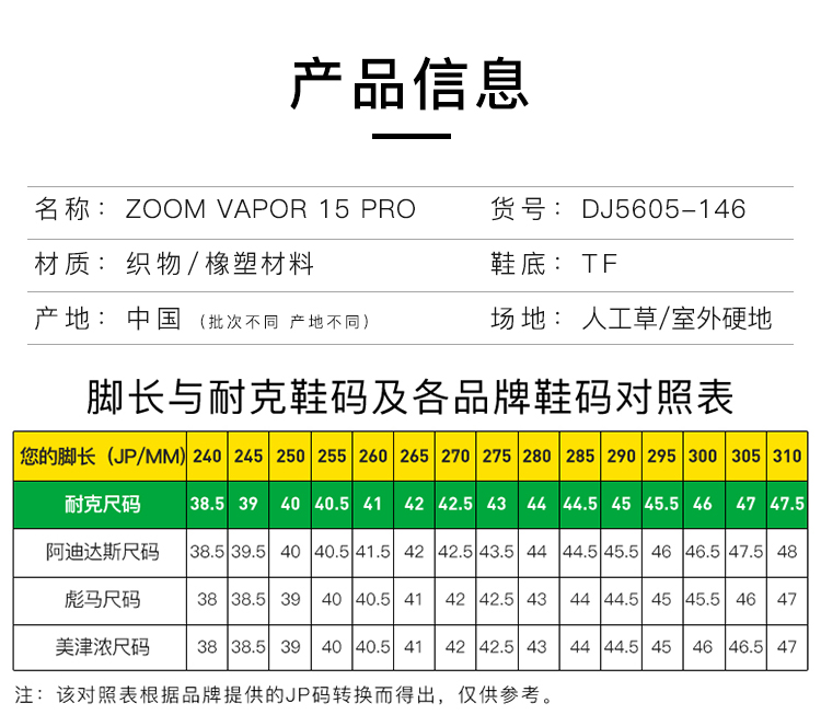 NIKE/耐克 Nike Mercurial Zoom Vapor 15 Pro TF 次高端 刺客15 低帮TF碎丁足球鞋