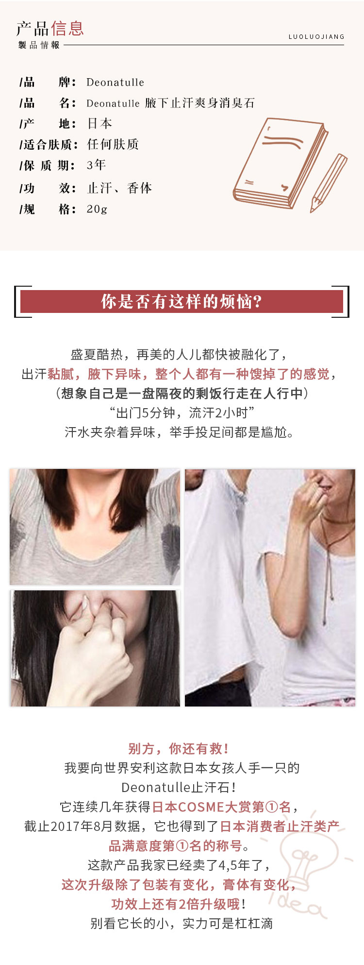 【爆款超低价预售 急单慎拍】日本新款Deonatulle腋下持久干爽去异味止汗石清爽消臭软膏除汗露