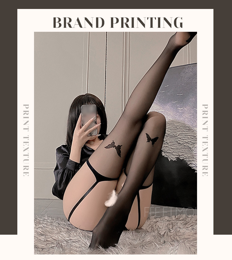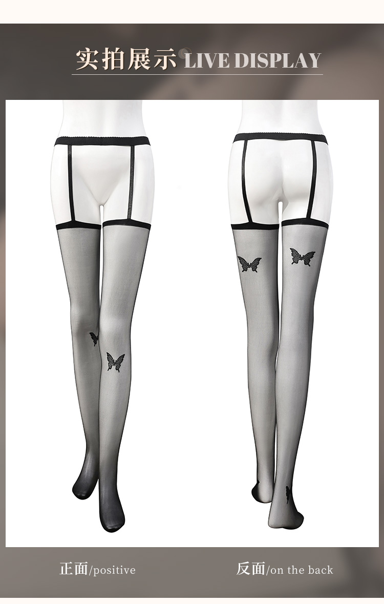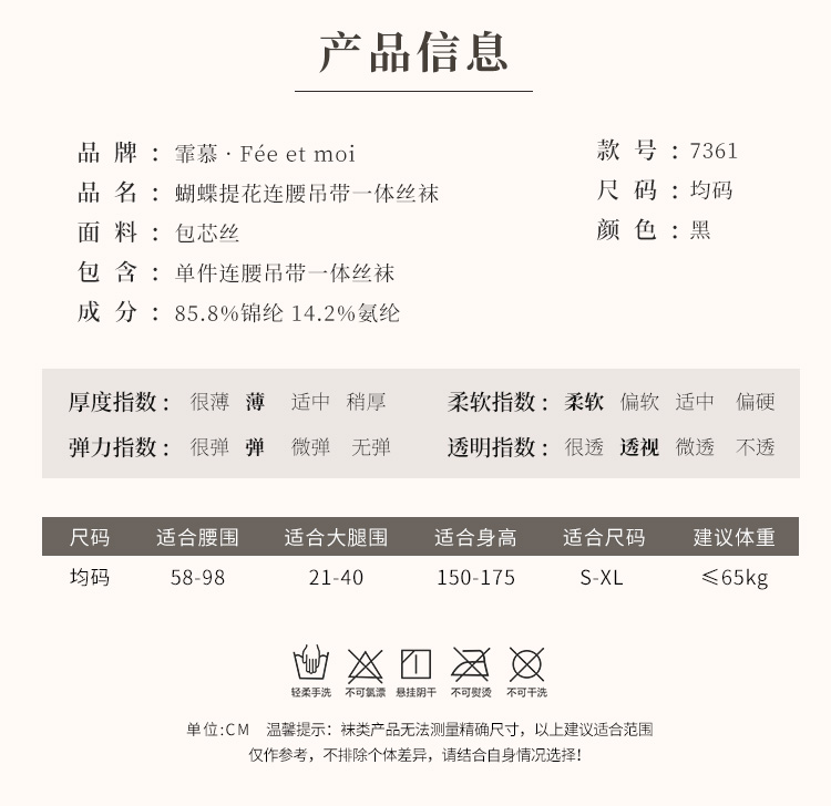 霏慕 蝴蝶提花连腰吊带一体丝袜吊袜带黑丝性感情趣内衣7361 黑【单件连腰吊带一体丝袜】 均码