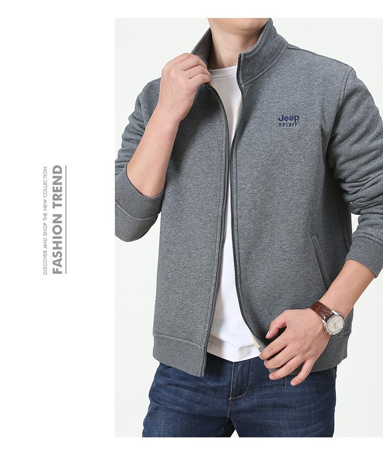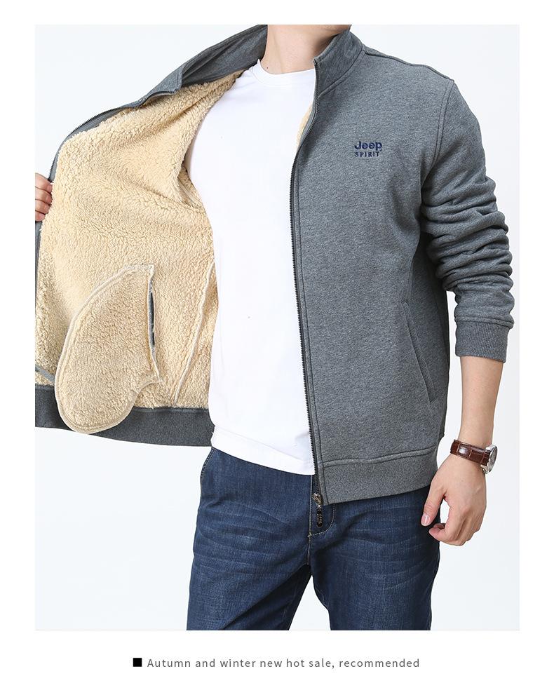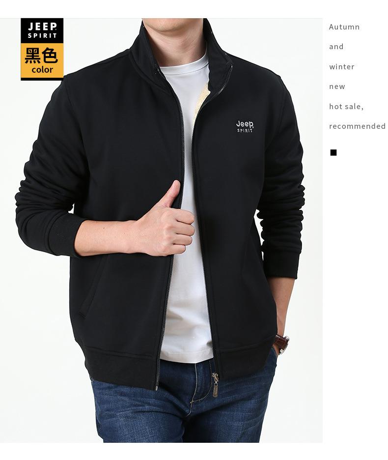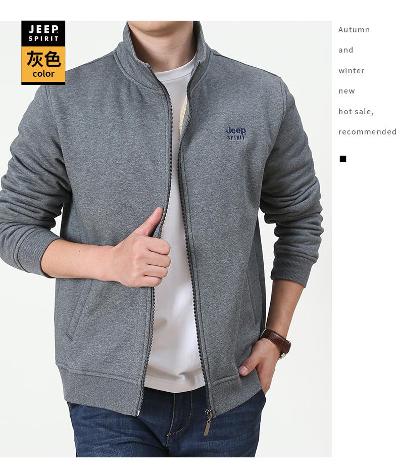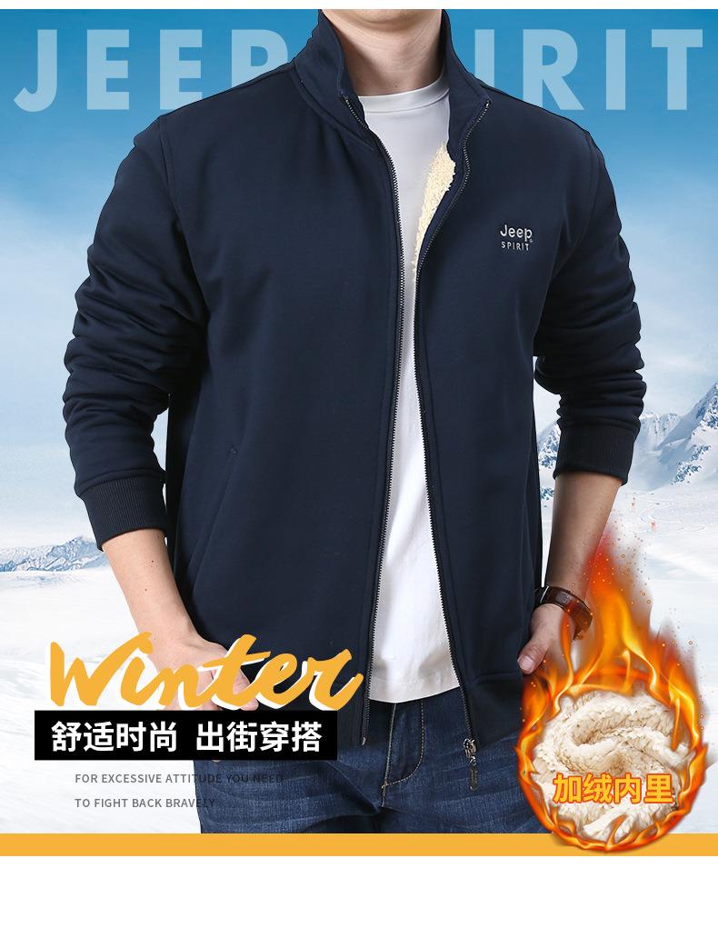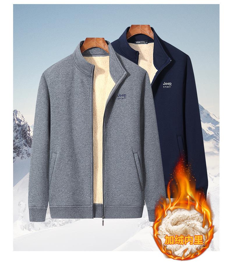 JEEP SPIRIT卫衣男冬加绒加厚立领宽松外套休闲运动开衫HL2026D