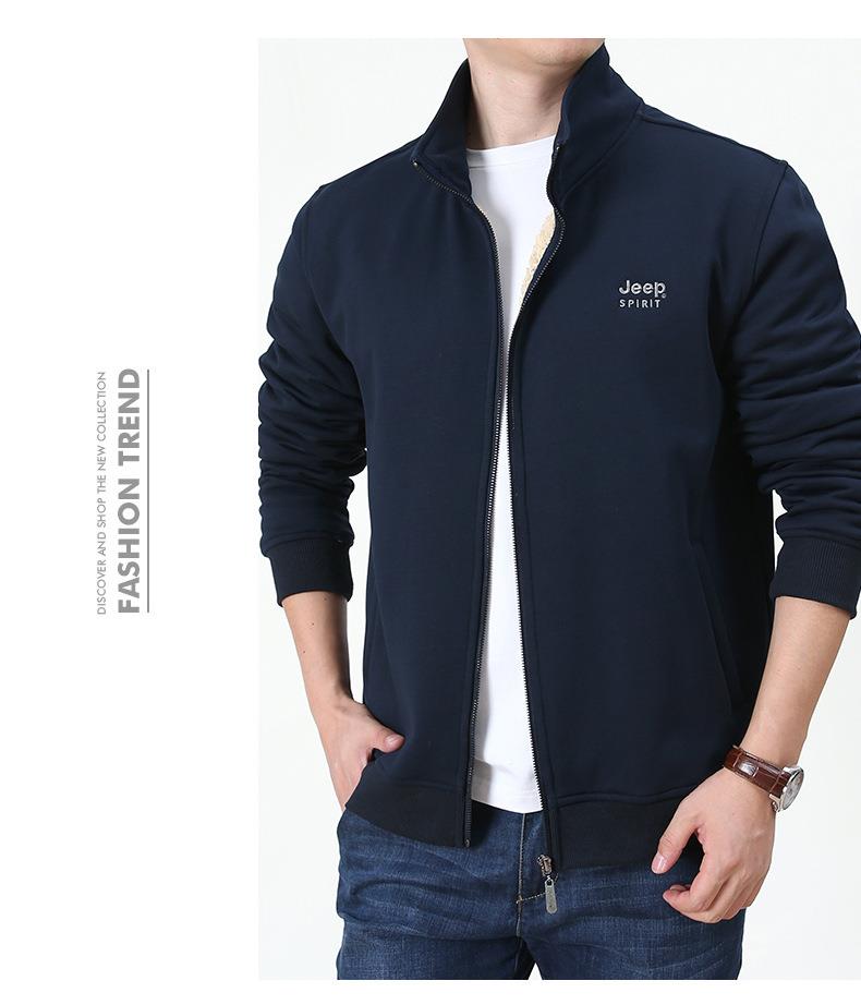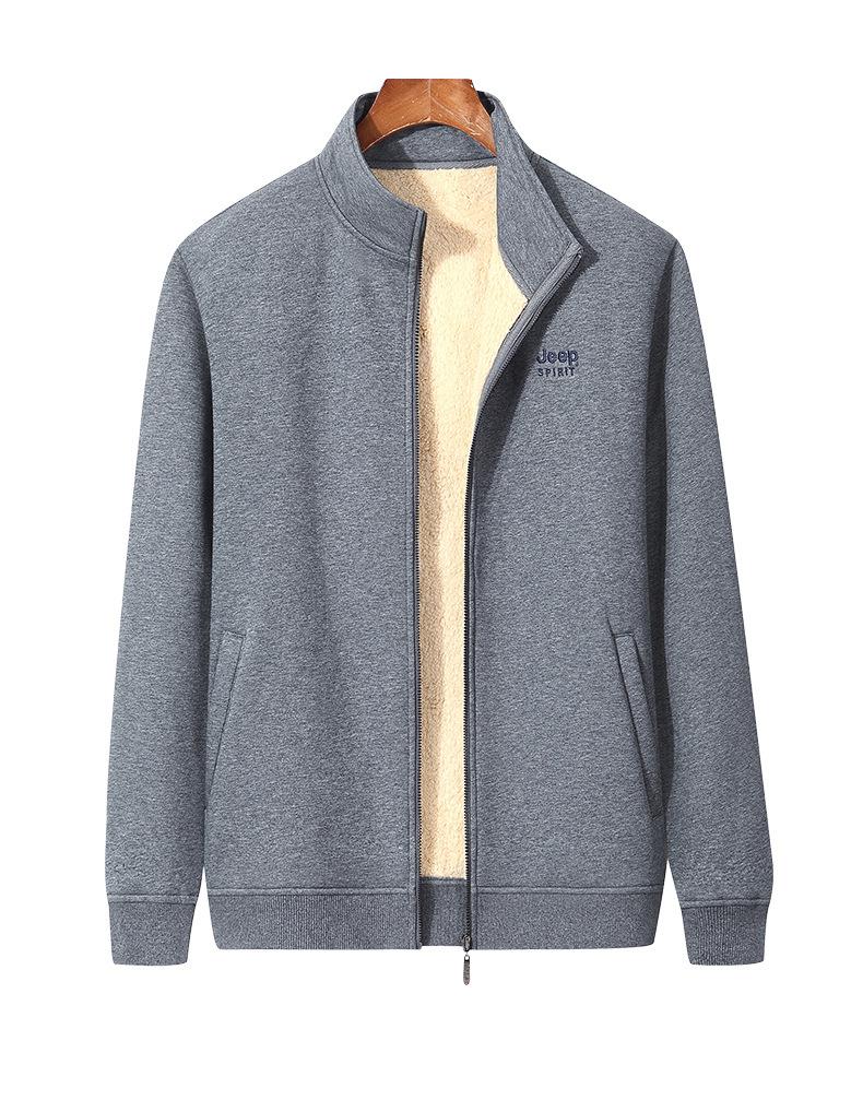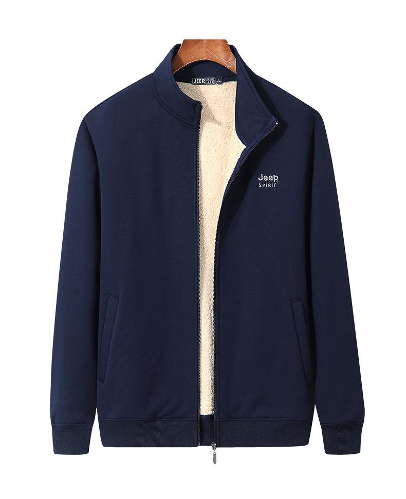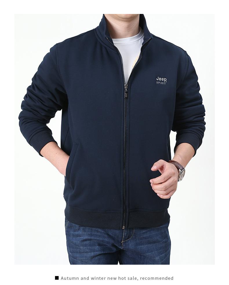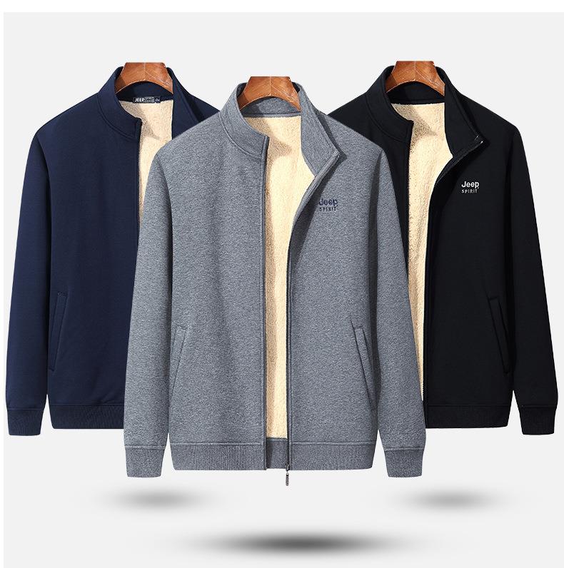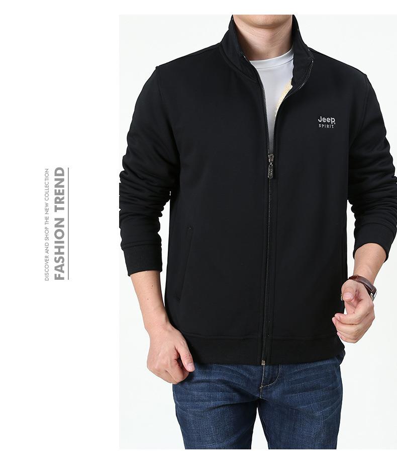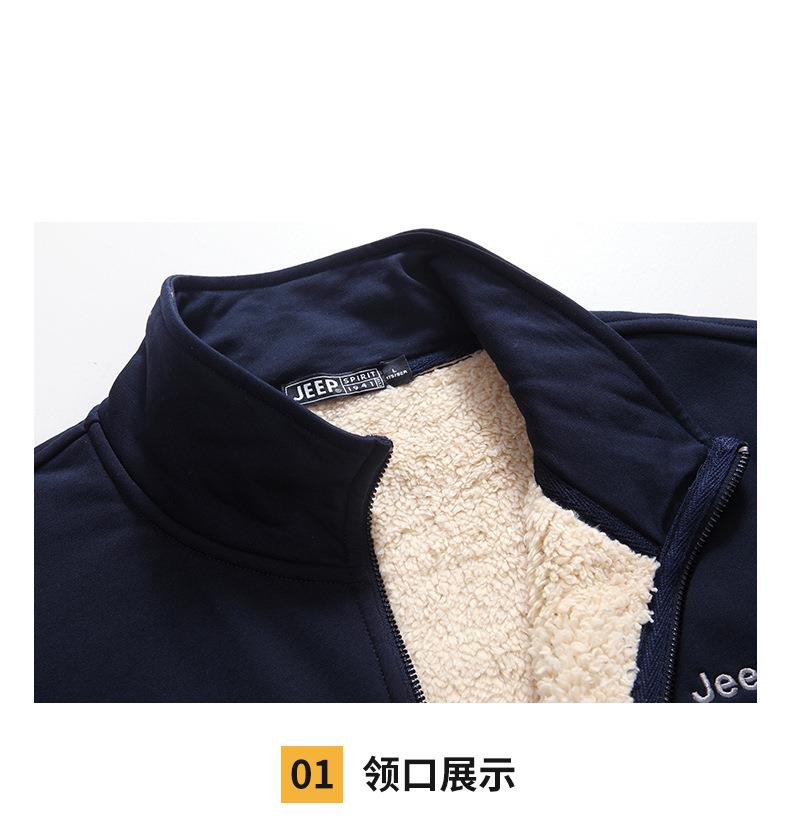 JEEP SPIRIT卫衣男冬加绒加厚立领宽松外套休闲运动开衫HL2026D