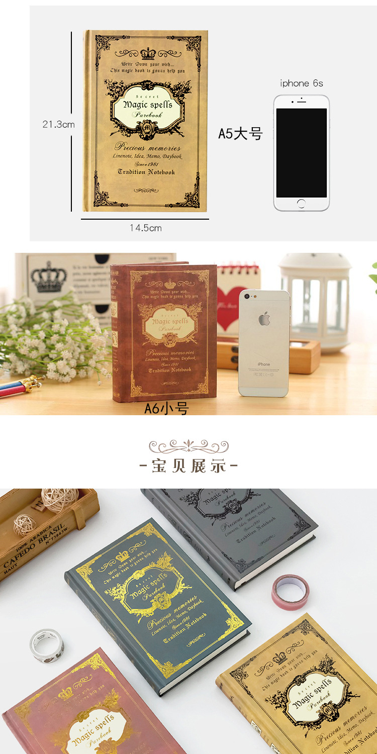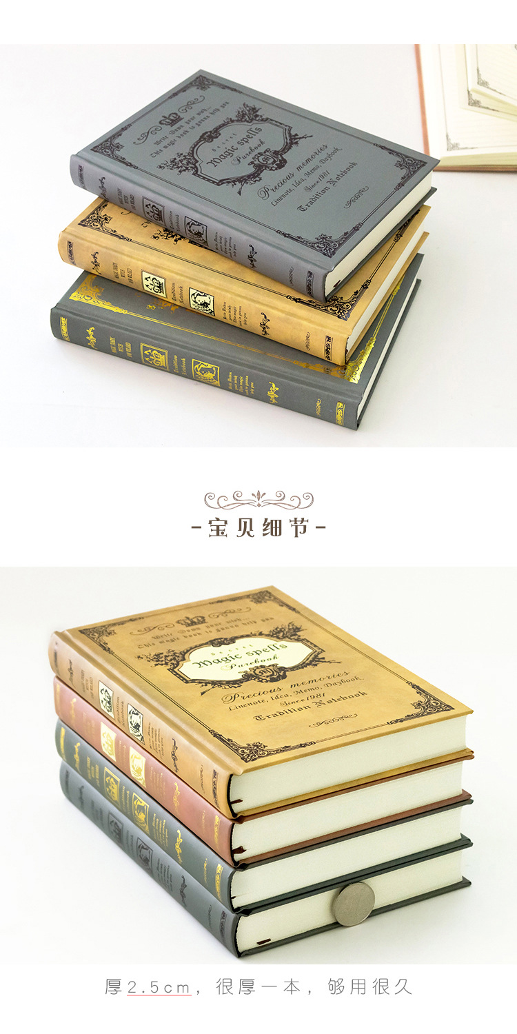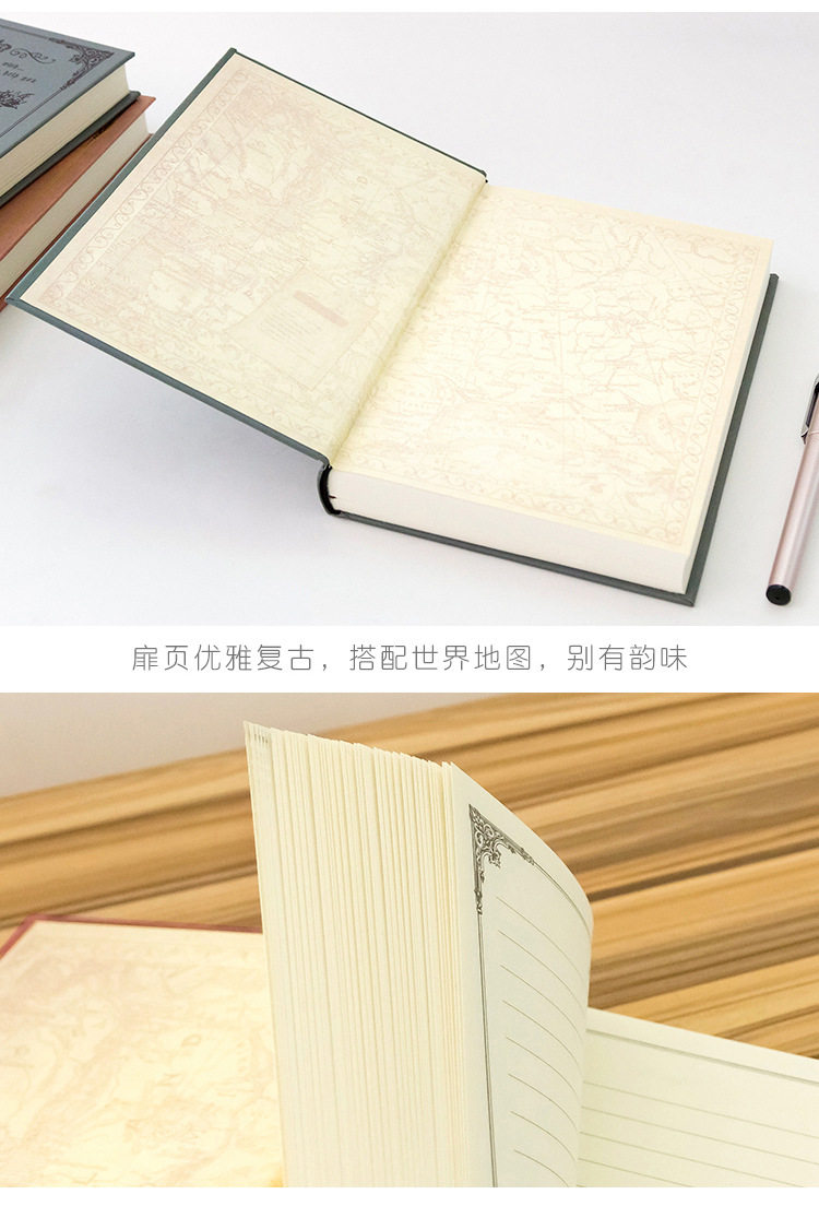 【欧式创意❗复古魔法书笔记本】扉页优雅复古,搭配世界地图,别有韵味,纸质细腻光滑书写流畅,笔记本A5加厚硬面日记本精装学生记事本子L