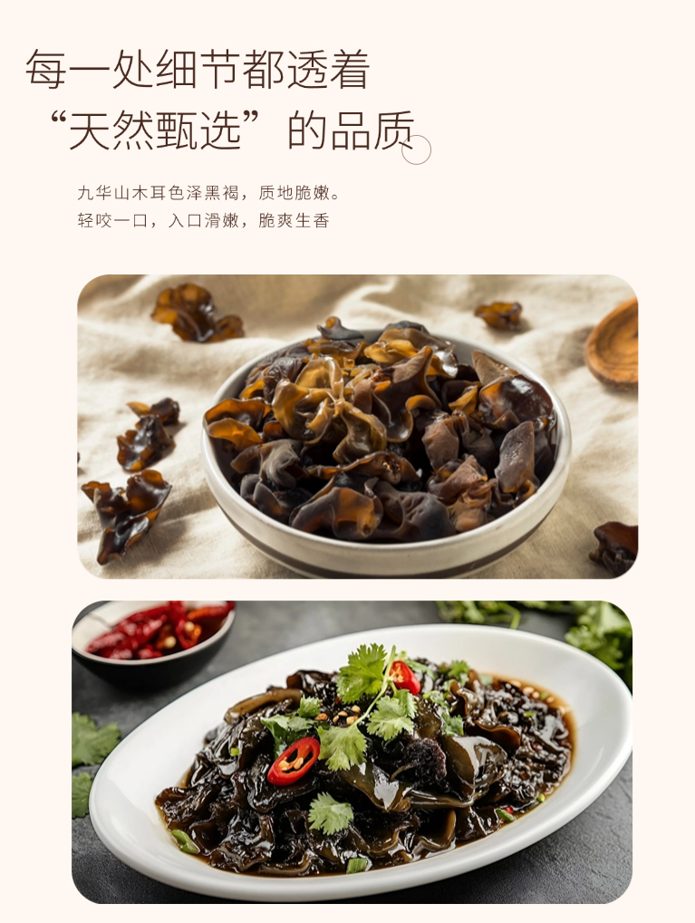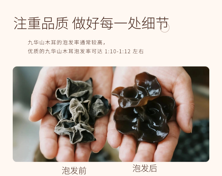 【凤品优选】九华山干黑木耳 ,野生生长 饱满厚实,口感韧滑 泡发率高