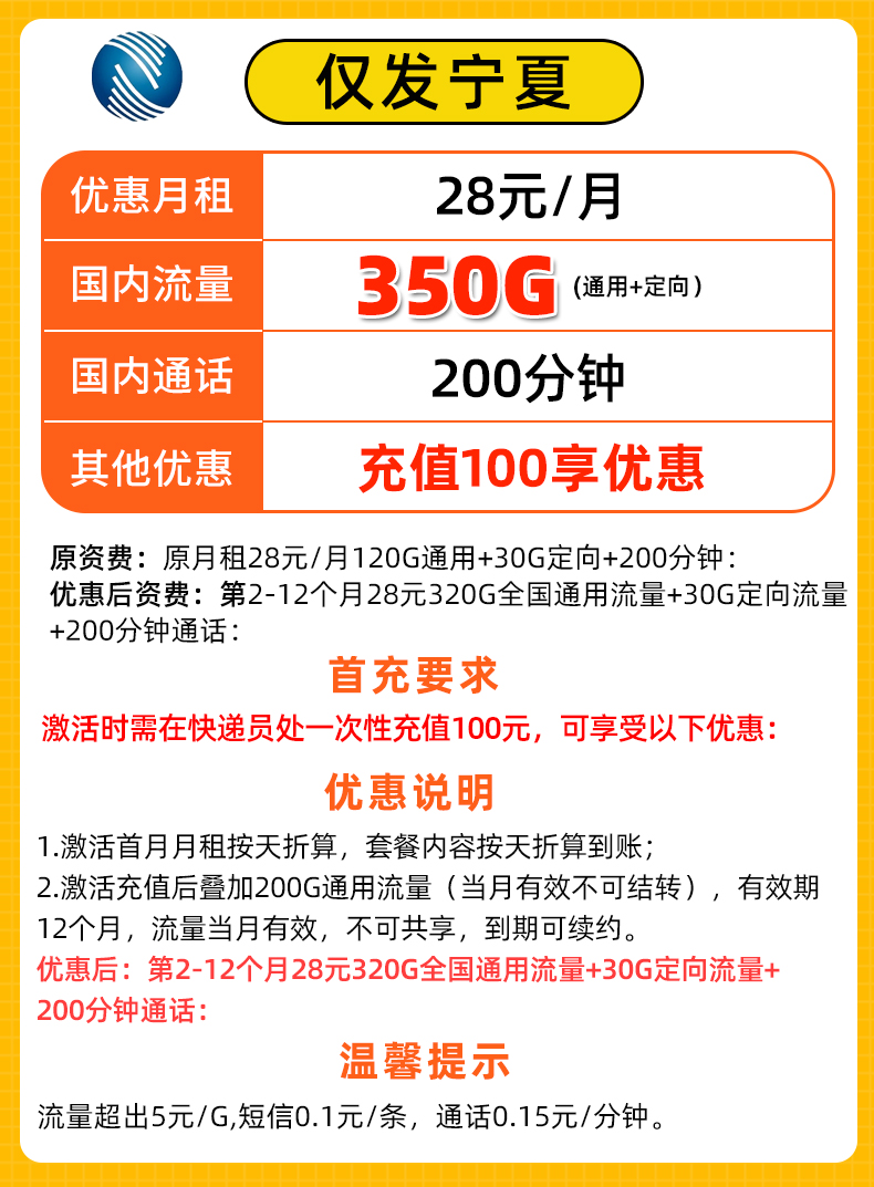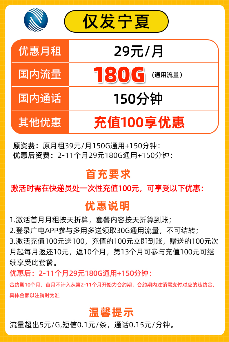 【只发宁夏】广电29元180G+150分钟【18-65岁】 ,28元350G+200分钟【18-35岁】