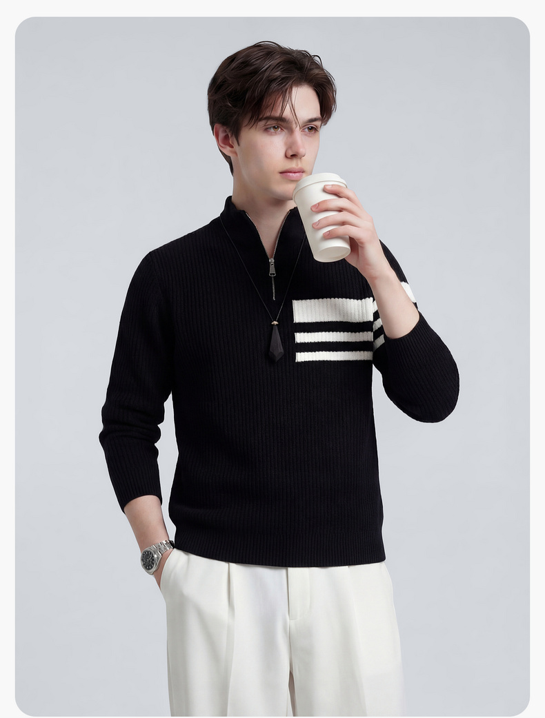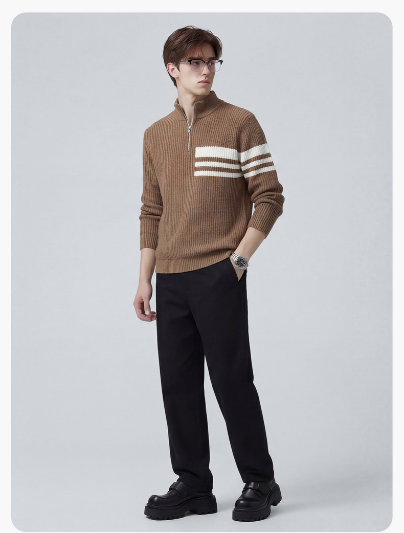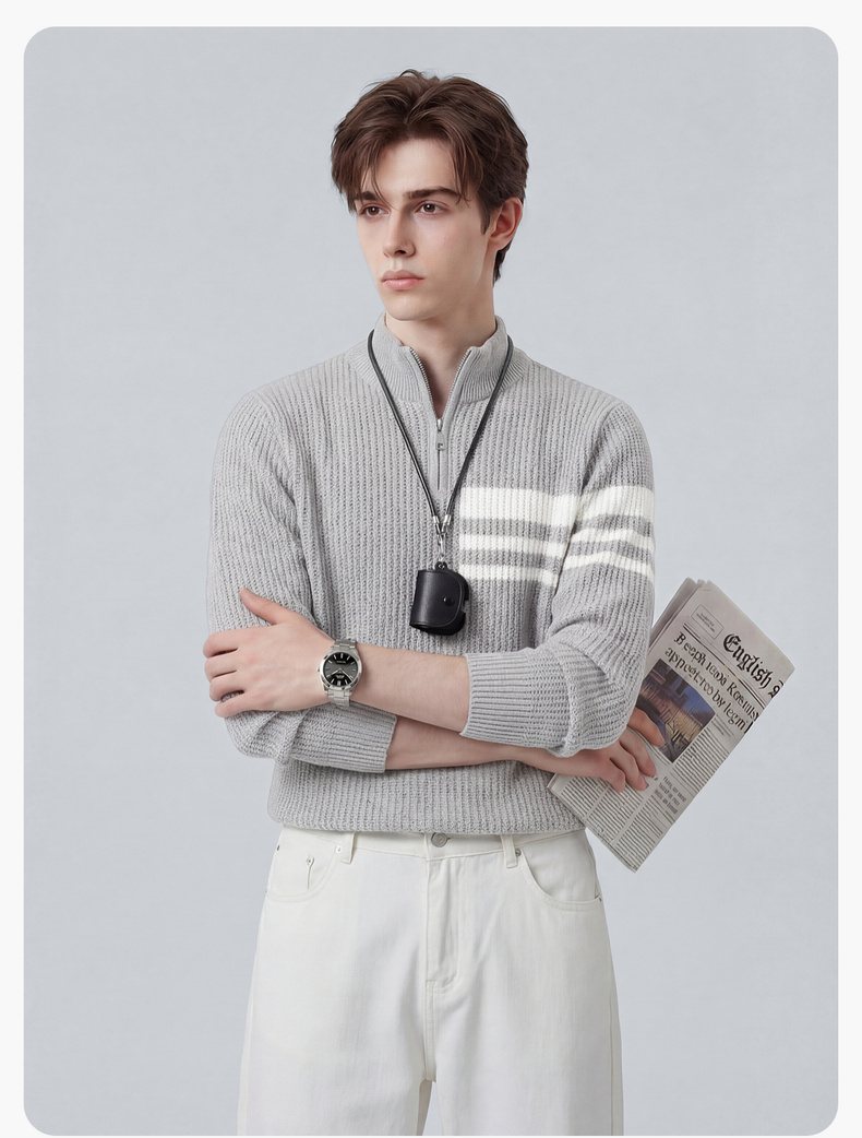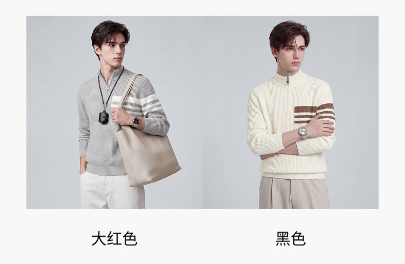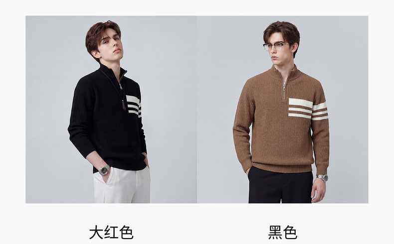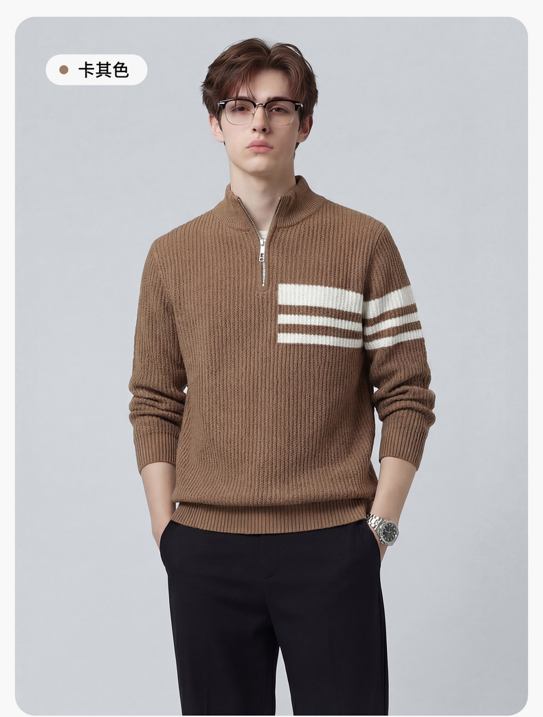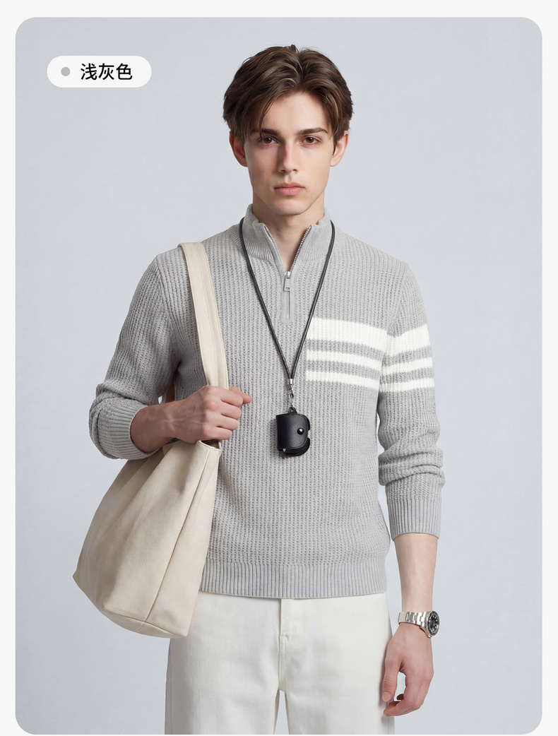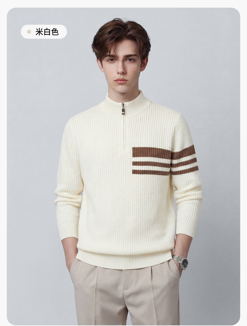 【不易变形】圣得西男士薄款针织衫2026新款春季半拉链休闲毛衣