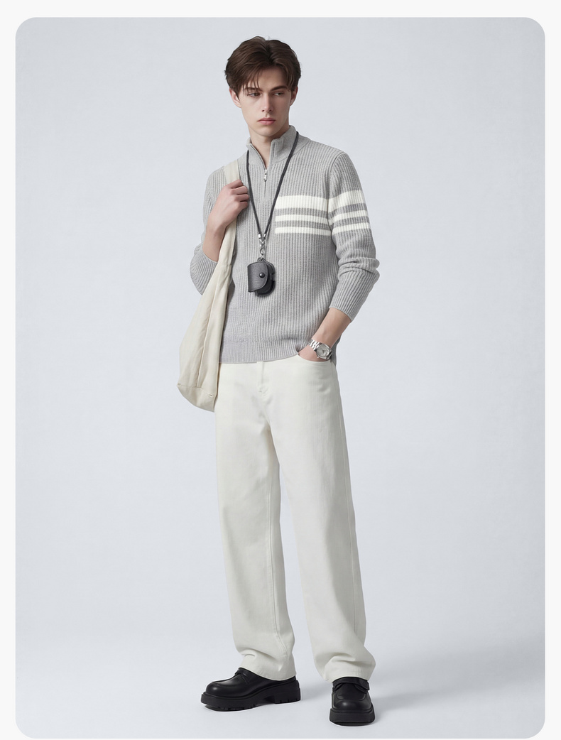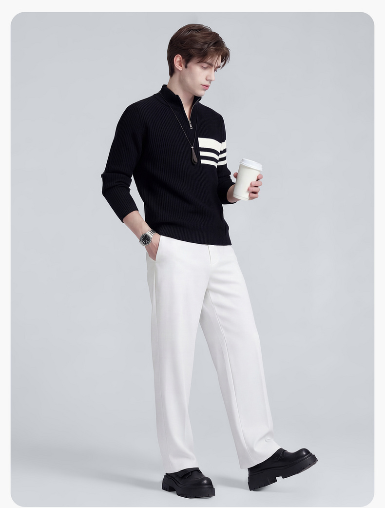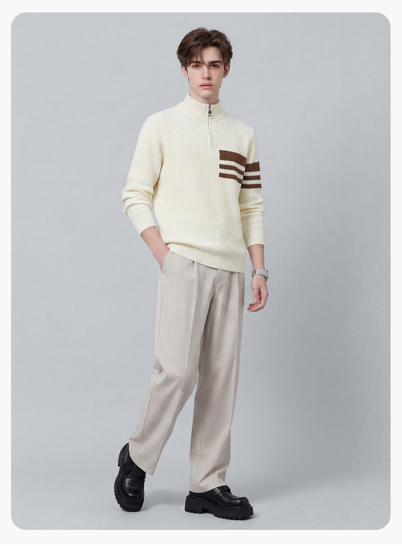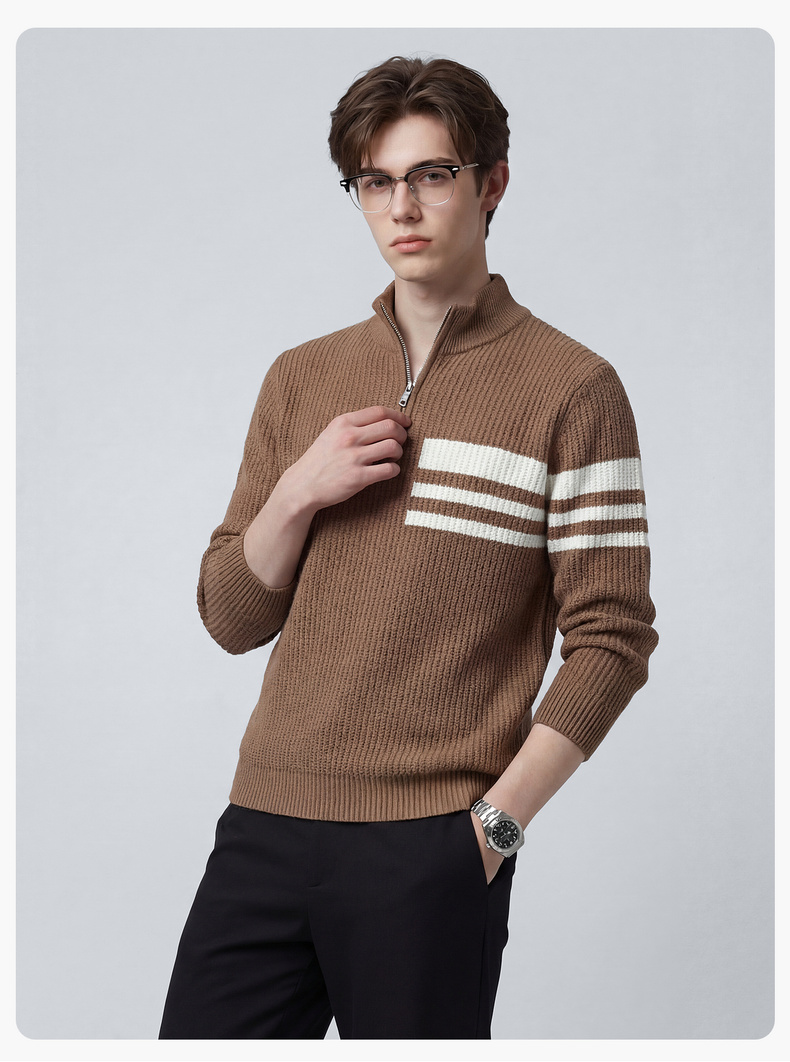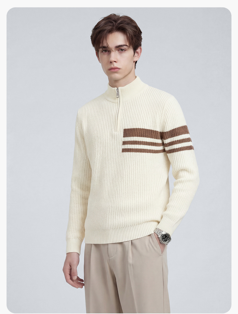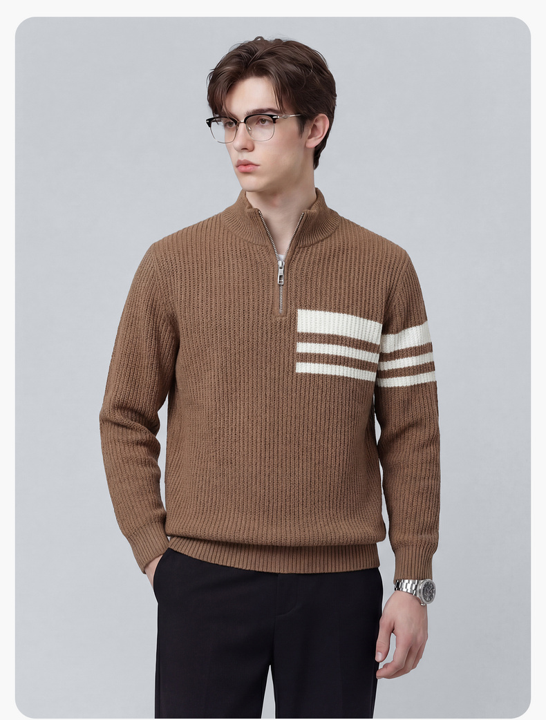 【不易变形】圣得西男士薄款针织衫2026新款春季半拉链休闲毛衣