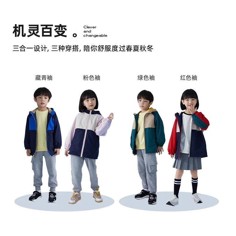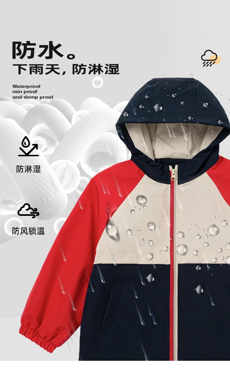 产品一:亲子款少年彩加绒连帽冲锋衣