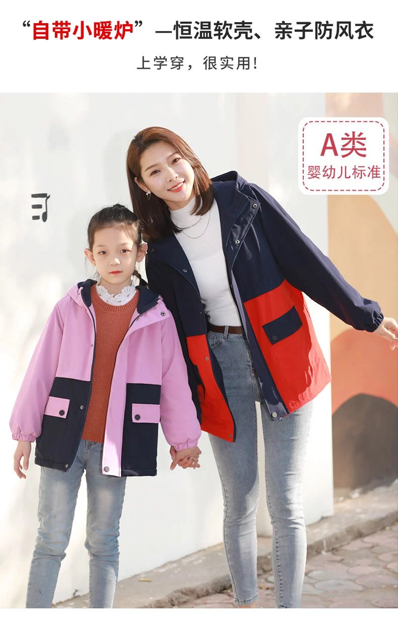 【夏季清仓】龙之涵 亲子款加绒连帽冲锋衣冲锋裤合集 中大童保暖上衣 婴幼儿A类标准