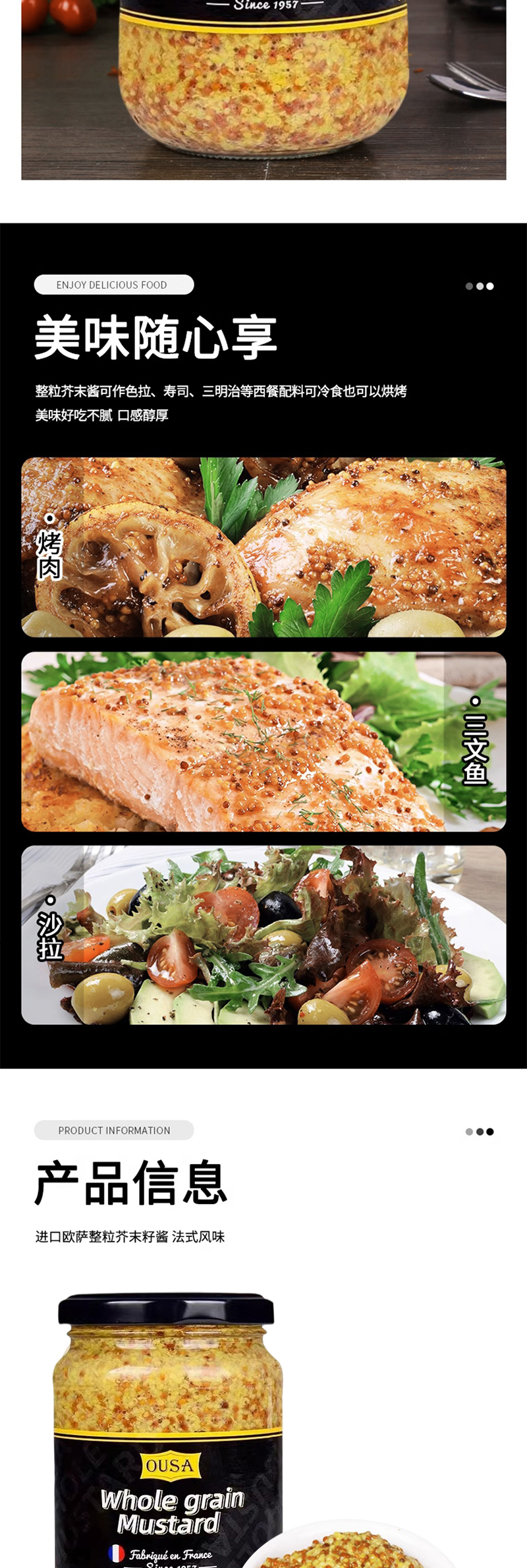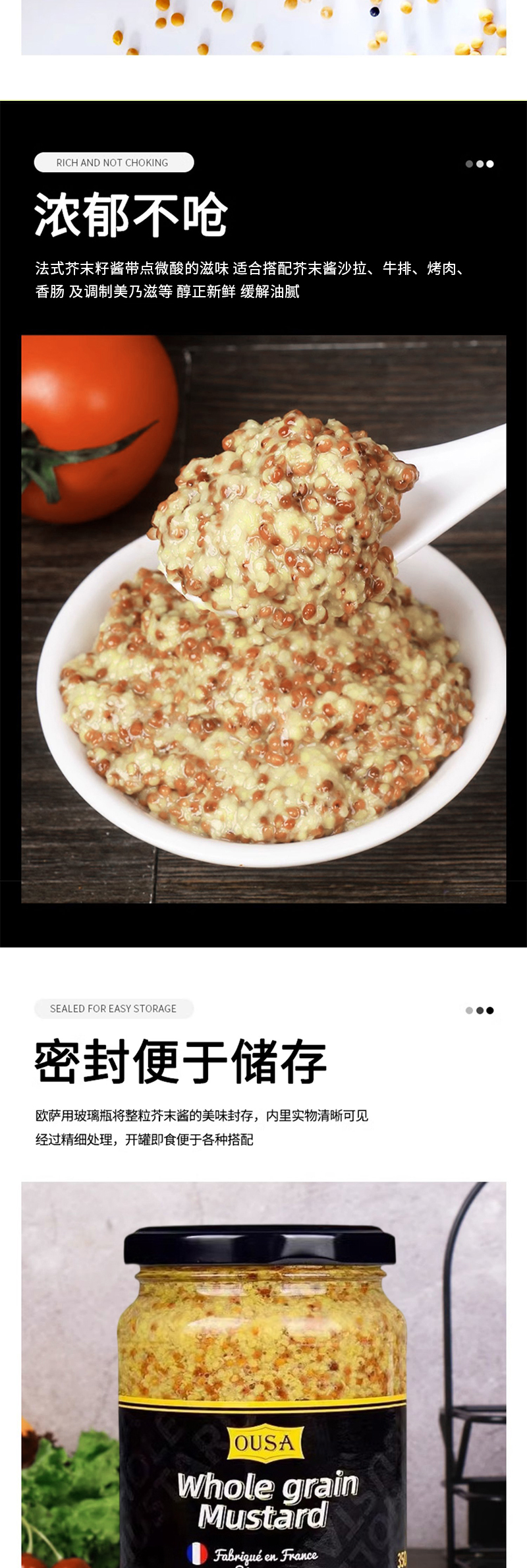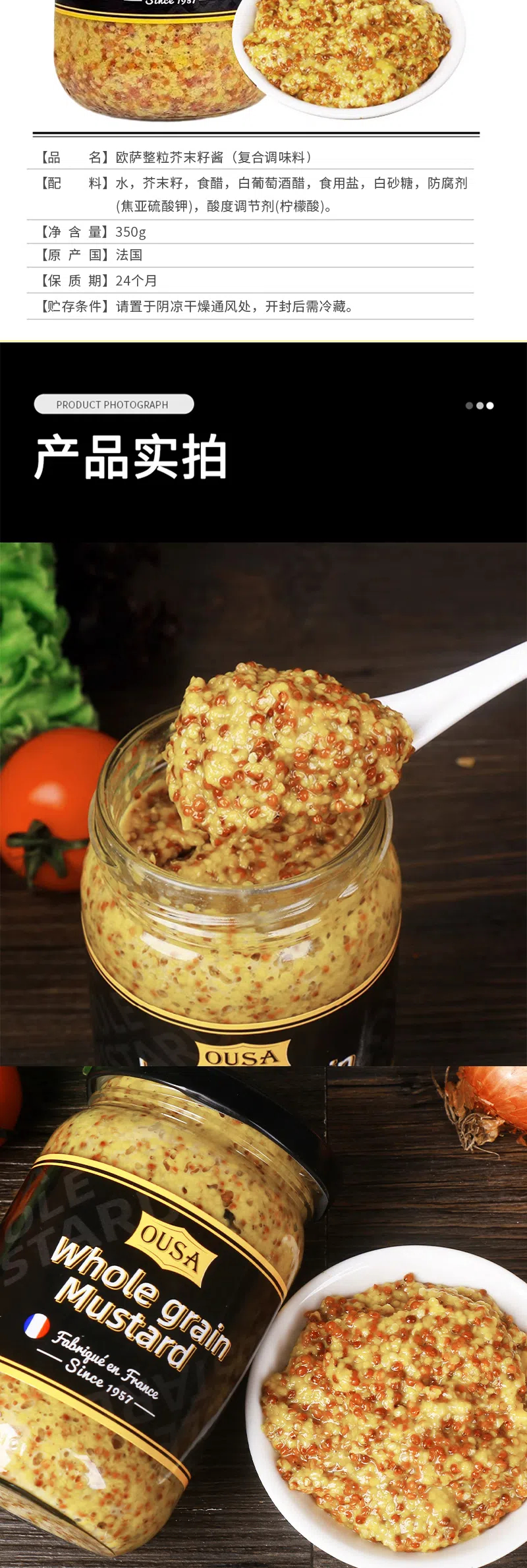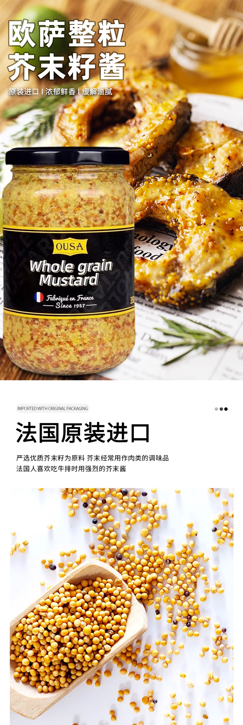 法国进口欧萨整粒芥末籽酱复合调味料350g