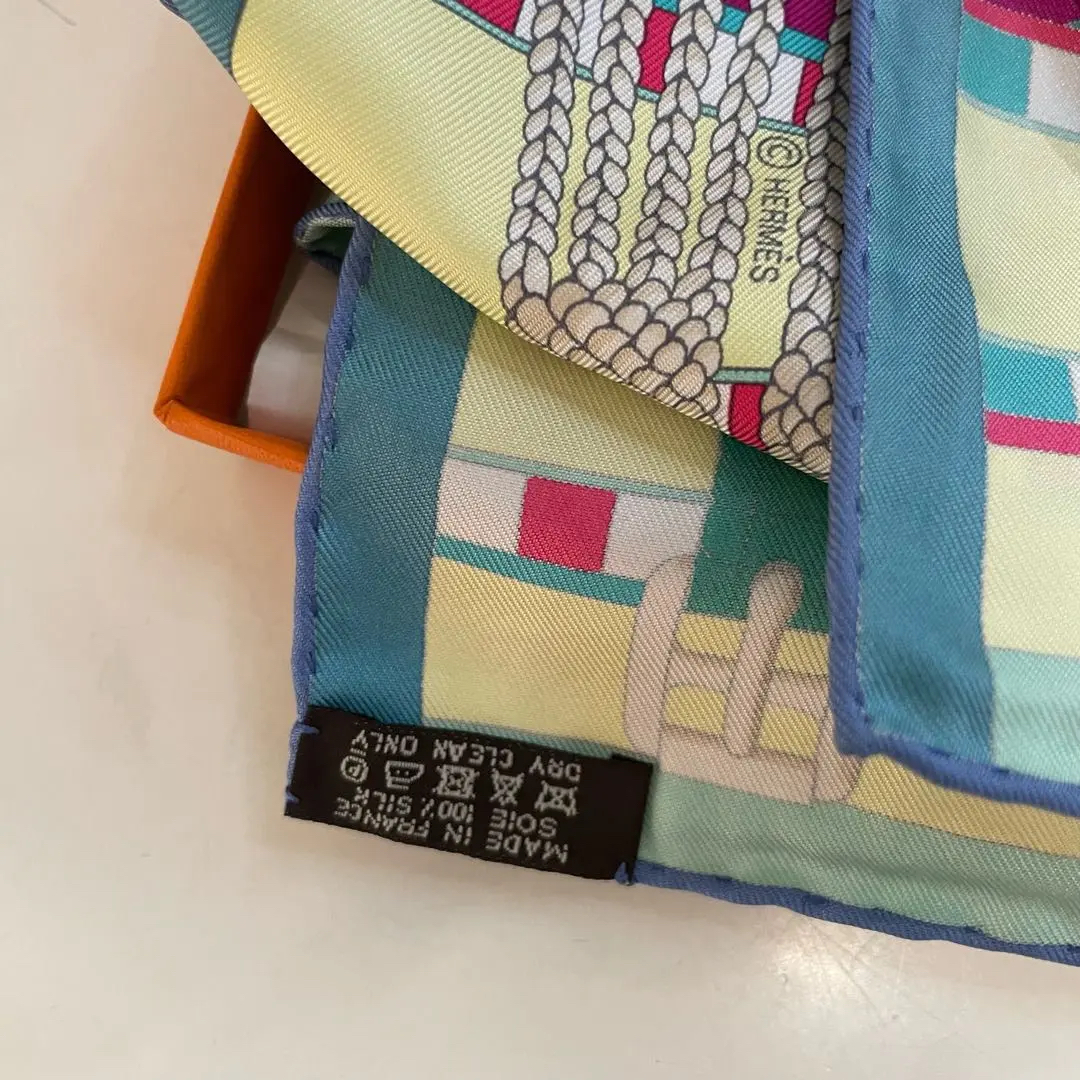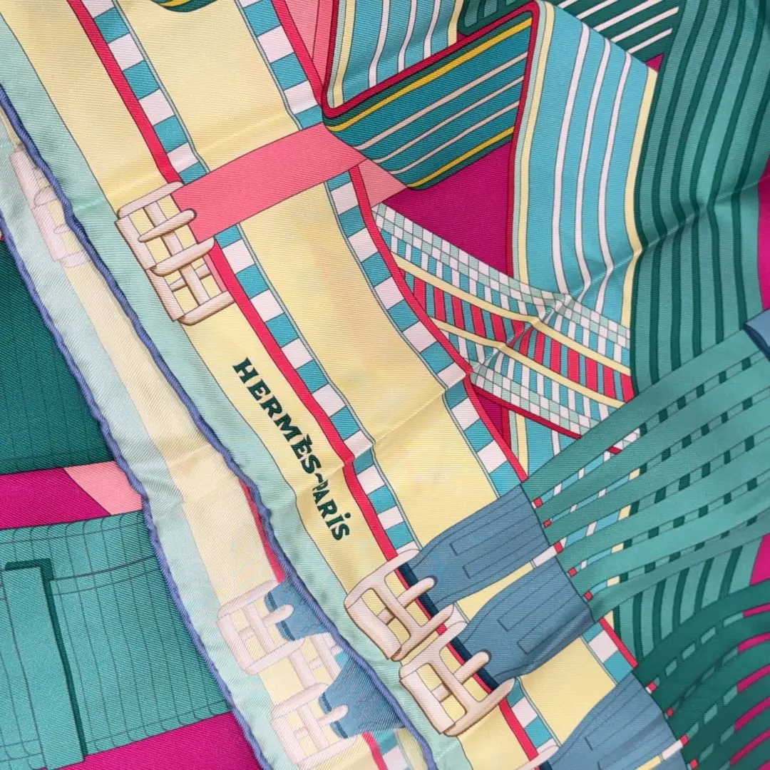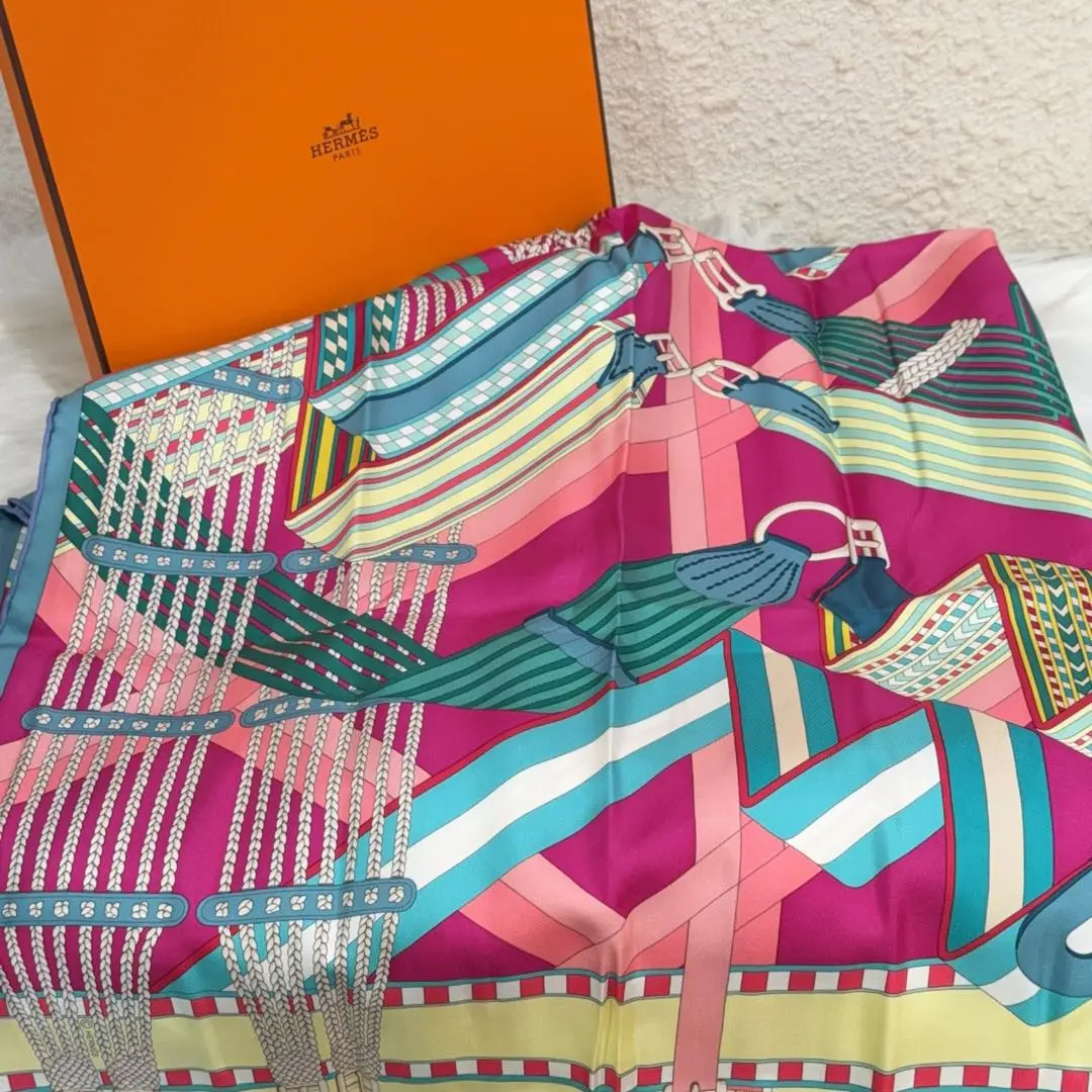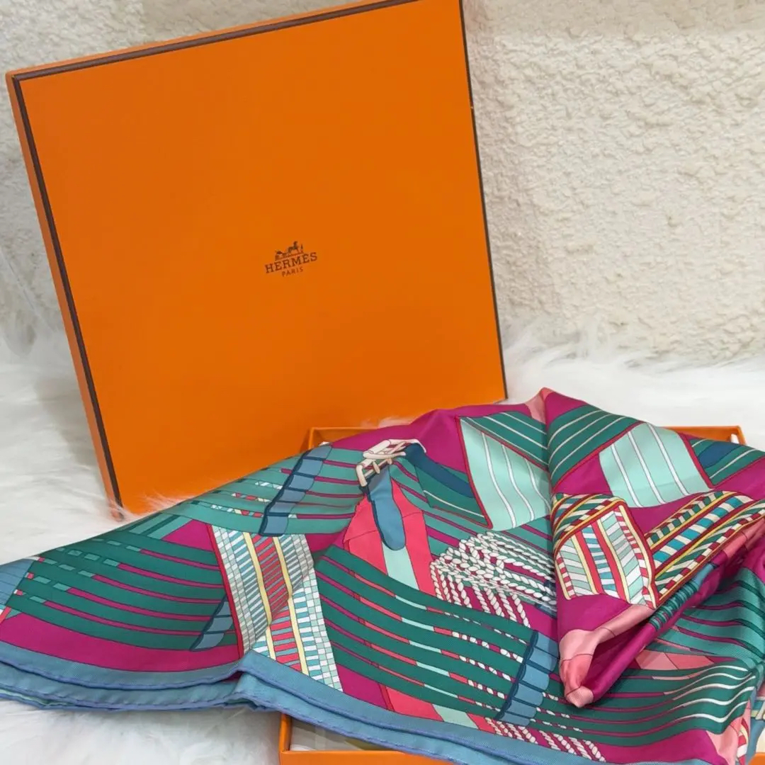 【商品详情】正品二手 爱马仕 曲折鞍带 丝巾🫢98新 90*90 配件:吊牌 盒子。优雅漂亮。