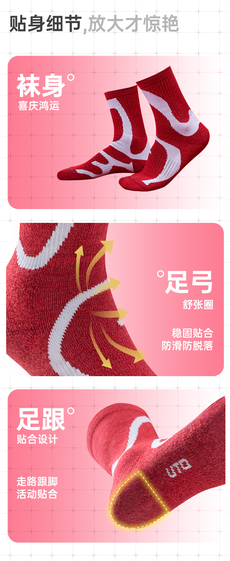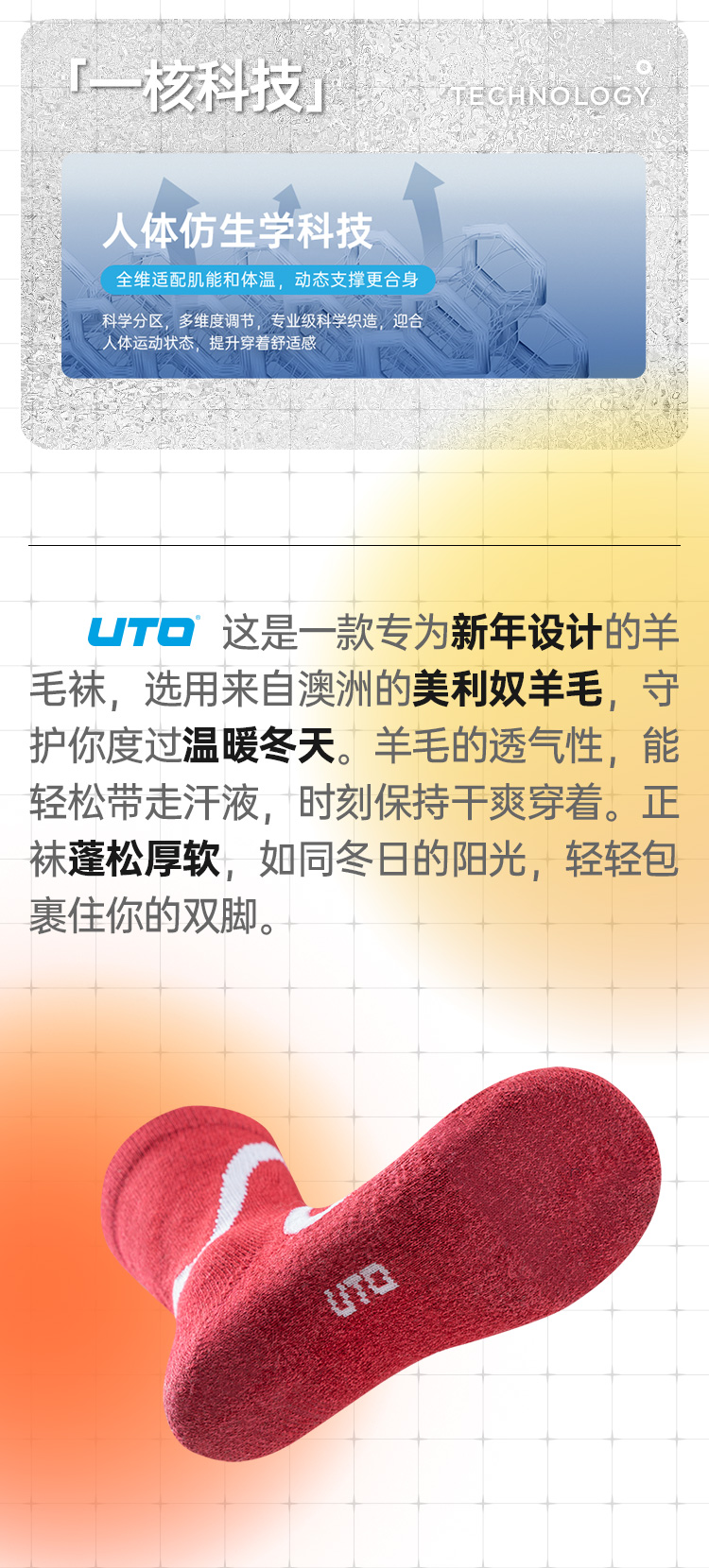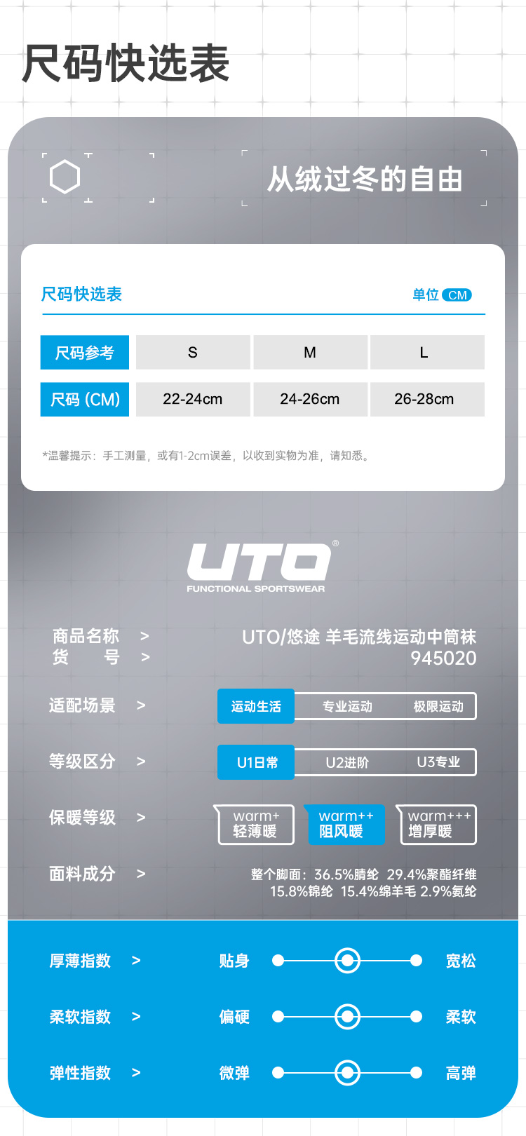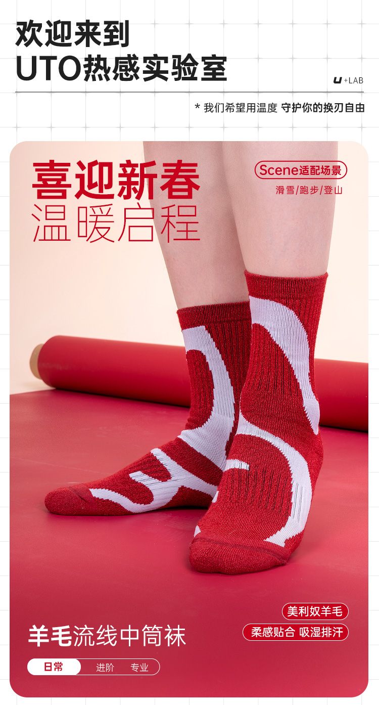 UTO/悠途羊毛流线运动中筒袜秋冬户外训练徒步加厚保暖弹力跑步袜