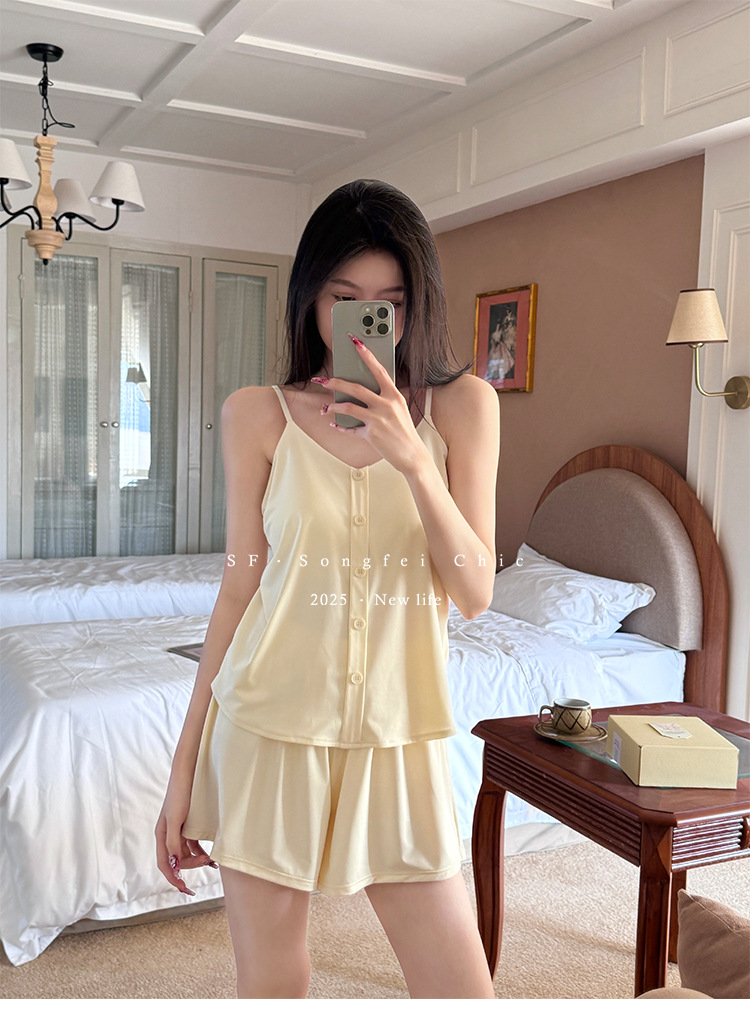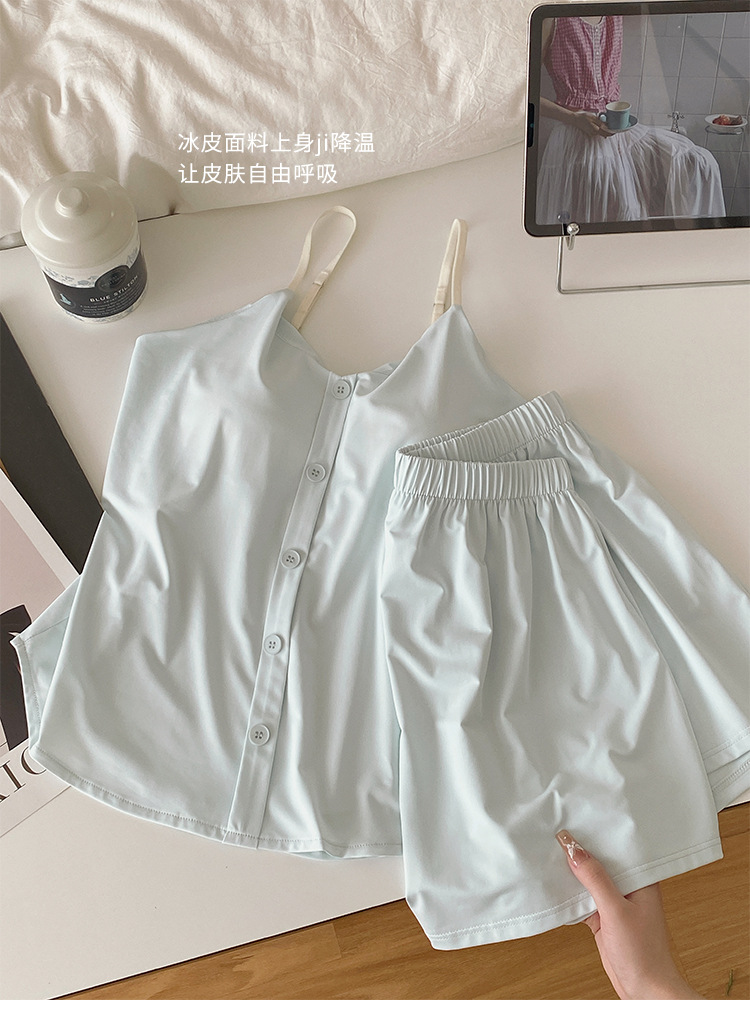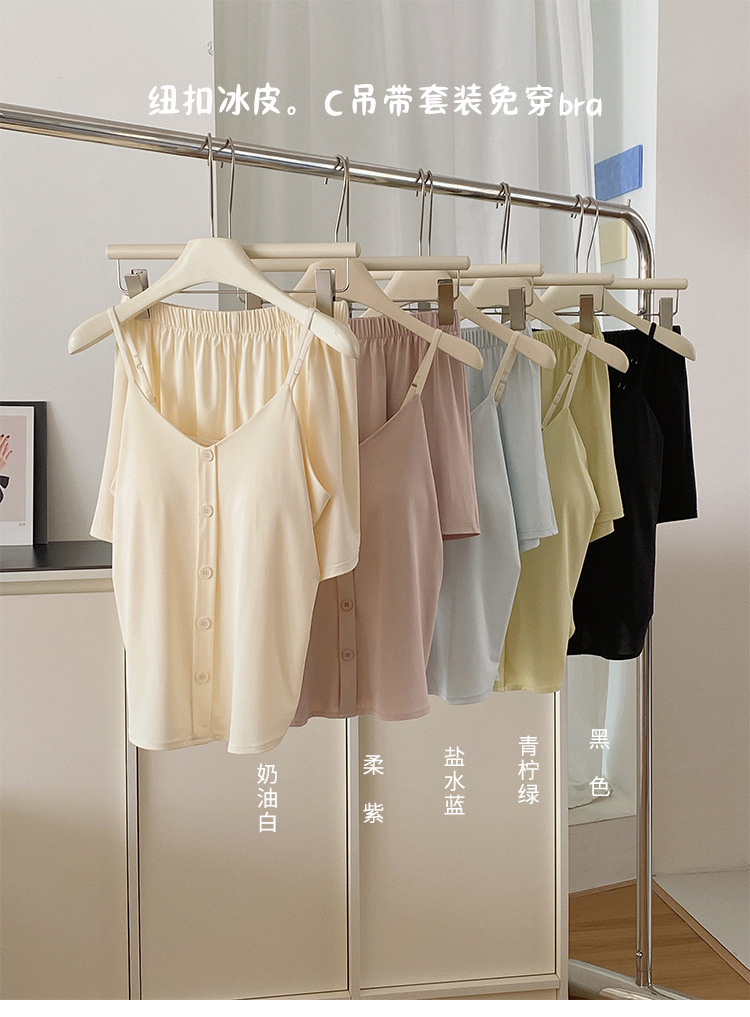 绝啦‼️少女感【带胸垫纽扣冰皮吊带家居服】纯欲风真滴越穿越心动😘清凉高舒适度🧊 大大提升宅家幸福感!