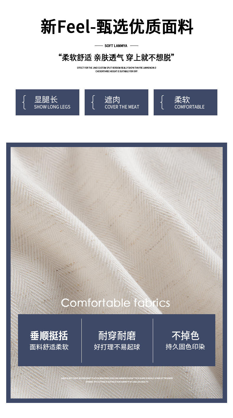 面料成分:莱赛尔61.5%+粘纤36%+锦纶0.9%+亚麻1.6%