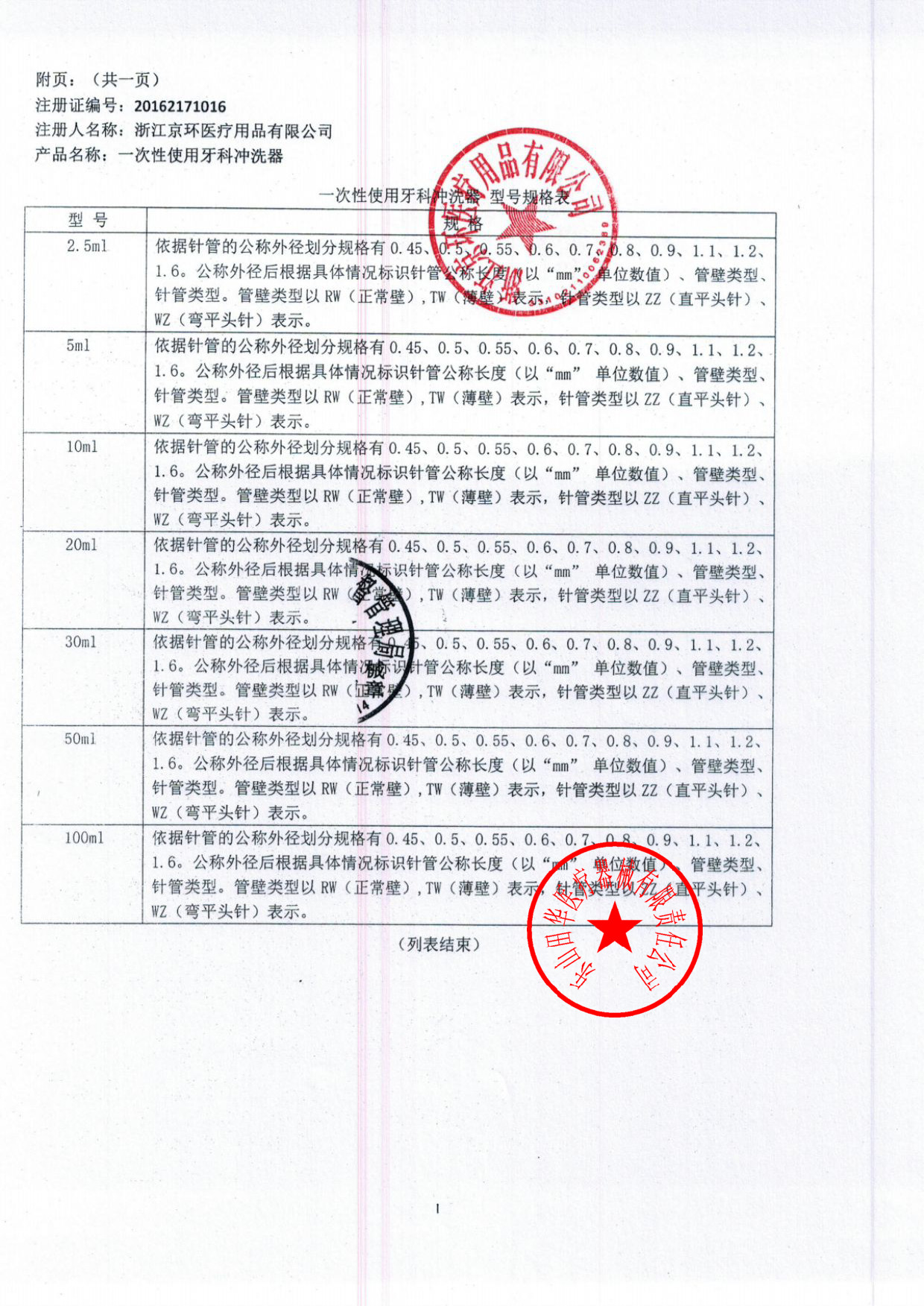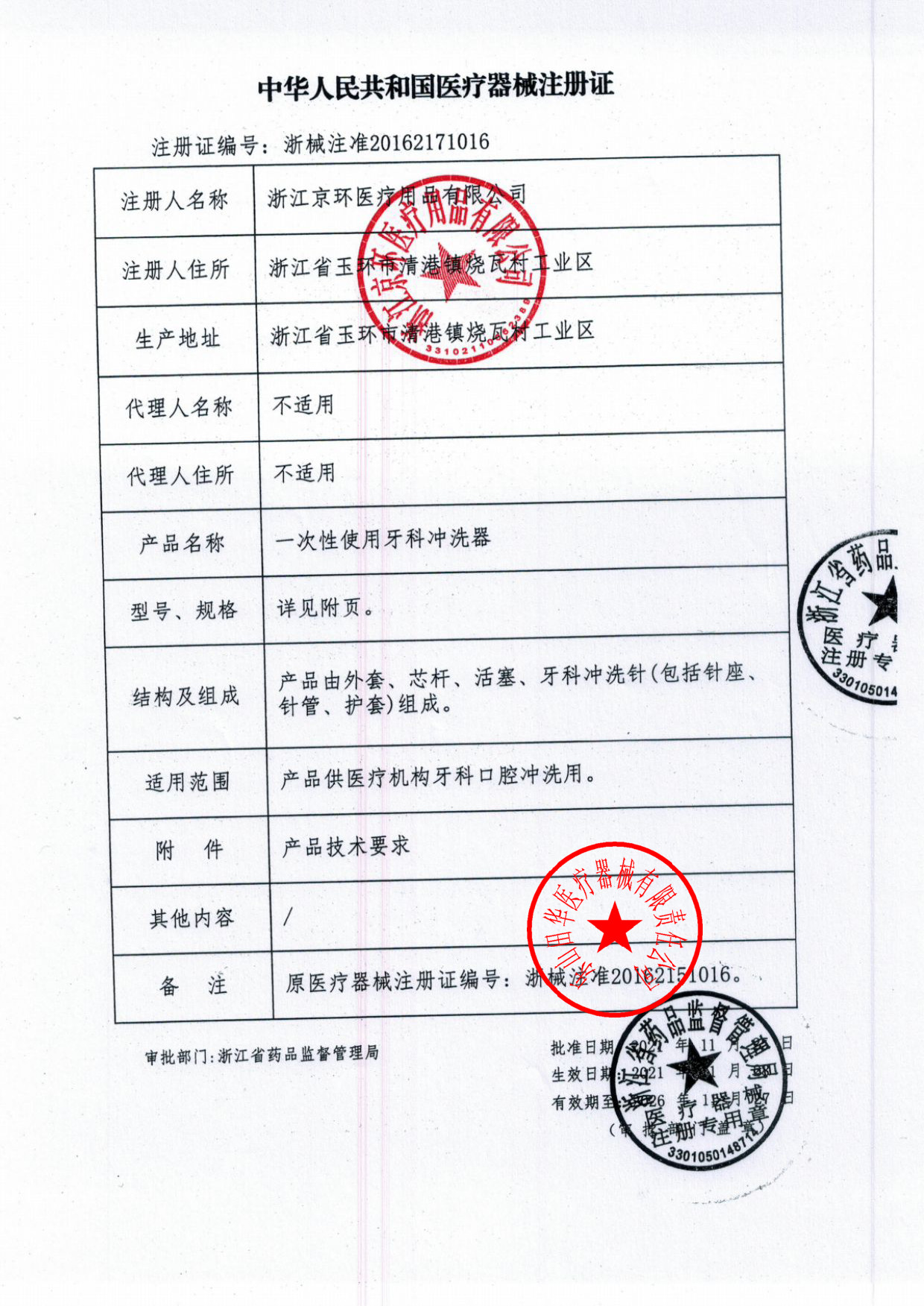 注册证号:浙械注准20162171016