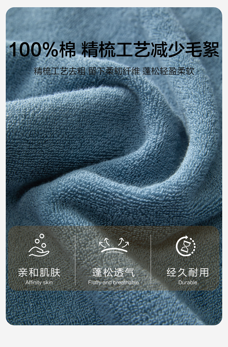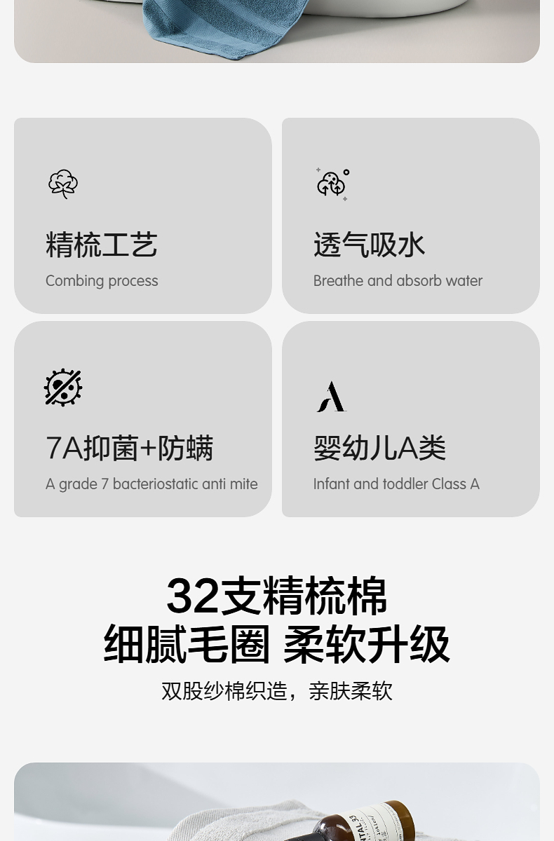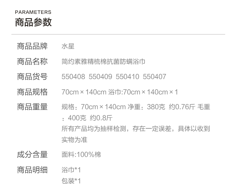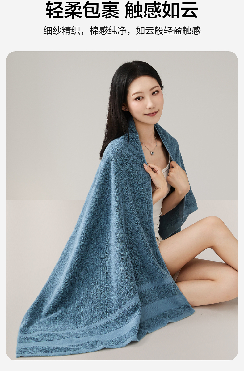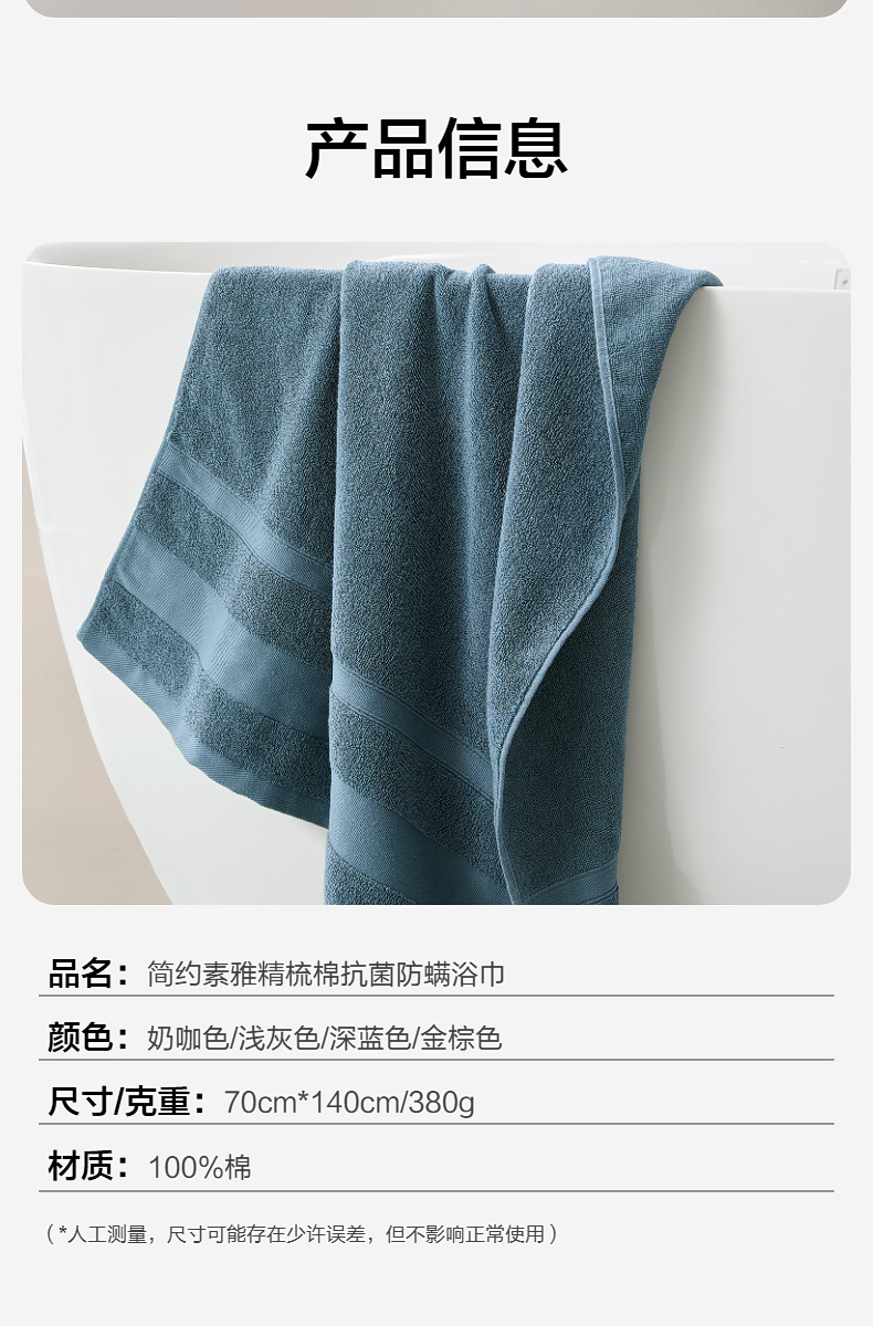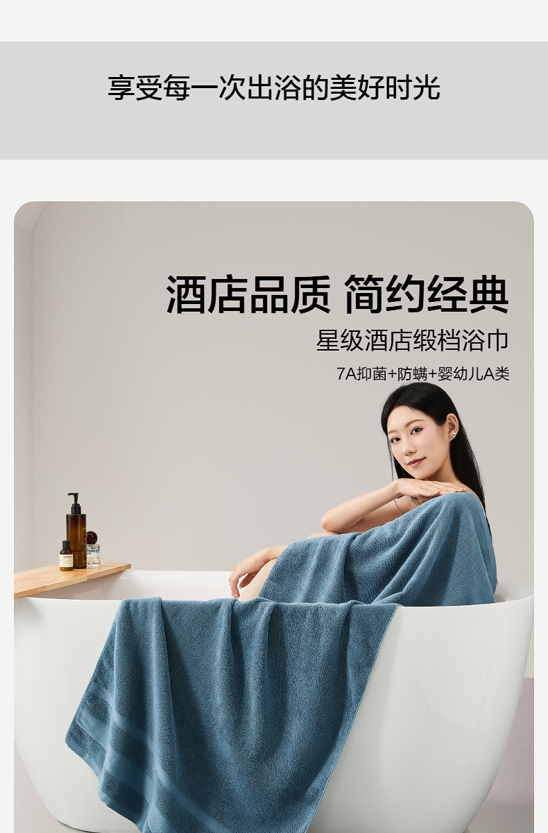 水星家纺 精梳棉抗菌防螨浴巾70×140cm 细纱精织 7A级抑菌 48小时发货