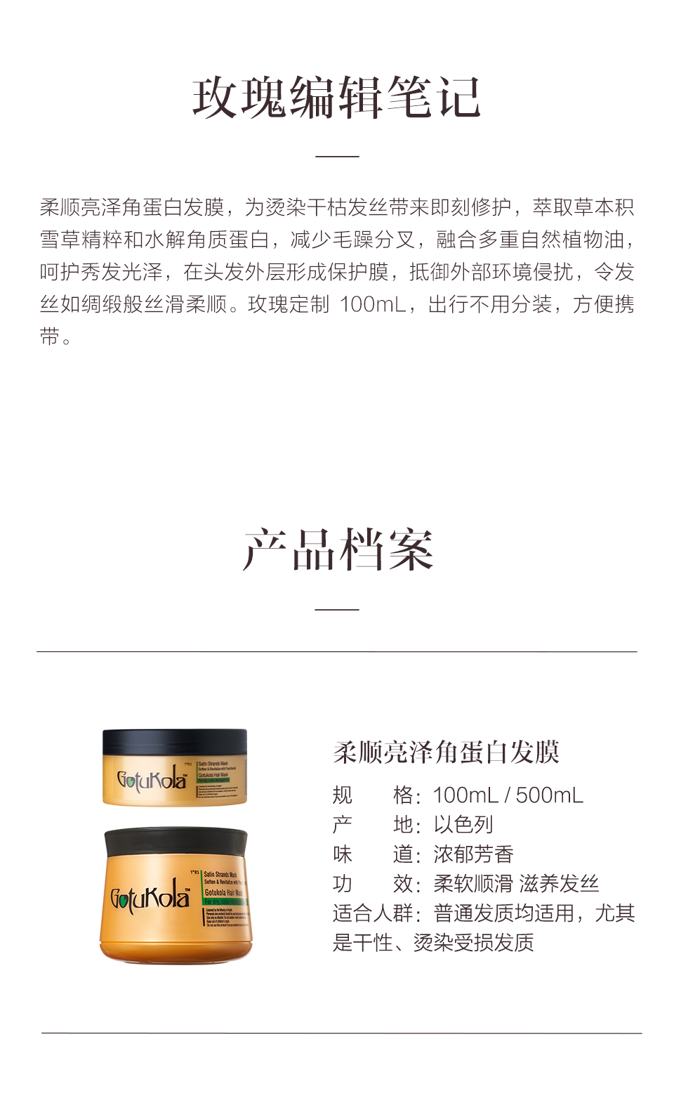 保税直发 GotuKola 柔顺亮泽角蛋白发膜100mL