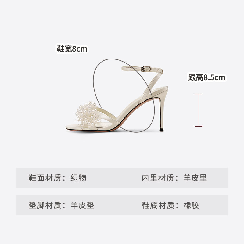 Westory2025年夏季高跟圆头珍珠凉鞋W25BG62771