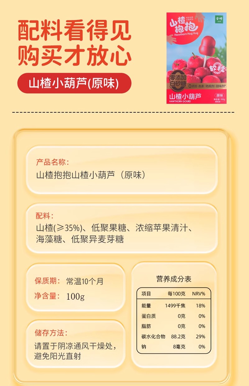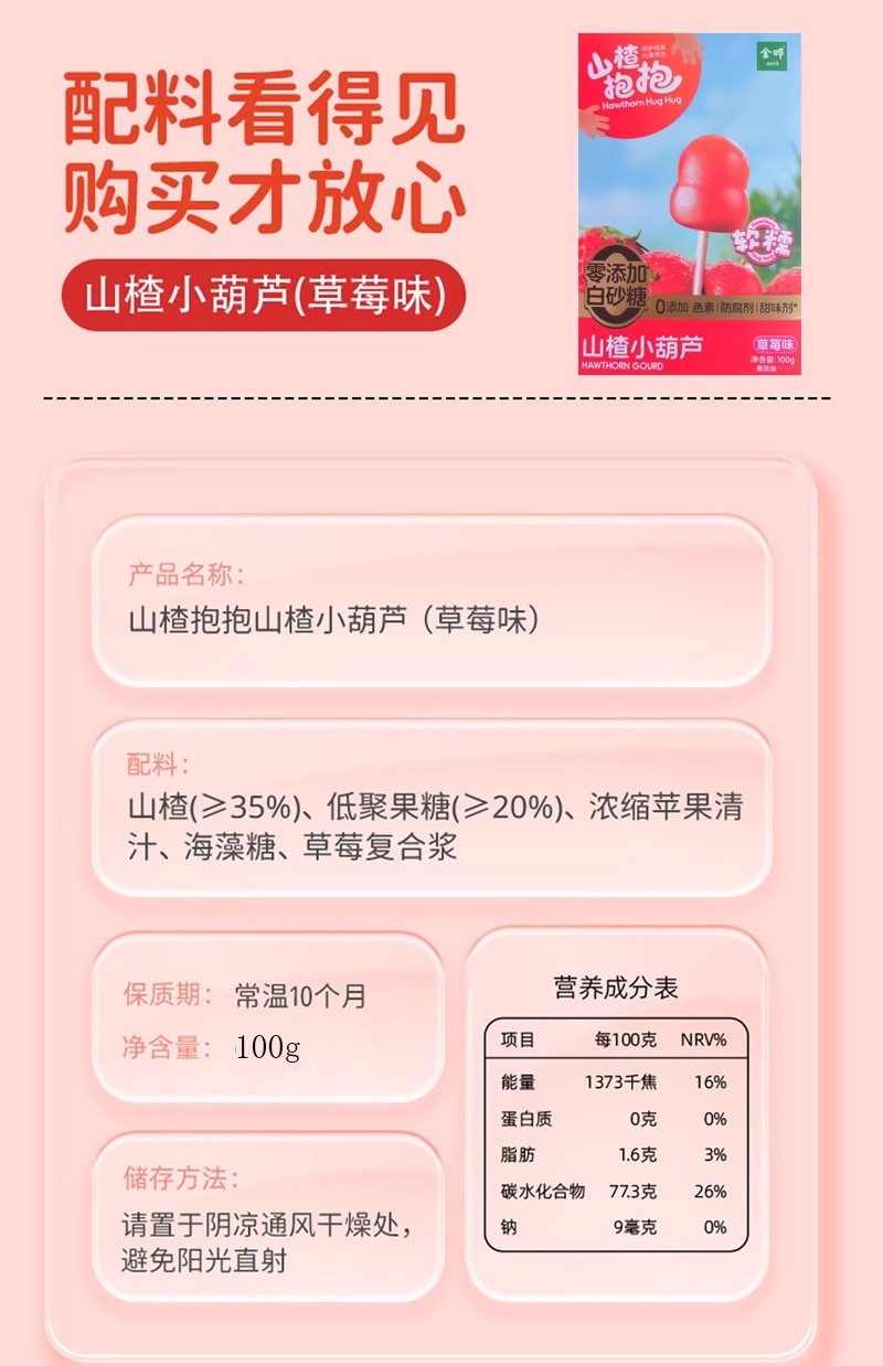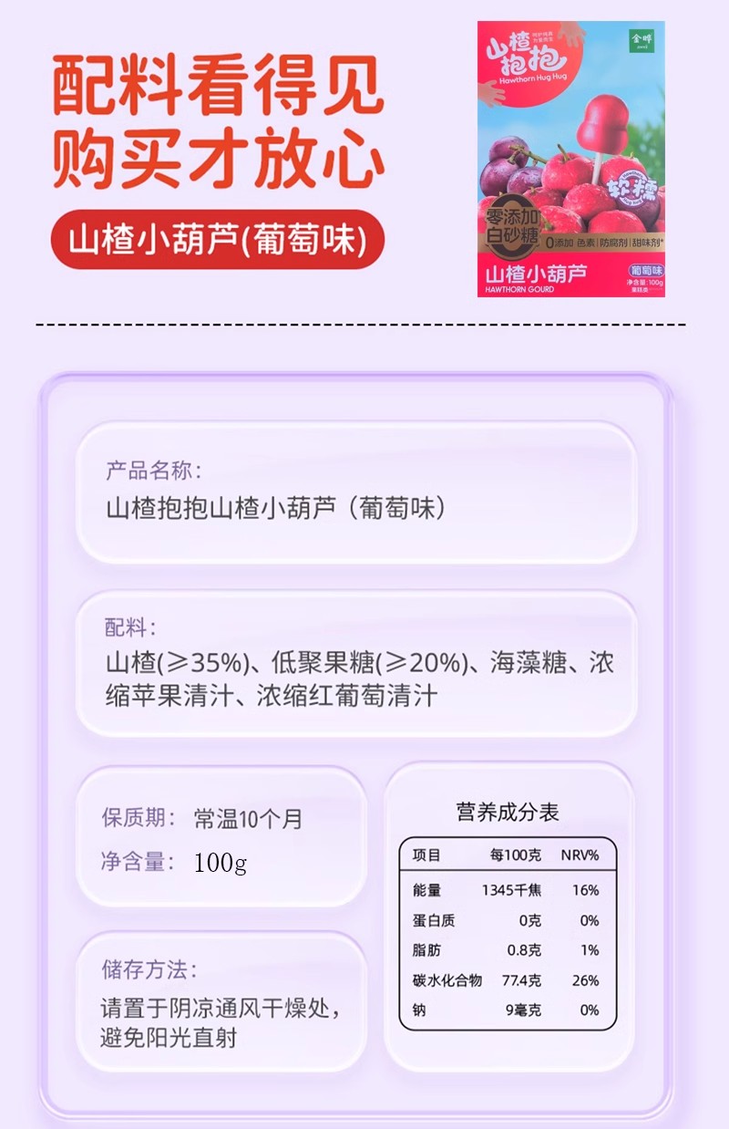金晔山楂抱抱 山楂棒 小葫芦山楂条儿童休闲零食葡萄草莓原味100g