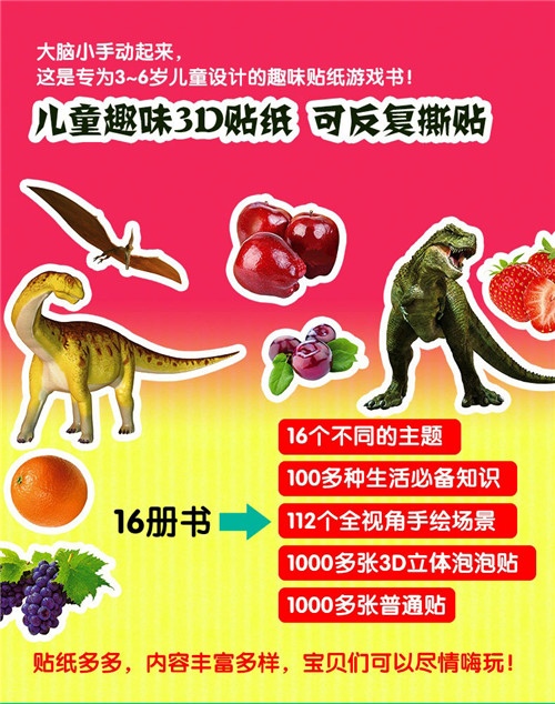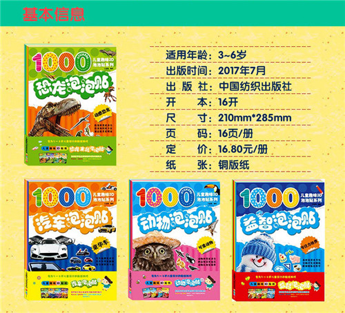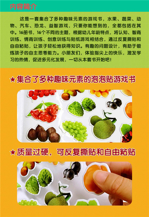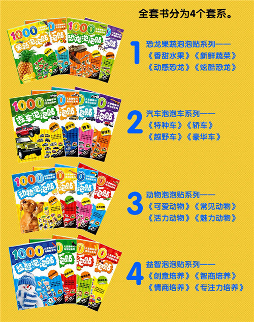 动物泡泡贴:全4册 泡泡贴纸儿童立体贴画 3D动物贴纸书反复贴 2-3-4-5-6岁宝宝识动物小孩贴贴画粘贴画