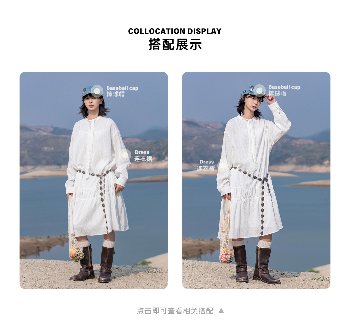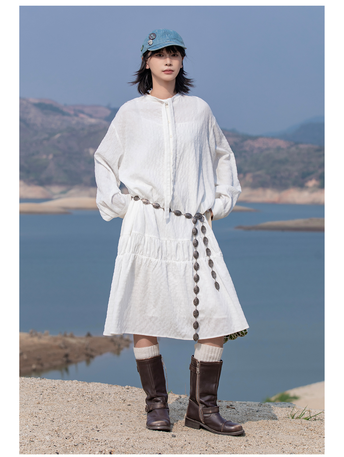 早乙女惠子saotome/STMQZ252322/小立领抽褶长袖长裙