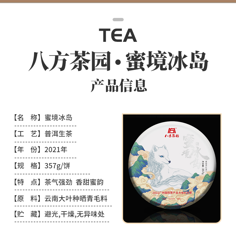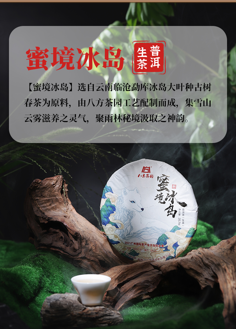 八方茶园 2021年蜜境冰岛357克勐海茶叶大叶种古树大雪山普洱生茶