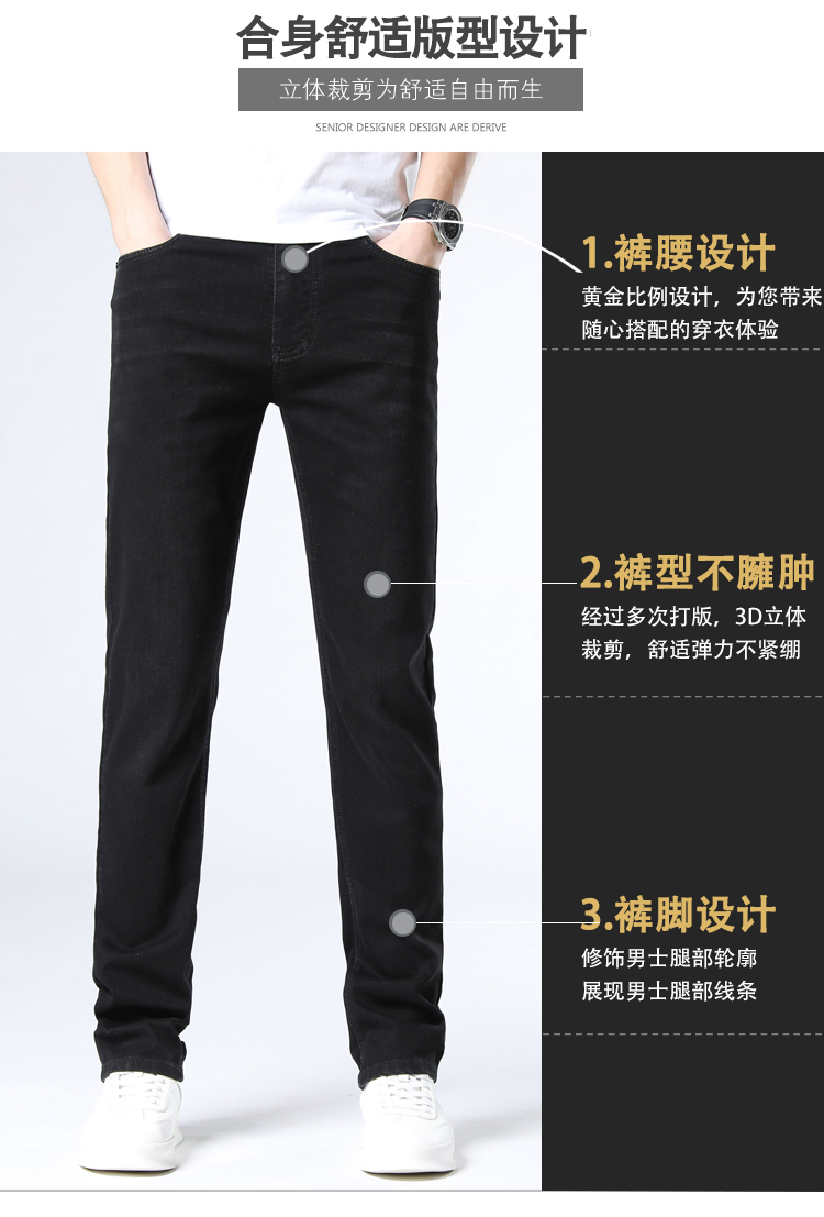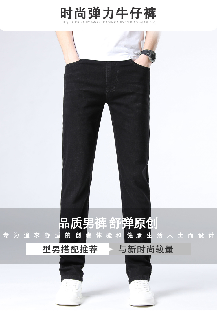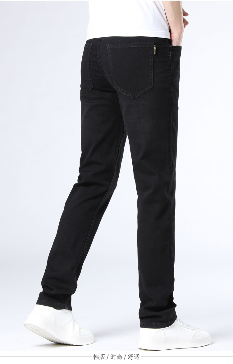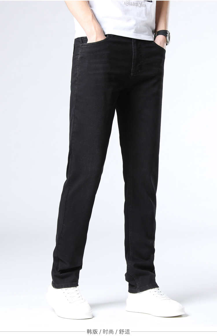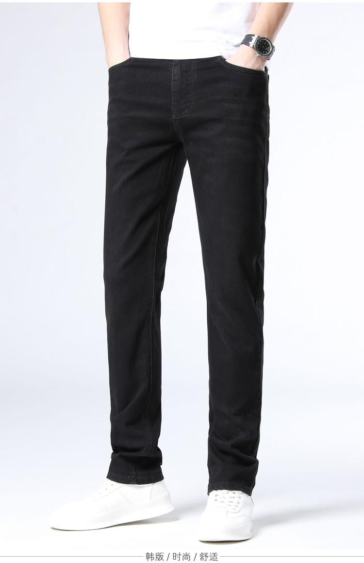 赤兔嗨购男装宽松直筒弹力不束缚牛仔裤2024年秋冬新款水洗黑色蓝色长裤宽腿