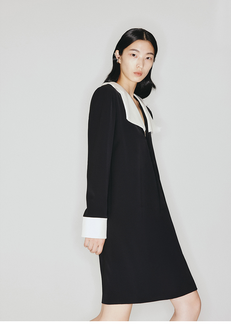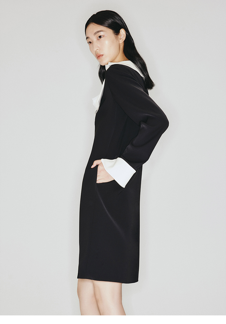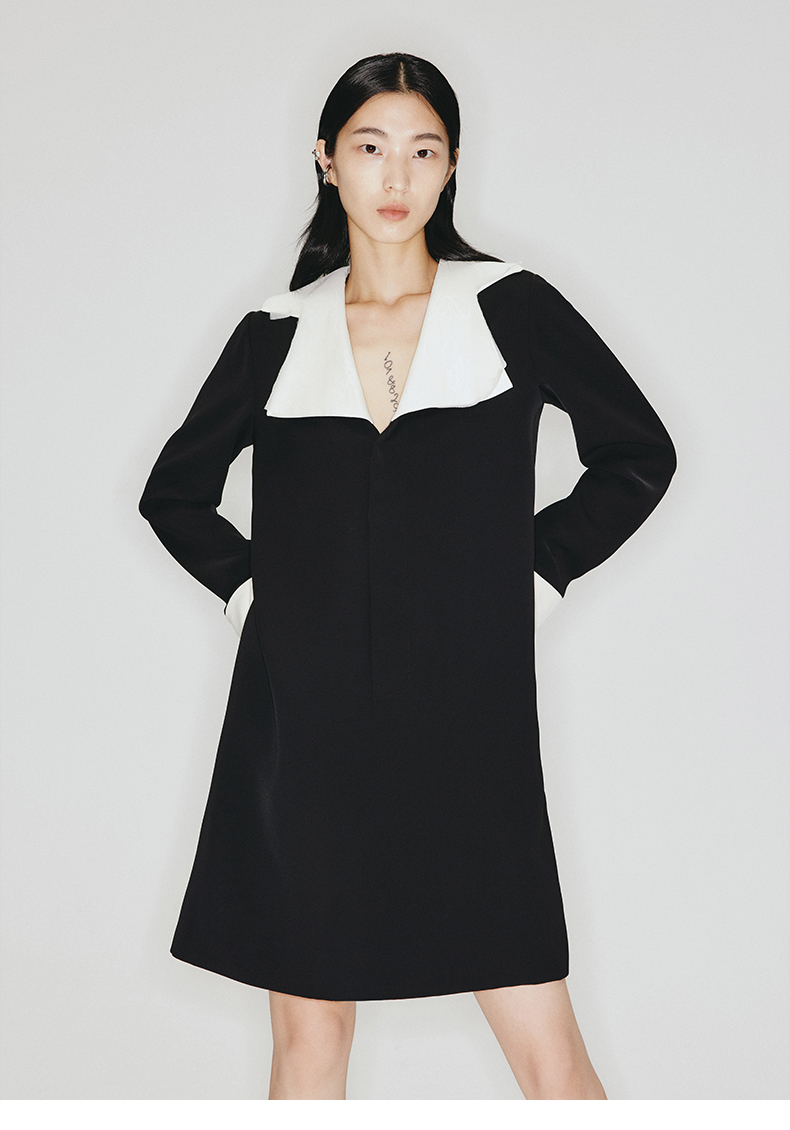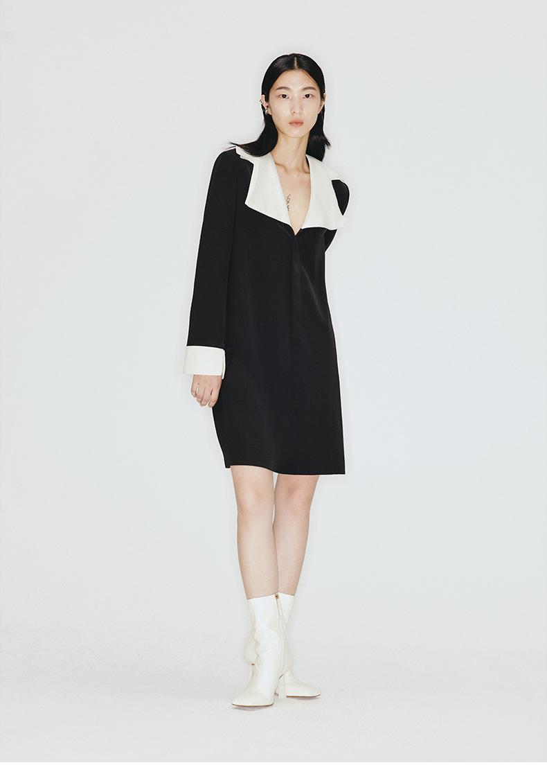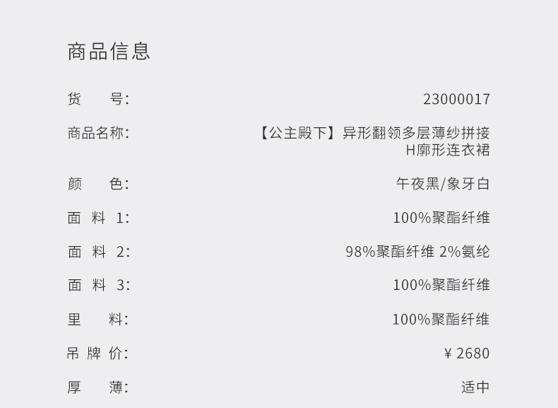 【公主殿下】异形翻领多层薄纱拼接H廓形连衣裙/23000017