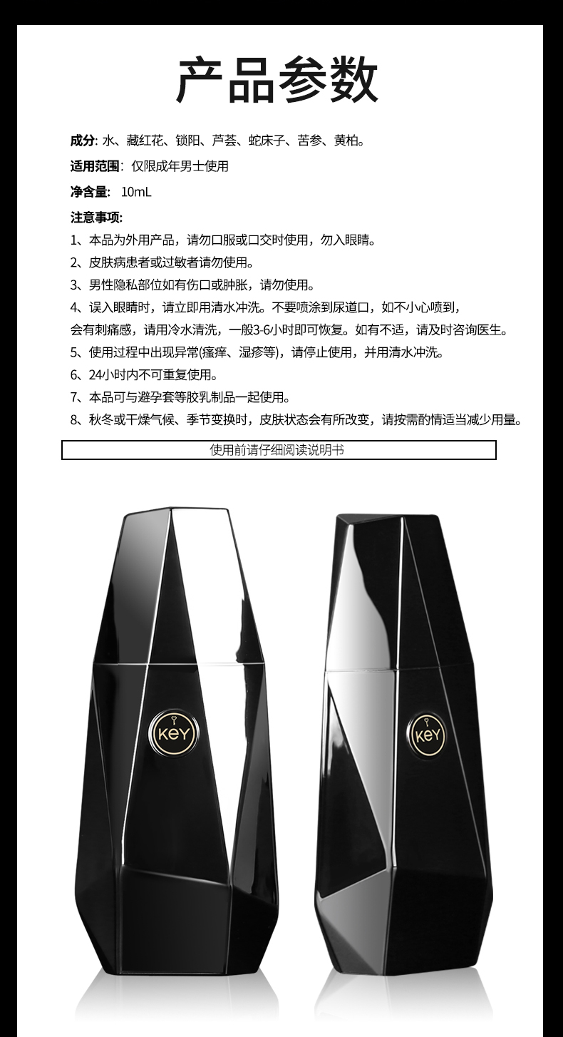 KEY能量石延迟喷雾 key男性外用延迟喷剂男用加强版环湿巾成人情趣用品 三代1瓶装10ml 喷剂