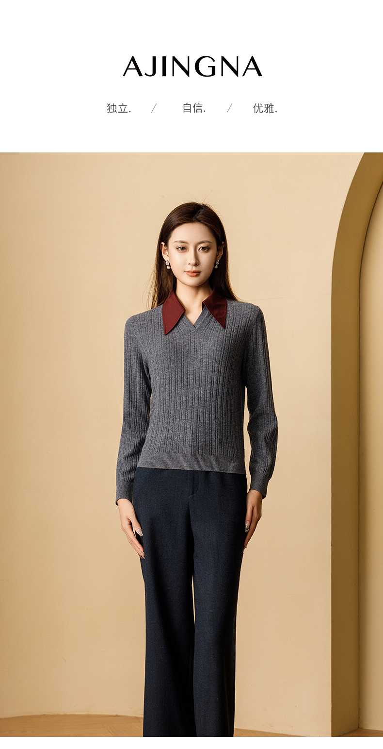 【商场同款】阿菁娜2024冬季新款格雷系轻商务衬衫领毛衫A29D301033