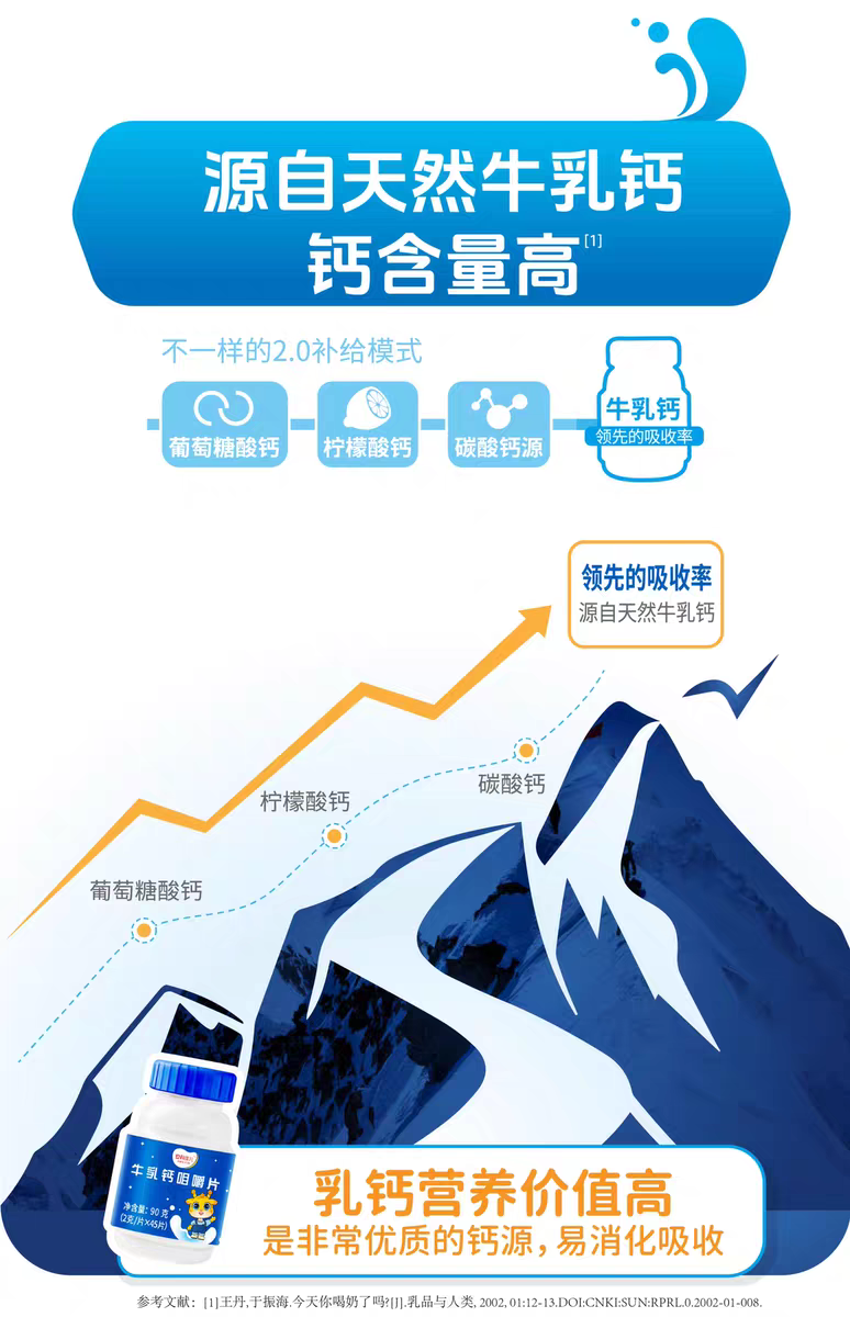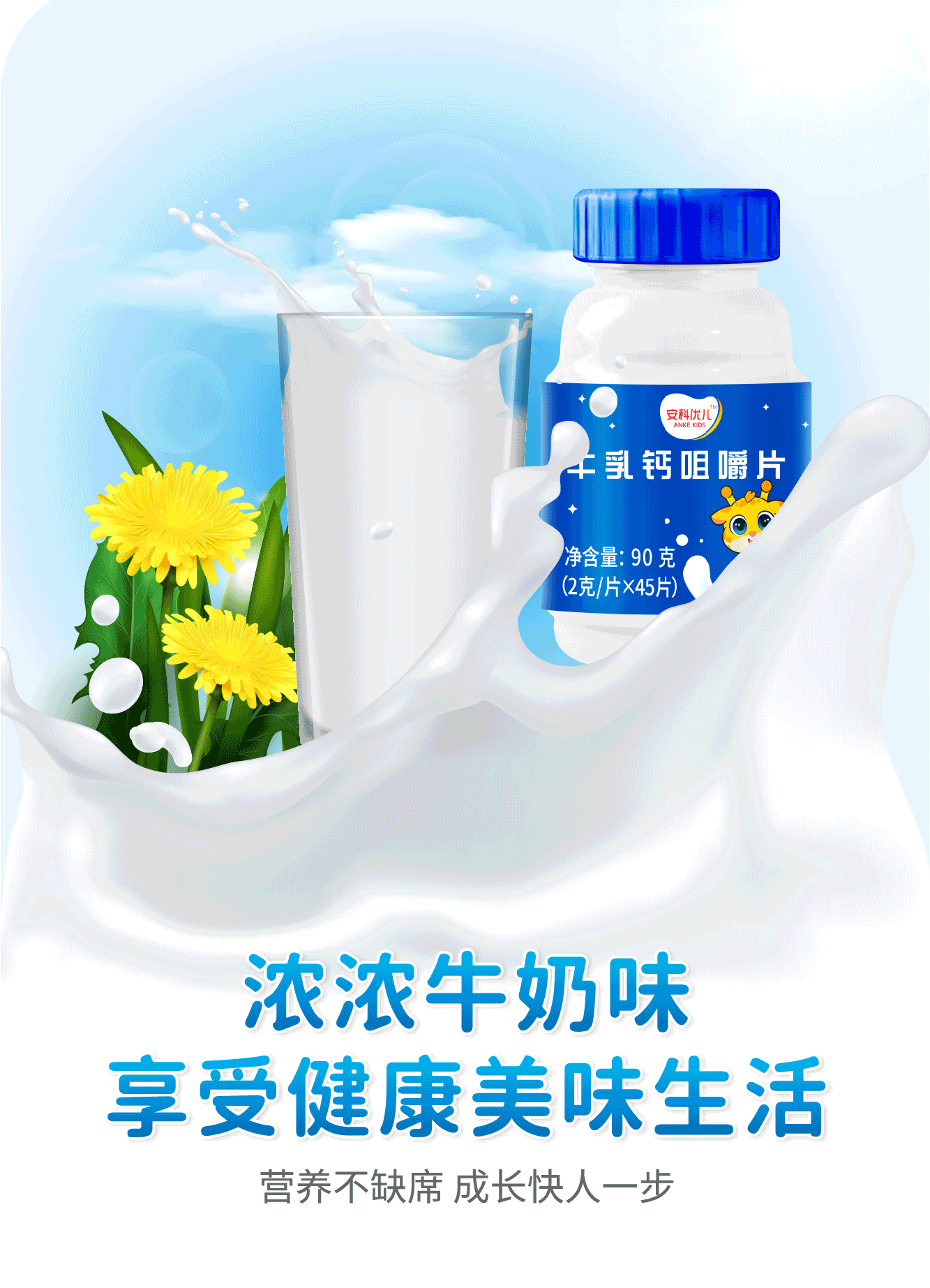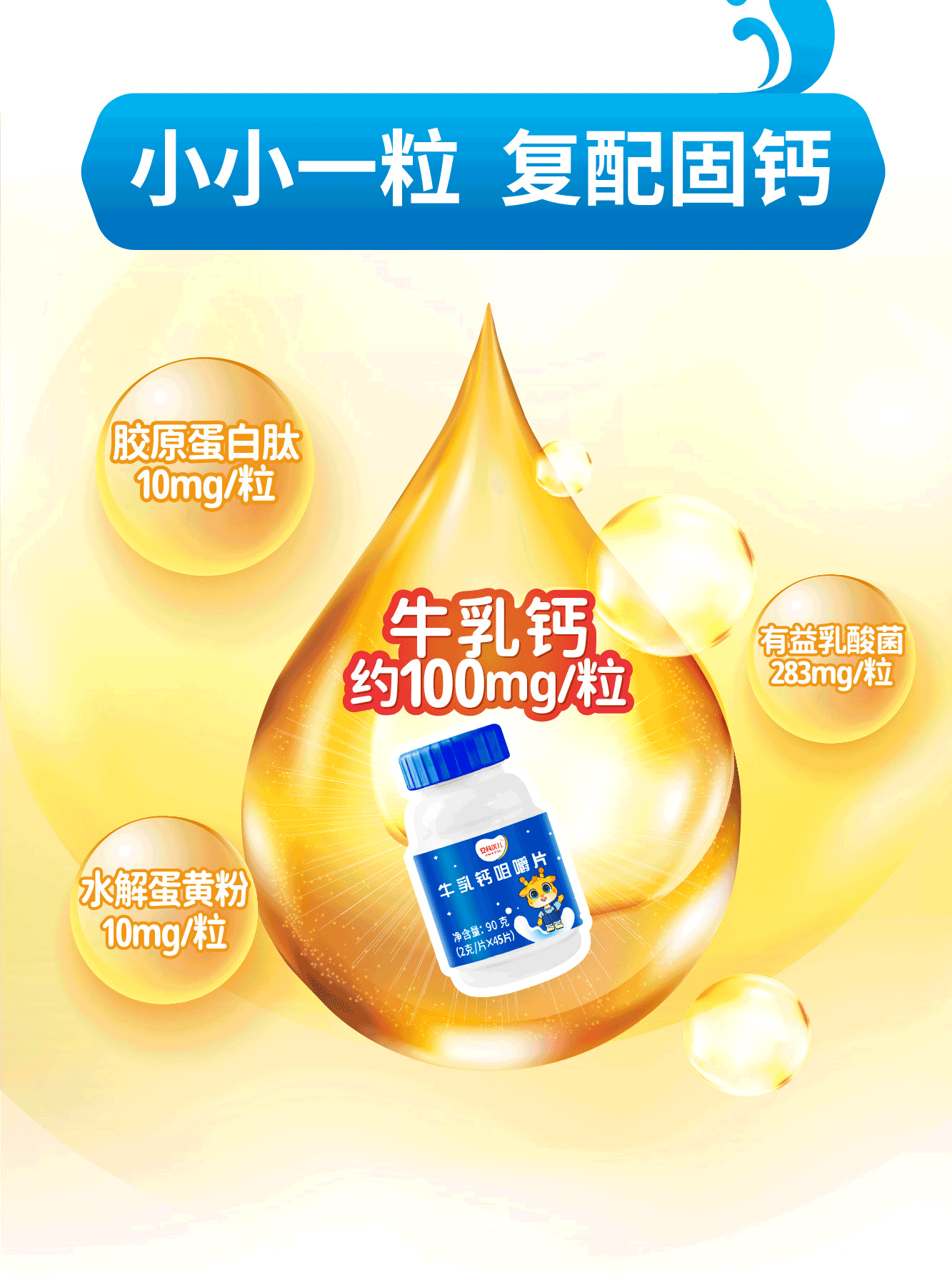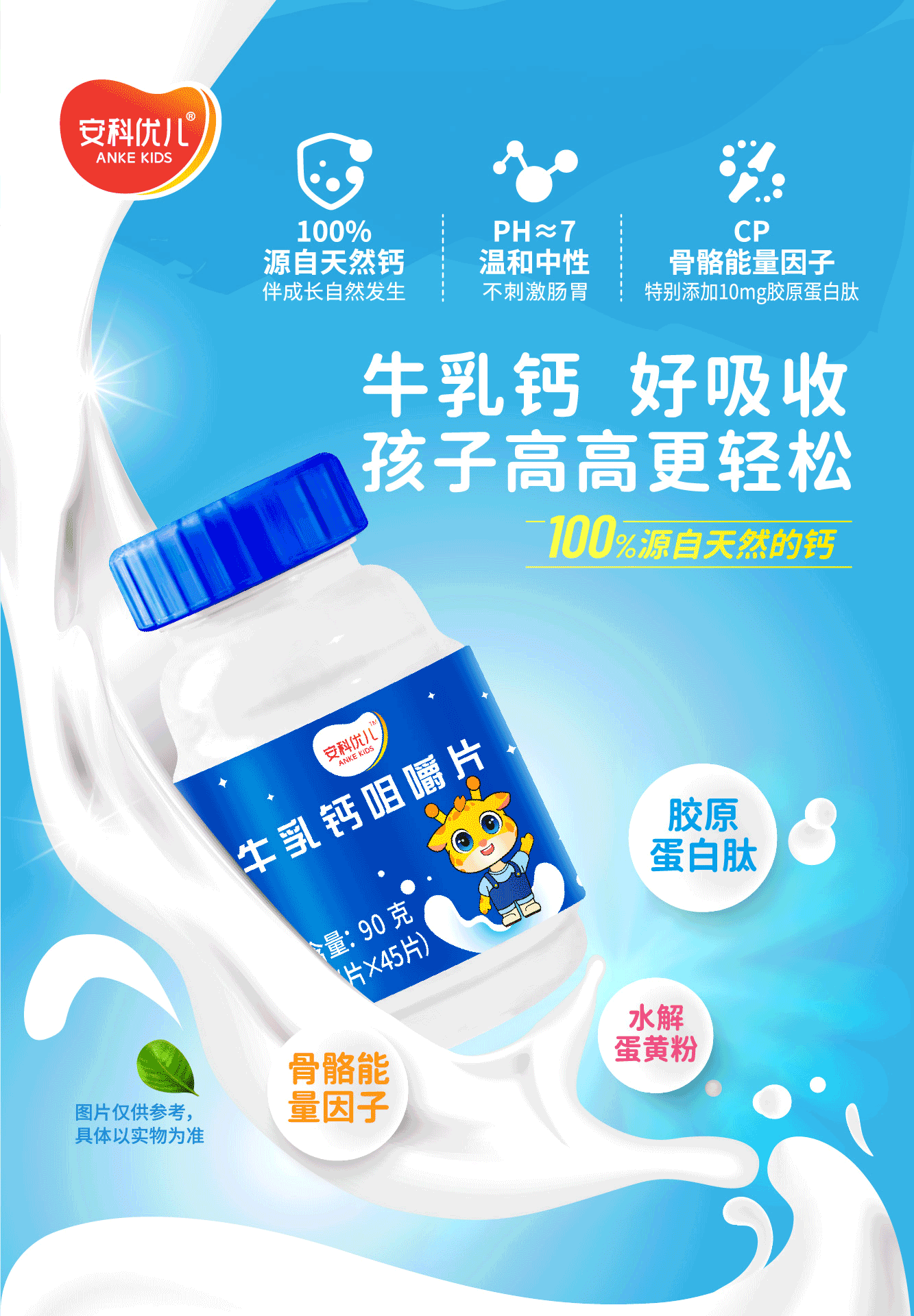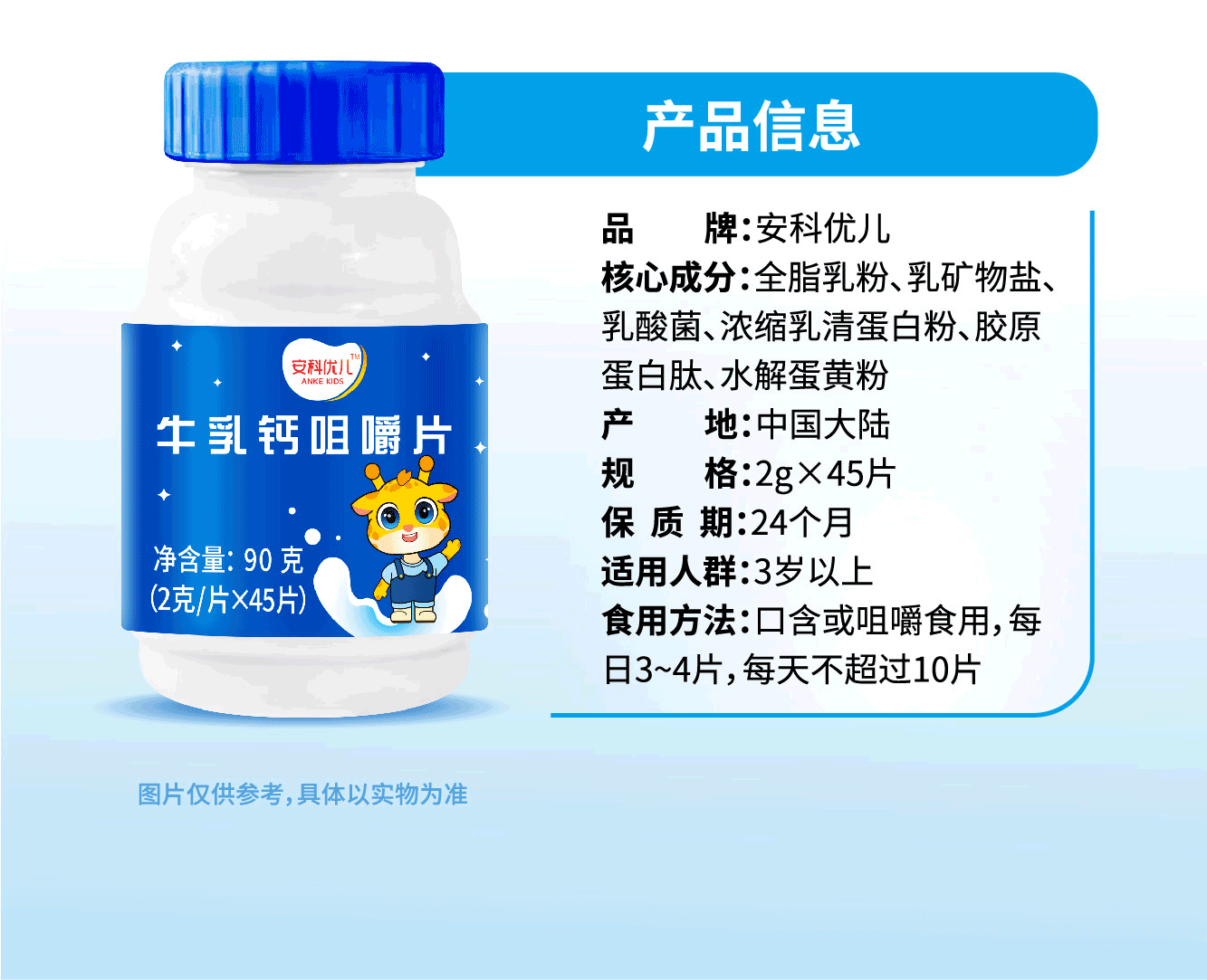 牛乳钙 咀嚼片儿童钙片 45片宝宝补钙含乳矿物盐 水解蛋黄粉 钙磷比2:1 压片糖果