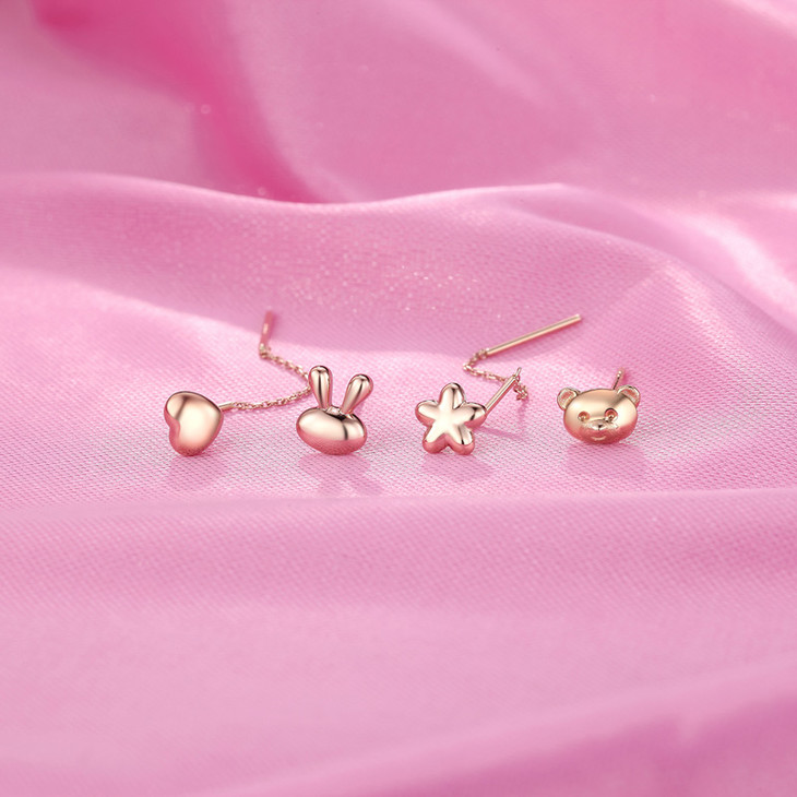 潮宏基 FUN趣兔熊18K金玫瑰金耳线女彩金耳钉耳环女 L EEK30007884