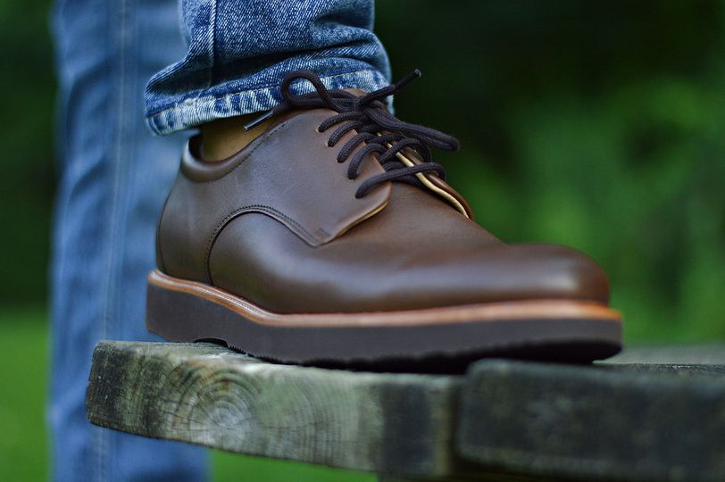 限时特价——经典款葡萄牙原产手工制作高品质舒适男士德比商务休闲皮鞋褐色M2100(超轻款)