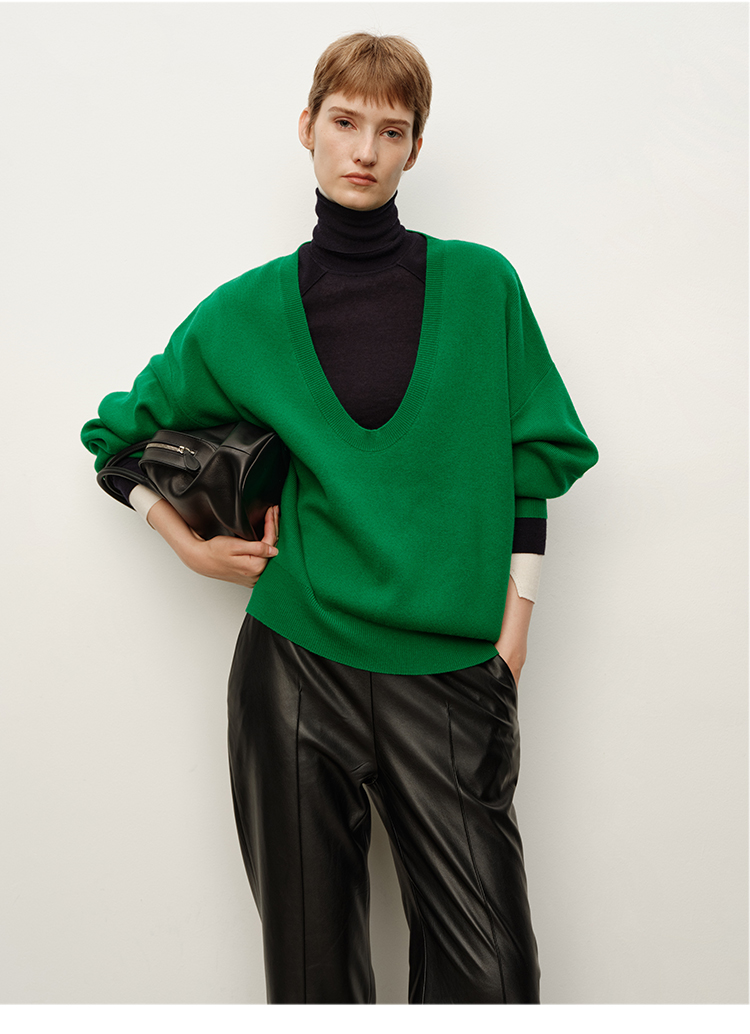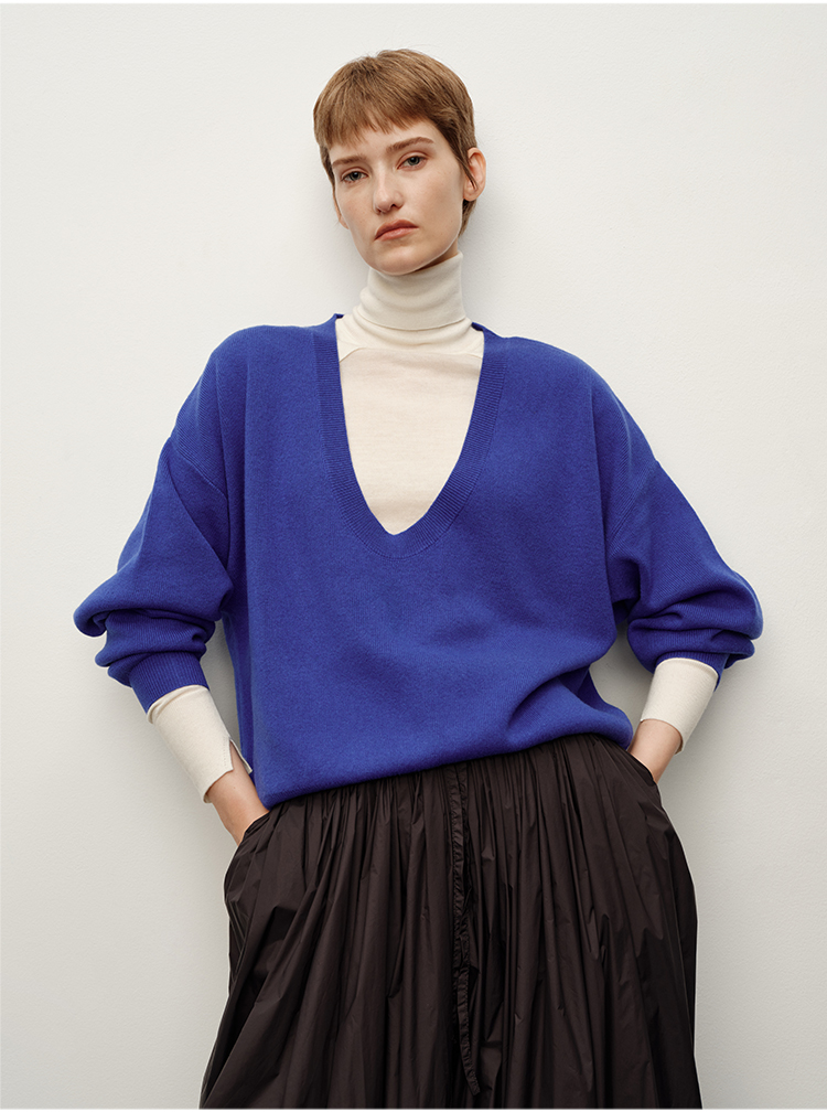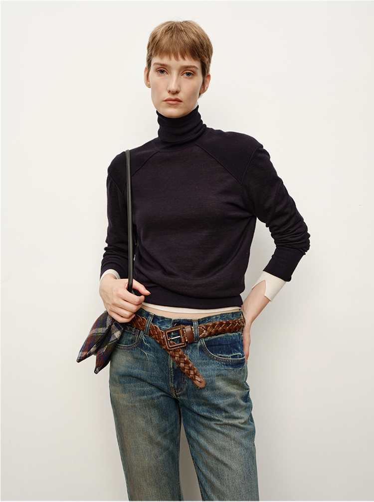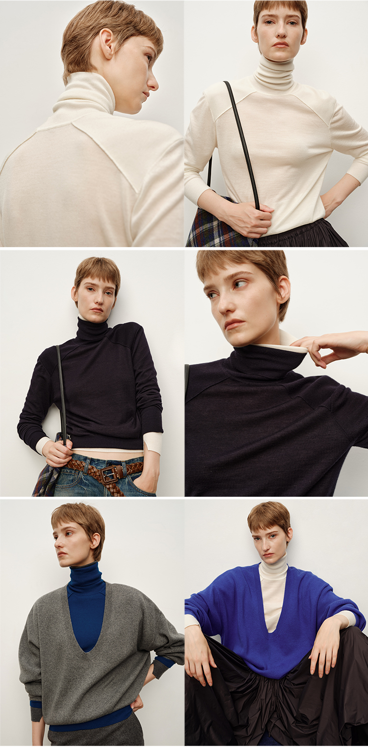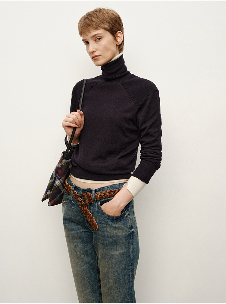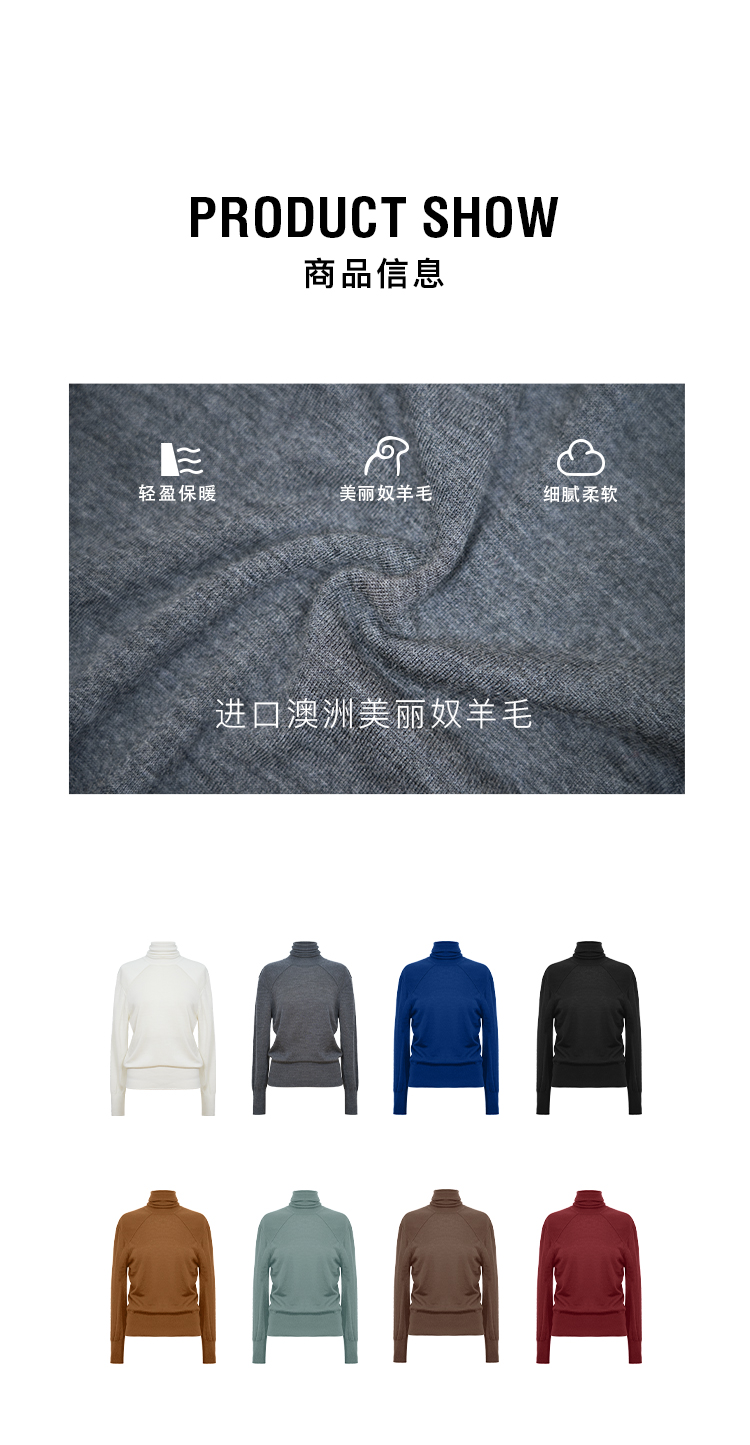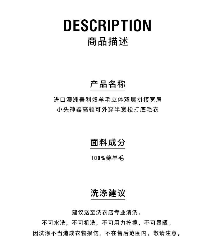 HIDEMI 进口澳洲美利奴羊毛立体双层拼接宽肩小头神器高领可外穿半宽松打底毛衣