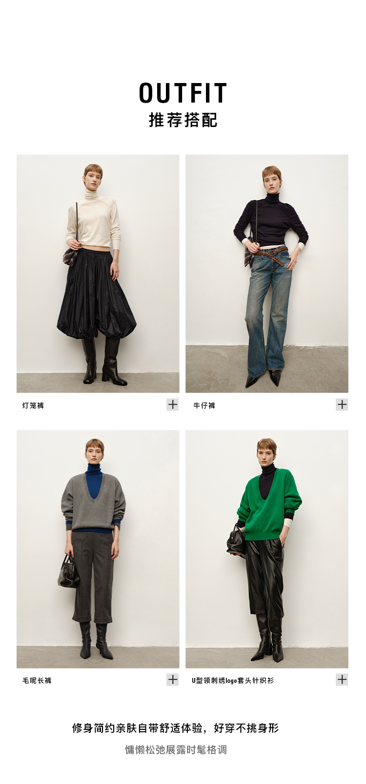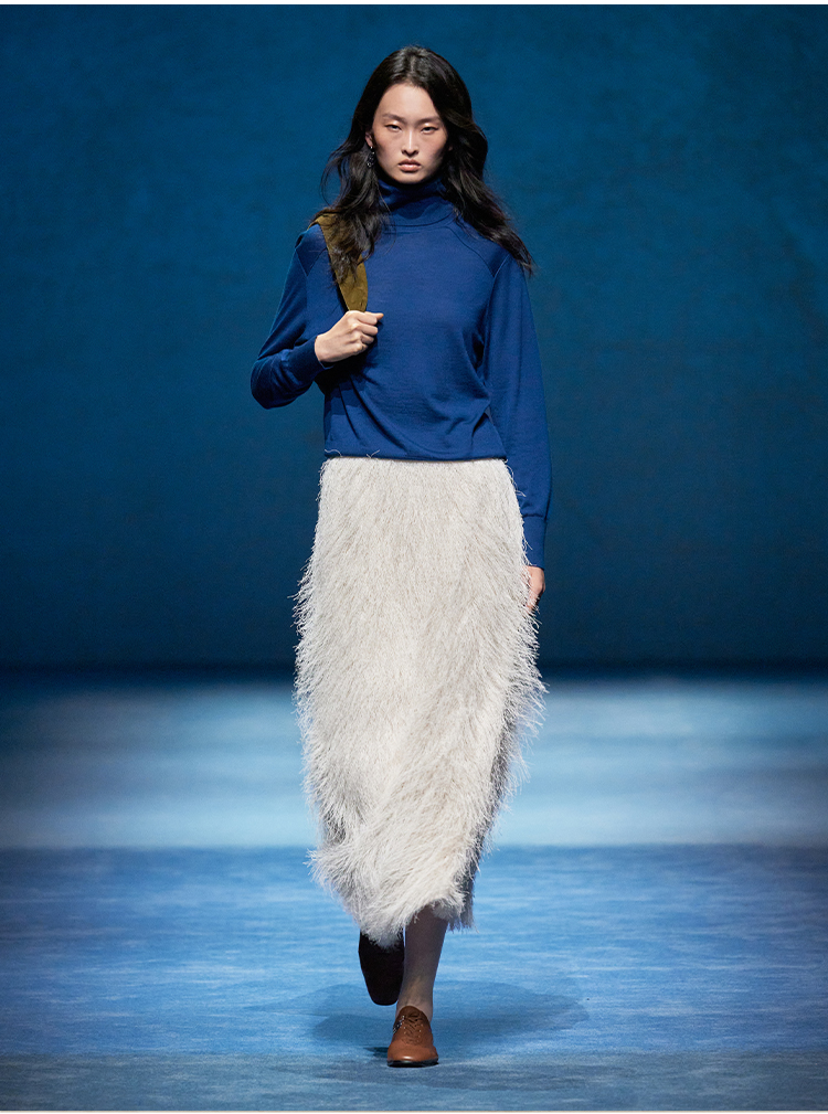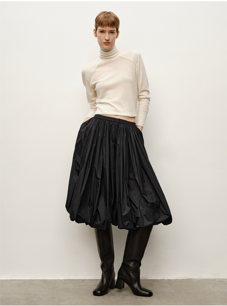 HIDEMI 美利奴羊毛简约设计感茧型套装 半高领毛衣/茧型半身裙