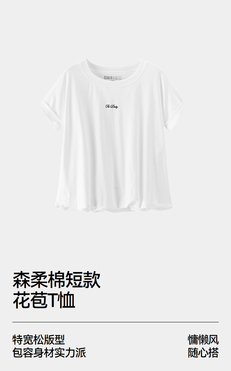 森柔|商场同款森马T恤女夏短款oversize花苞2026新款百搭慵懒上衣