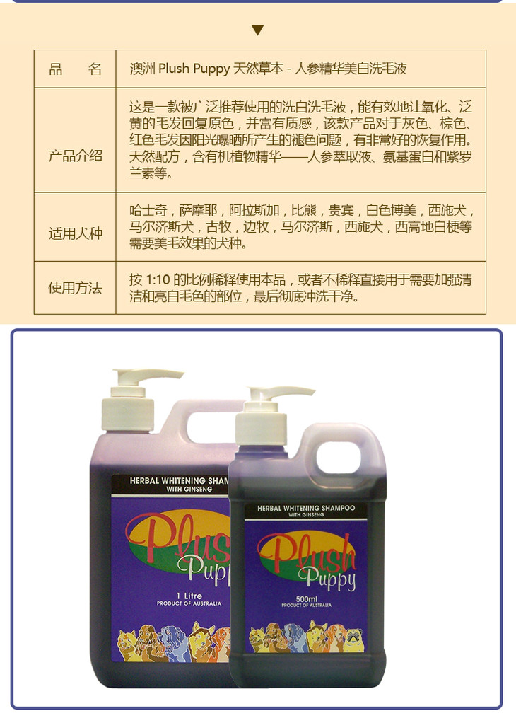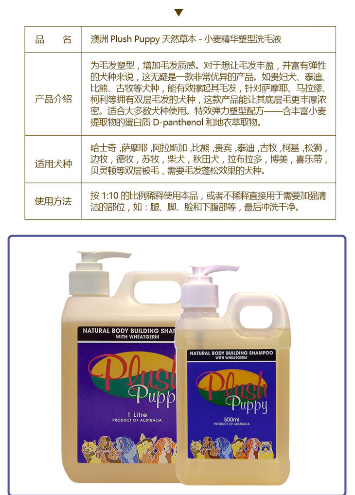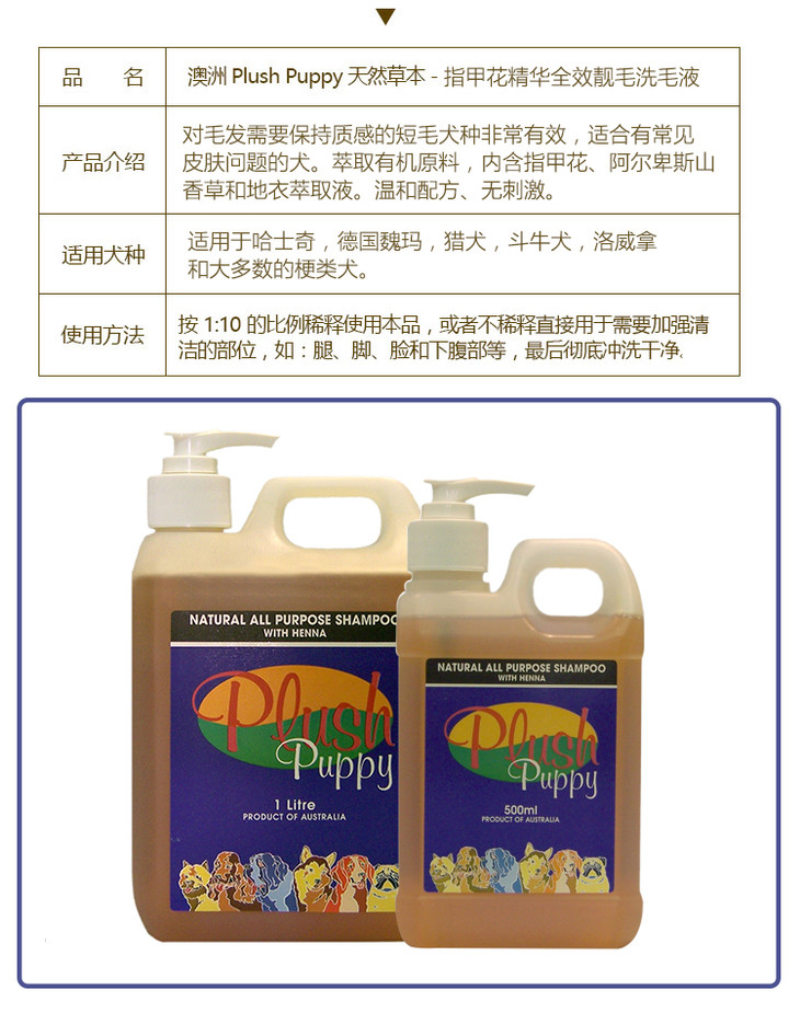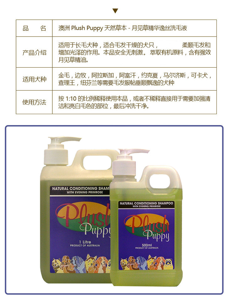 澳洲Plush Puppy小麦/月见草/人参/金车花/指甲花/丝蛋白/强效护毛/OMG顺毛喷/浴液护毛素