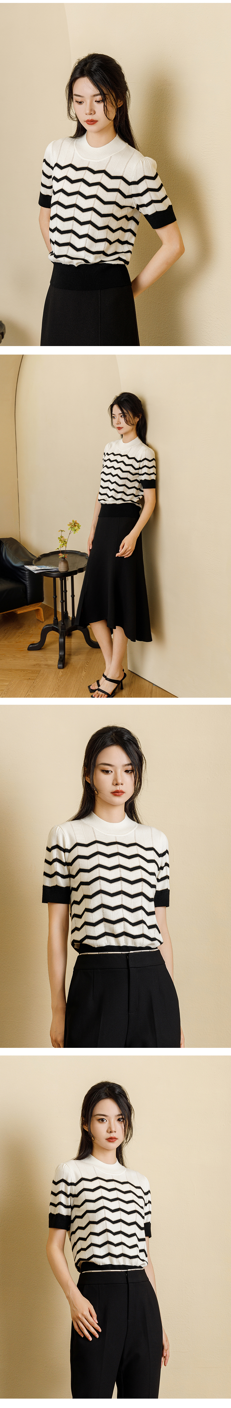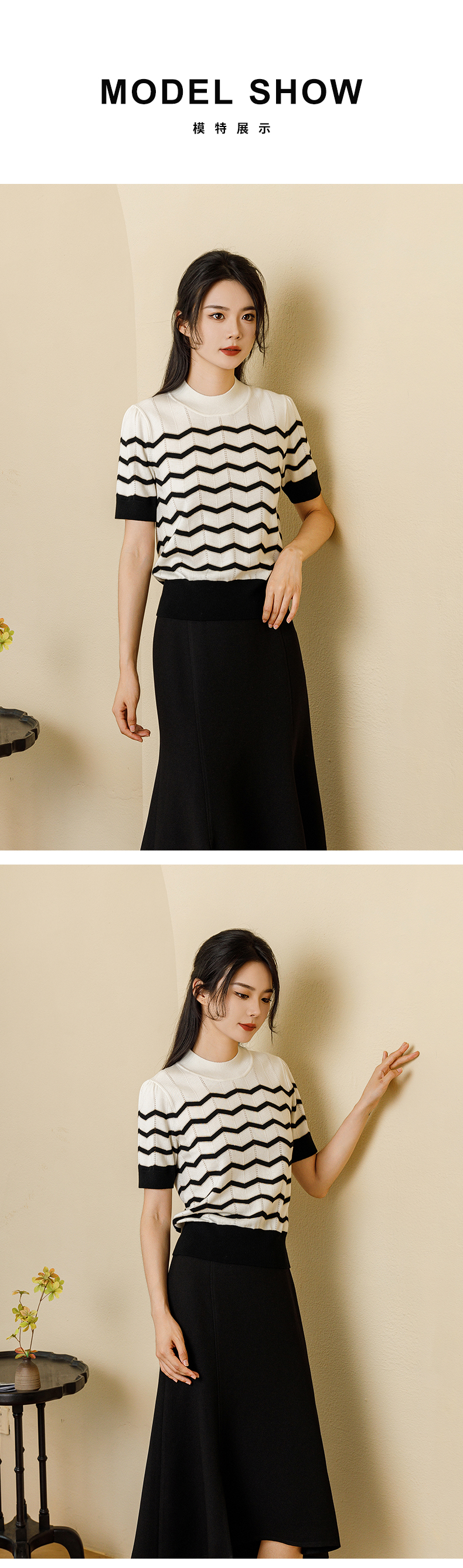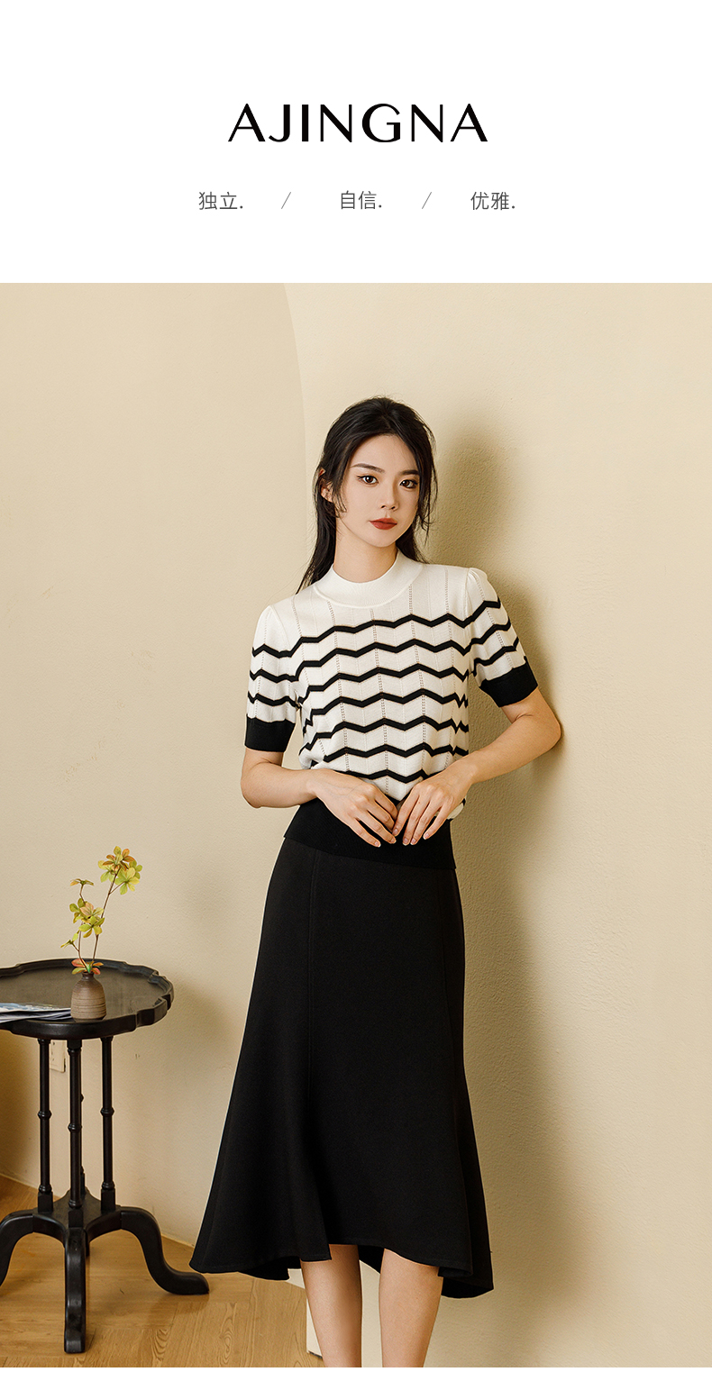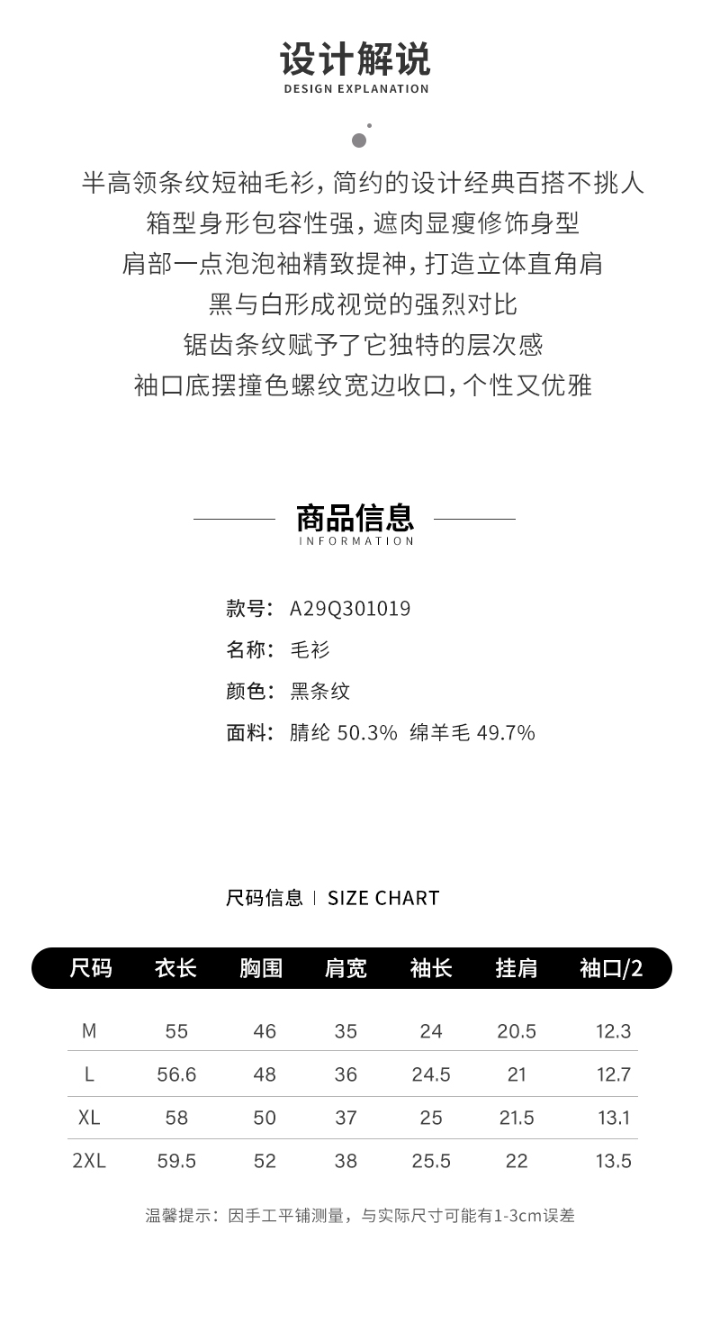 【商场同款】阿菁娜2024秋季新款半高领条纹短袖毛衫A29Q301019