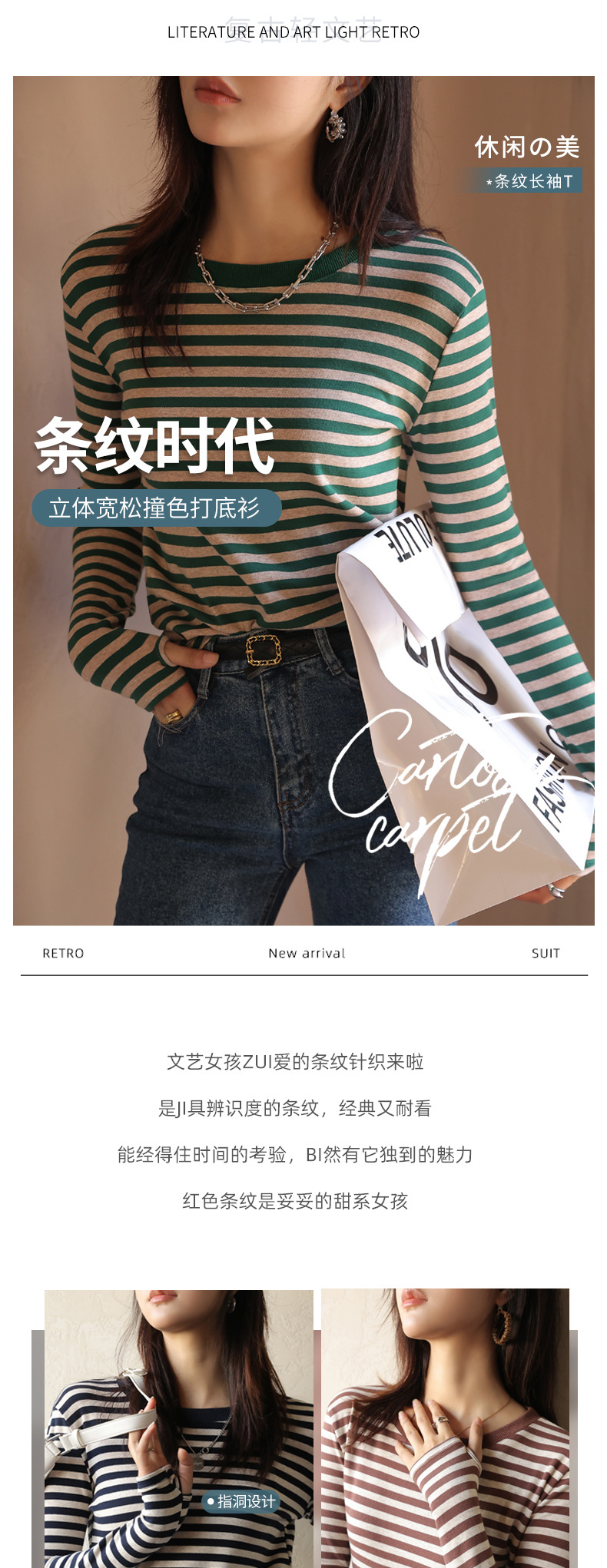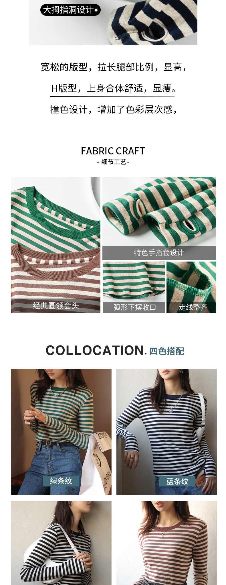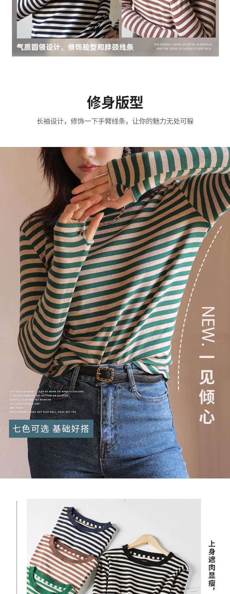 【79/2件】【立体撞色条纹T恤】春夏新品条纹T恤小衫 单穿打底百搭条纹视觉显瘦上衣
