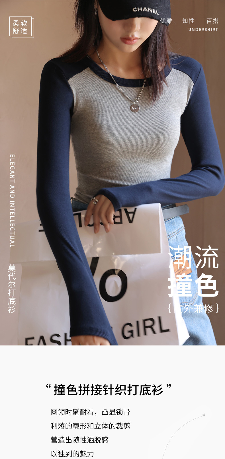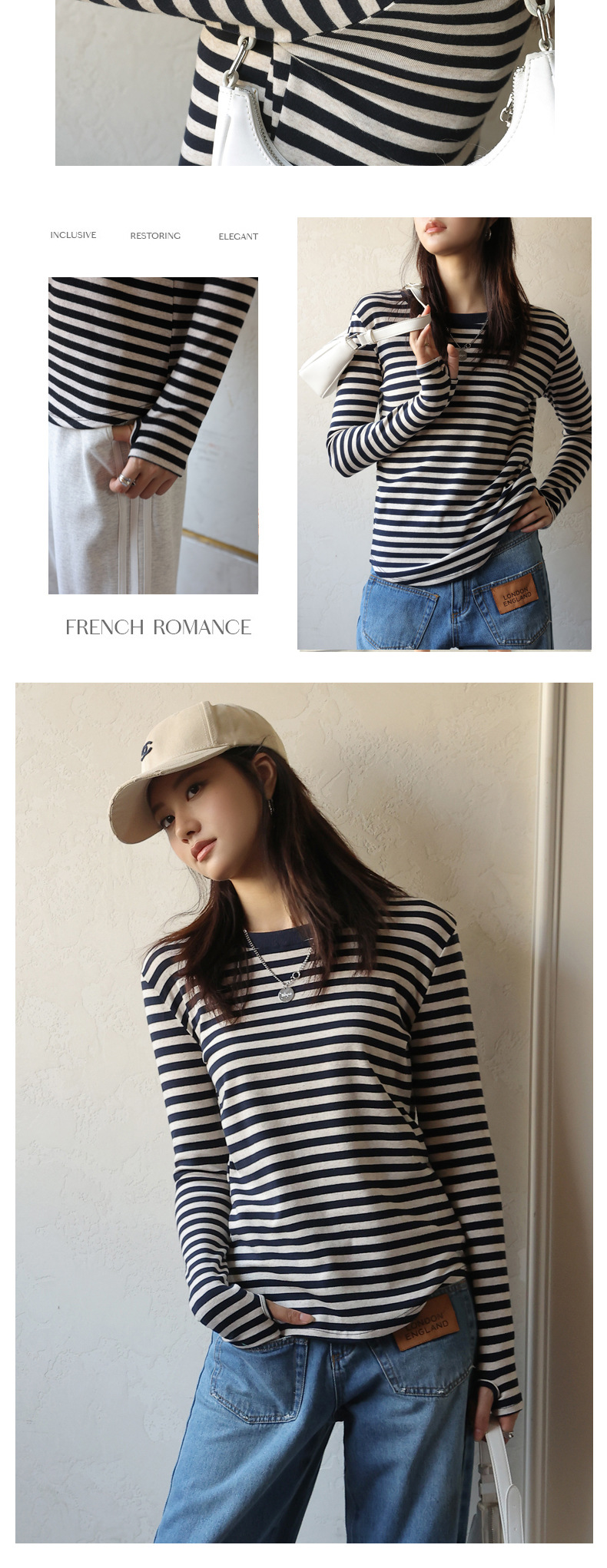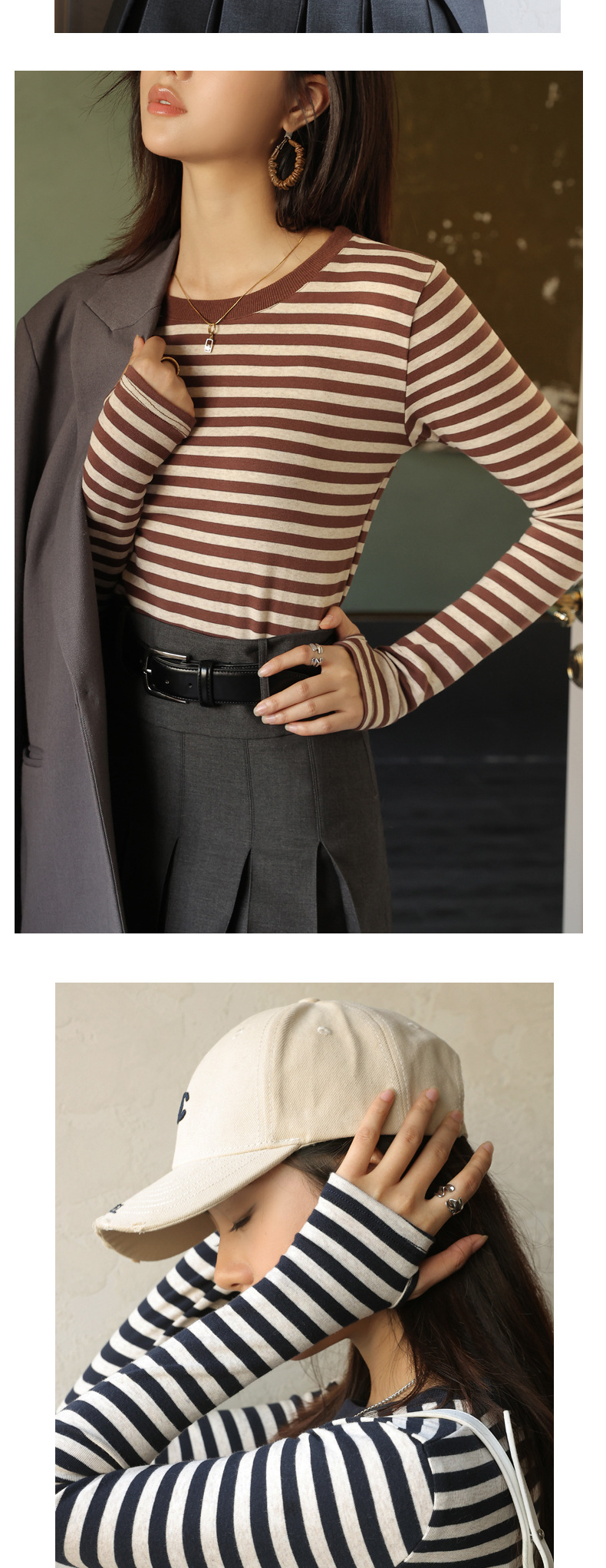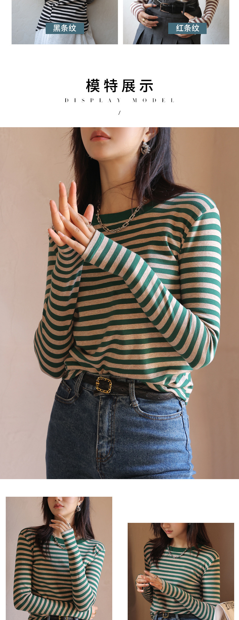 【79/2件】【立体撞色条纹T恤】春夏新品条纹T恤小衫 单穿打底百搭条纹视觉显瘦上衣