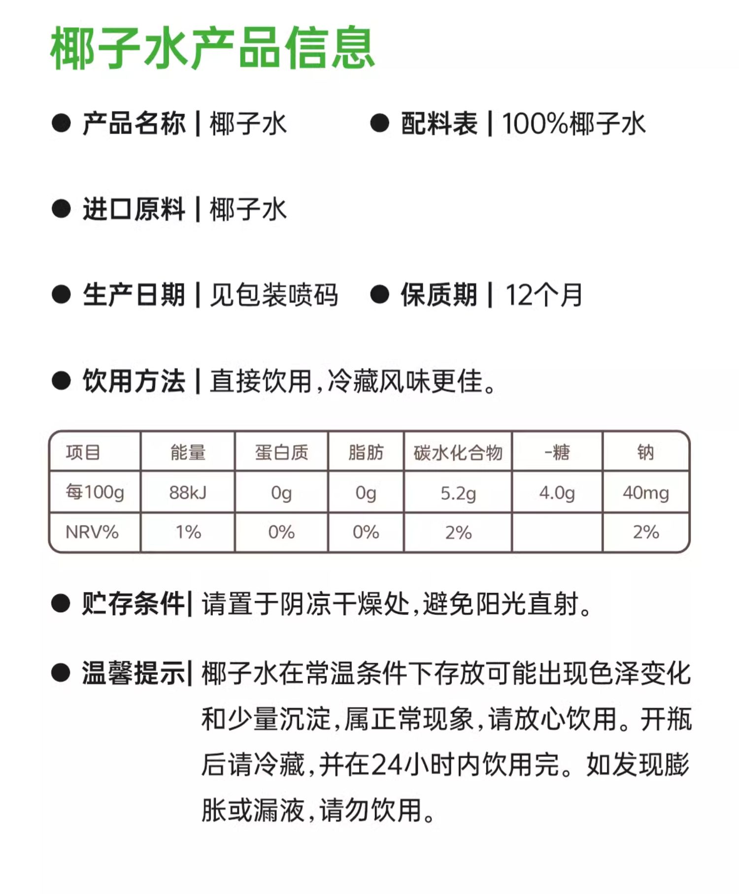 超吉椰NFC椰子水 一瓶源自泰国椰林的鲜饮 天然电解质水