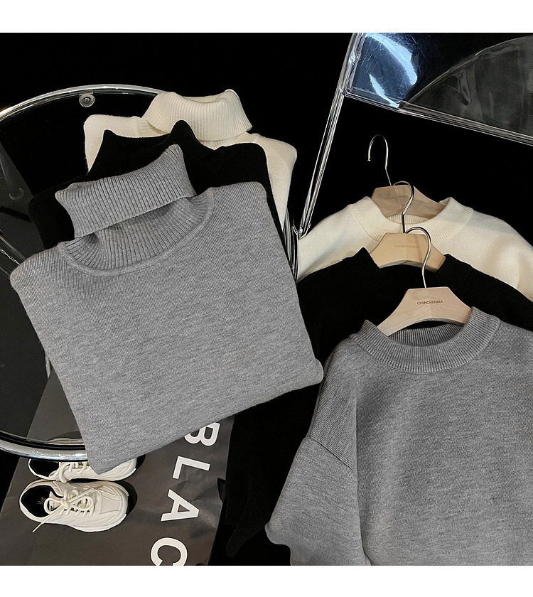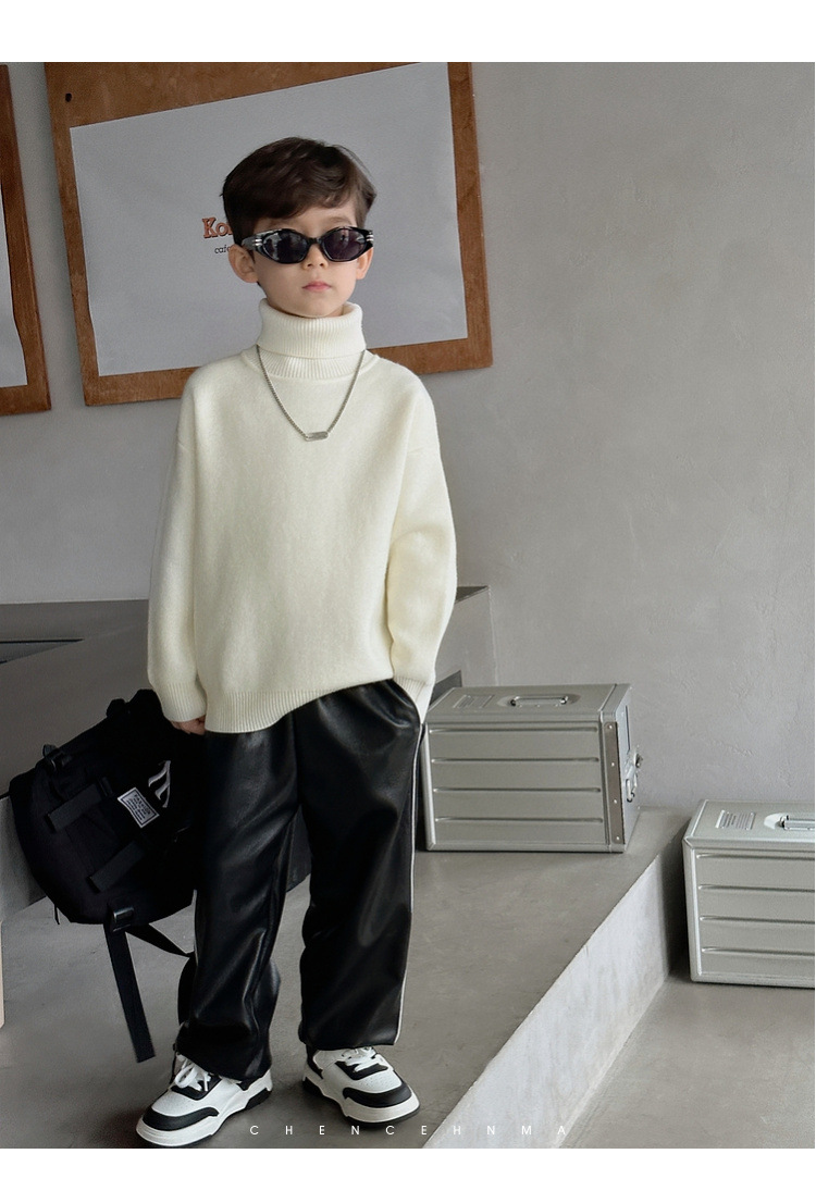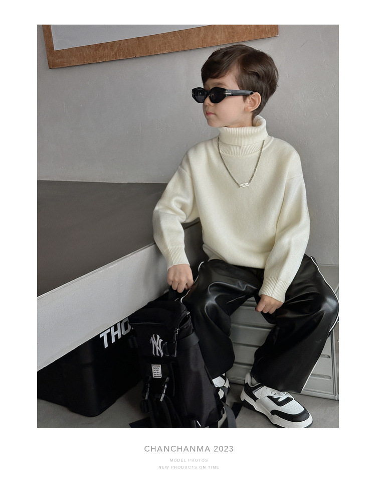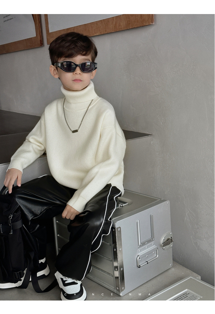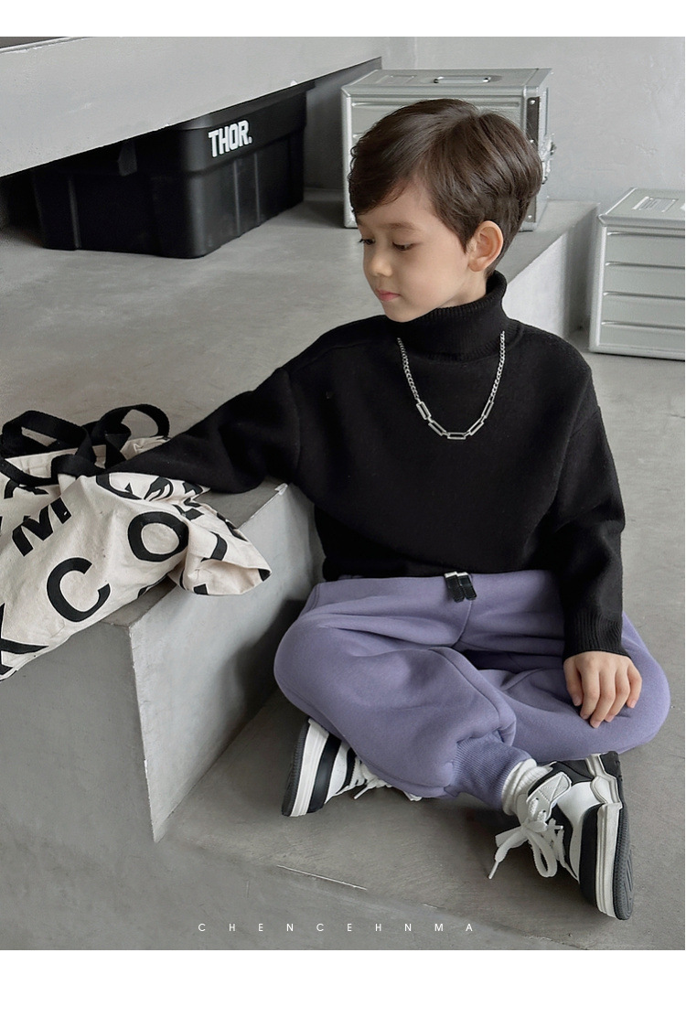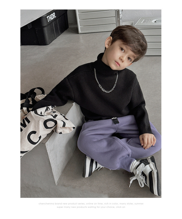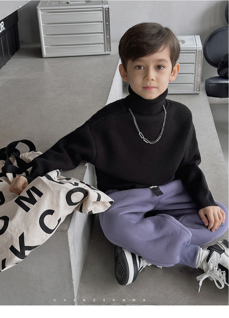 加绒加厚童装男童高领打底衫 儿童一体绒A类毛衣针织衫