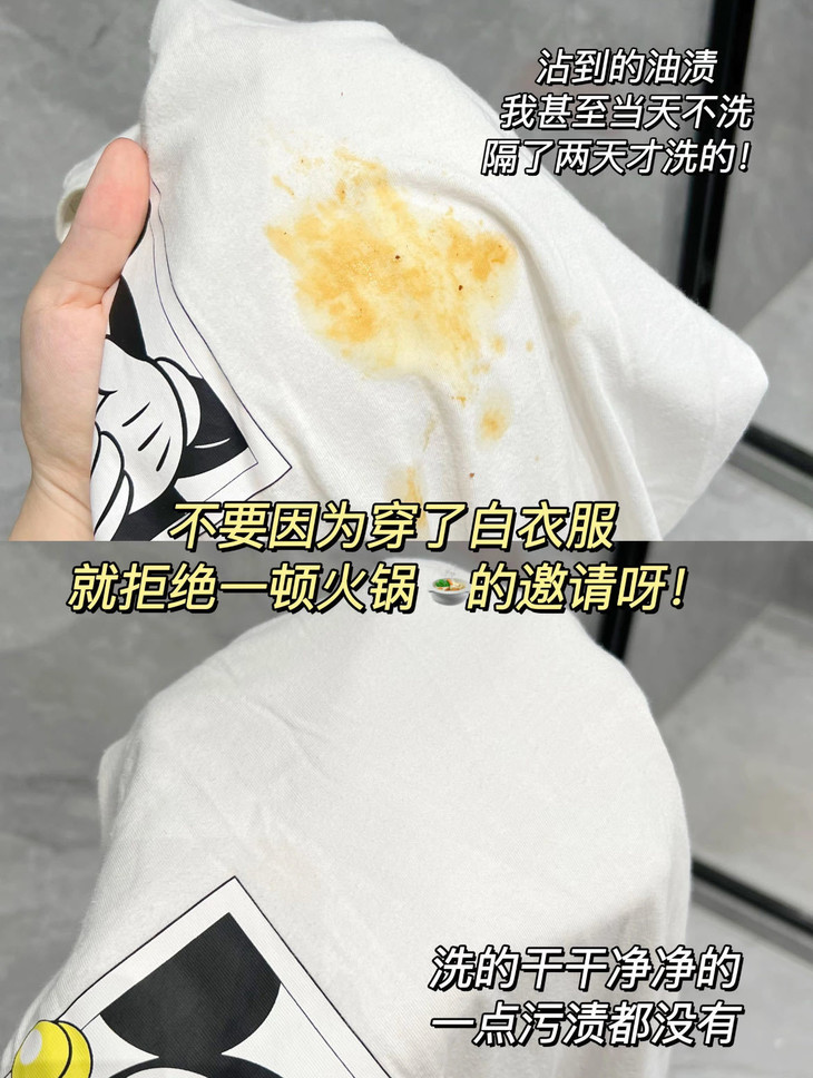 去渍真超快!夏天衣服交给它拯救 我吧!是真的很爱穿浅色系的衣服! 但是浅色系的衣服讲真,是真的很不耐脏,每次干干净净的出门都带一身污渍的回来 什么油脂、咖啡渍、辣椒渍,我的天,出一趟门费一件衣服!