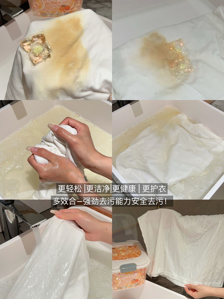 用起来真的很方便! 三合一的功能 护衣-洁净-抑菌一颗搞定 很本不用担心衣服洗不干净啦 就算不小心弄上茶渍、咖啡渍、辣椒油!都能轻松洗干净没压力! 而且99%除菌,过敏人群也不怕。 · 而且香味也很好闻! COCO香水的味道就很高级! 是那种花香的感觉 闻着感觉我的衣服都变贵了!谁懂 姐妹们都给我用!!