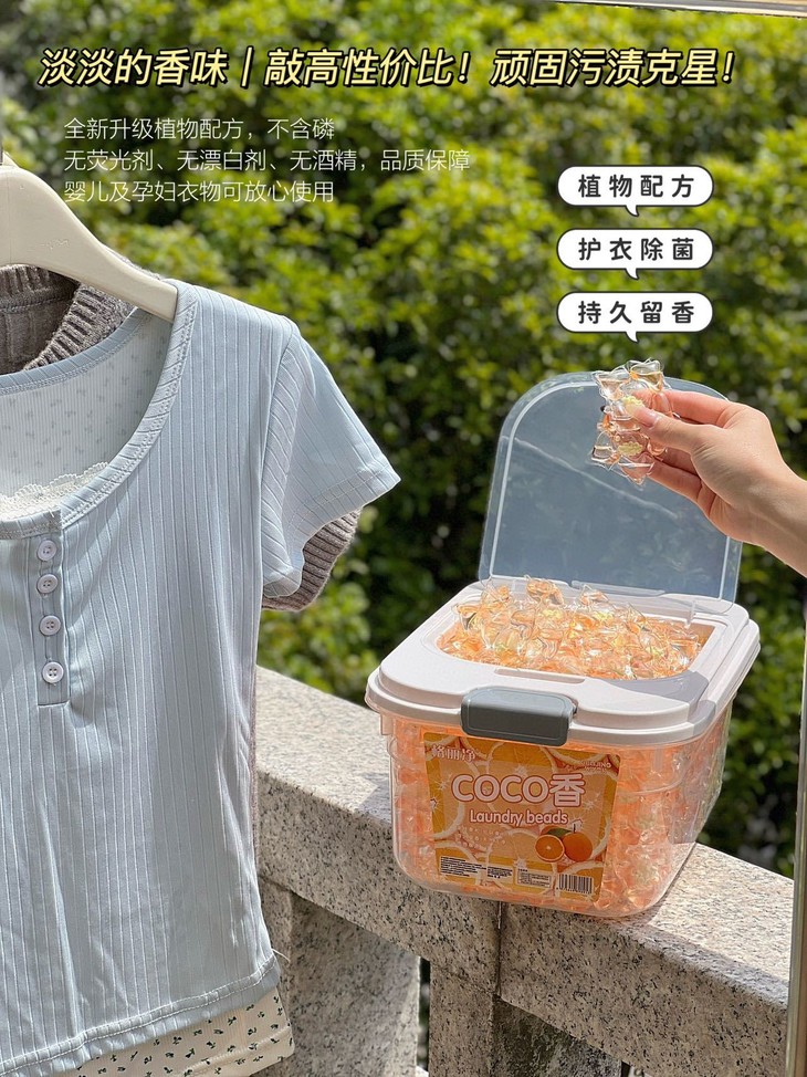 格丽净-5DCOCO香洗衣凝珠 简直是懒人洗衣神器💖! 一颗凝珠丢进洗衣机,咕嘟咕嘟,泡泡派对马上开启! 而且哦,它不仅仅洗衣干净,那COCO香味,简直是行走的香水,晾干后的衣服穿在身上,感觉自己就是个小甜心~🍬