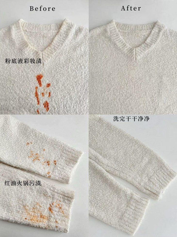 谁懂强迫症的日常有多心累…. 以前为了把衣服洗干净 每次洗衣服都忙得像个杂技演员洗衣液、彩漂、衣领净轮番上阵一套小连招累得腰酸背痛 结果有些油污还是赖着不走,真的会谢!